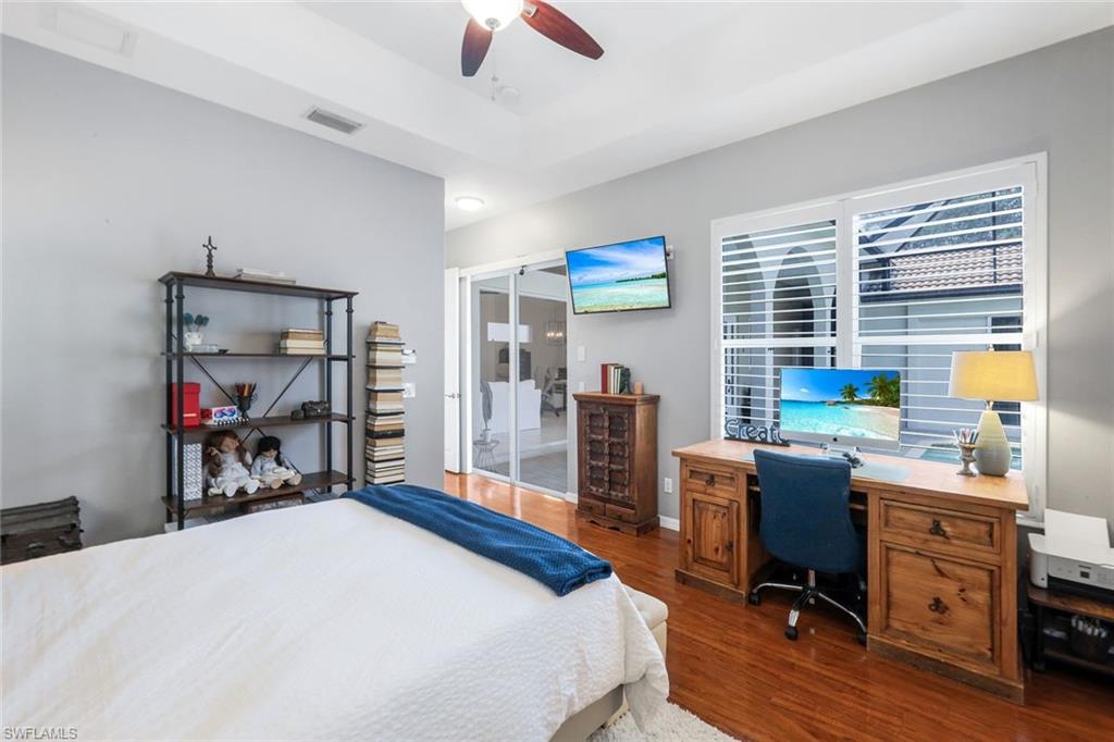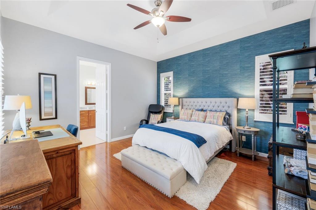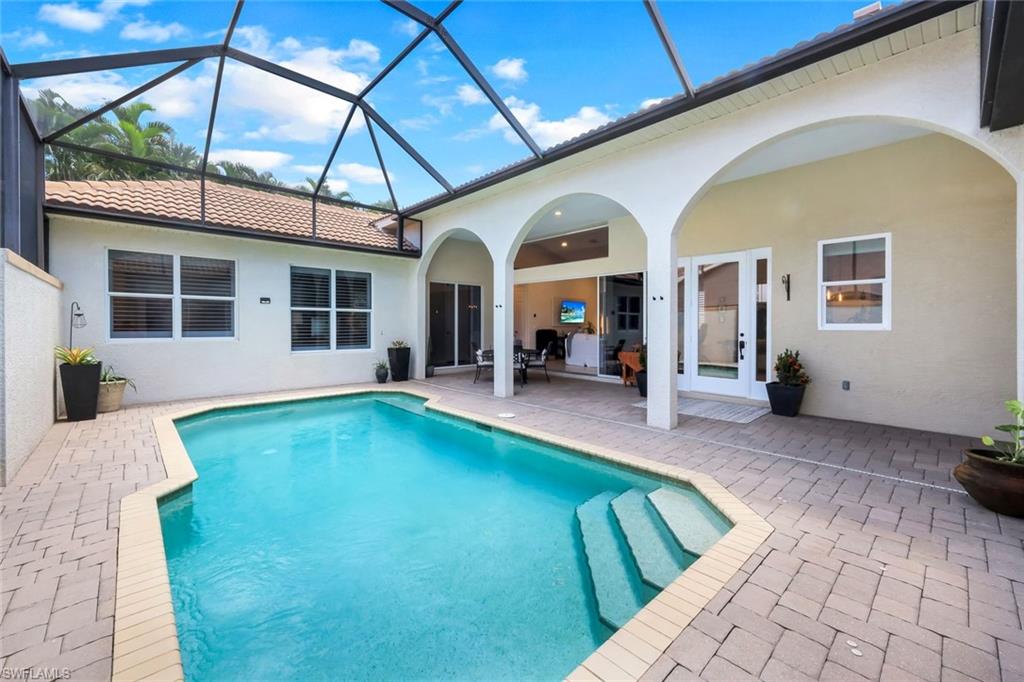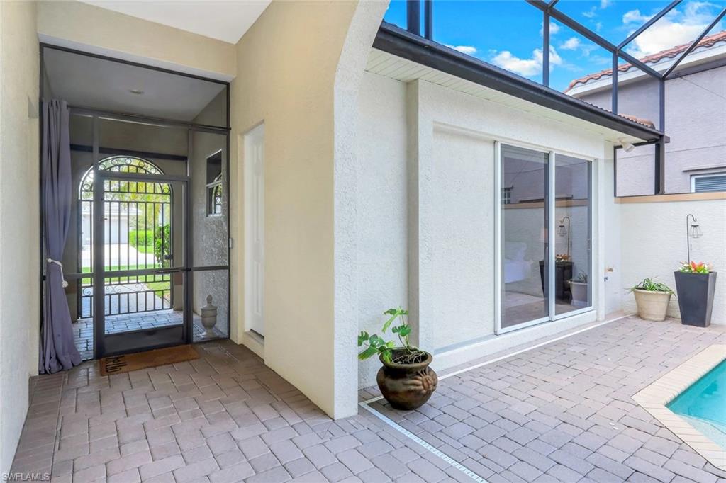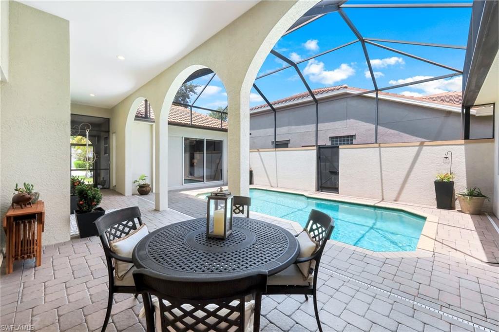 Come see this gorgeous & unique courtyard pool home with private casita that can be used as a guest suite or home office. This 3 bedroom 3 bath home has wonderful curb appeal with its brick paved front drive, landscaped lot & screened entryway leading you into your private courtyard. Relax pool side or enjoy dining alfresco as this floor plan offers the best of both worlds for indoor and outdoor living space. Fabulous open concept floor plan that is great for entertaining family and friends. The kitchen has been updated with wood cabinetry, stainless steel appliances, quartz counters breakfast bar and glass tiled backsplash. The home features a neutral paint palette, with volume ceilings, plantation shutters, updated lighting, tile flooring throughout the living areas and wood laminate flooring in both bedrooms. The primary suite has an in-suite bath with quartz counter, dual sinks, wood cabinetry, shower and jetted soaking tub. Longshore Lakes is a community of all single family homes and offers guarded gate access, a club house that is the process of being updated and features a restaurant & bar, clubhouse with pool as well as tennis courts and recently passed addition of pickle ball courts. Sold with a 1 year home warranty for the new buyer at closing.
