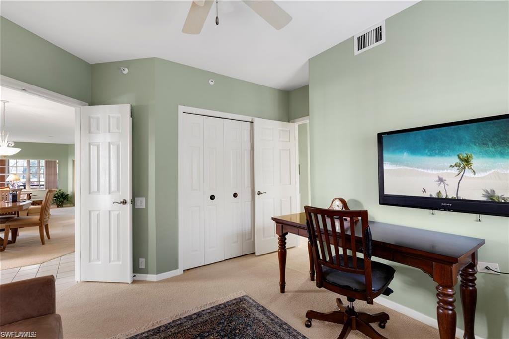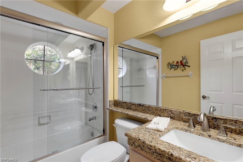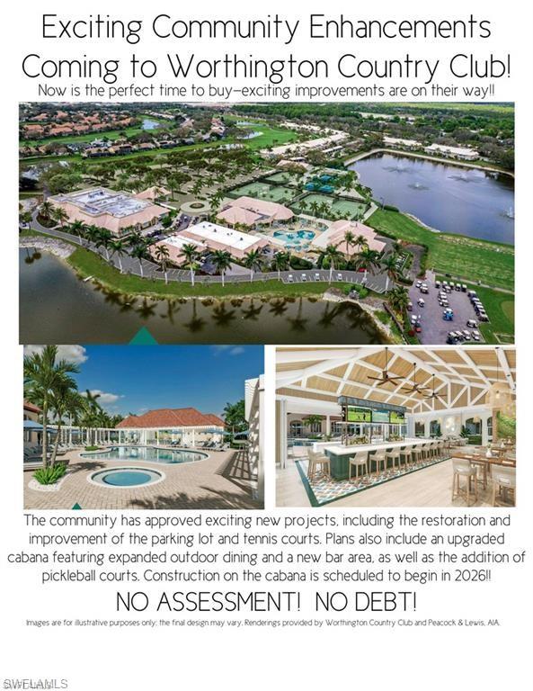 Discover the perfect blend of comfort, convenience, and leisure in this stunning 1st-floor carriage home, nestled within the highly sought-after bundled golf community of Worthington Country Club in Bonita Springs. This is the perfect opportunity to own in a vibrant, bundled golf community with exciting enhancements underway. The community has approved major improvements including the renovation of the parking lot and tennis courts, an upgraded cabana with expanded outdoor dining and a new bar area, plus the addition of pickleball courts—all fully funded with no assessments and no debt. This 3-bedroom residence offers turnkey living, ideal for golf enthusiasts and those seeking an upscale, maintenance-free lifestyle. Relax in the enclosed lanai with picturesque views overlooking the 14th green, and enjoy the bright interiors that create a warm and welcoming ambiance. The home features a detached garage, providing convenient storage for your personal golf cart and more, along with modern updates, including a new A/C installed in 2019. Residents enjoy access to a pristine golf course suitable for all skill levels, as well as an array of amenities, including tennis courts, bocce, a fitness center, a resort-style pool, and a vibrant clubhouse offering dining experiences and social gatherings. Pickleball is available for Sherburne Circle residents and guest with restrictions. Conveniently located near Gulf beaches, shopping, dining, entertainment, and major highways, this home offers the perfect combination of luxury and accessibility. Your new home awaits!