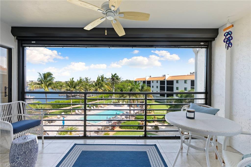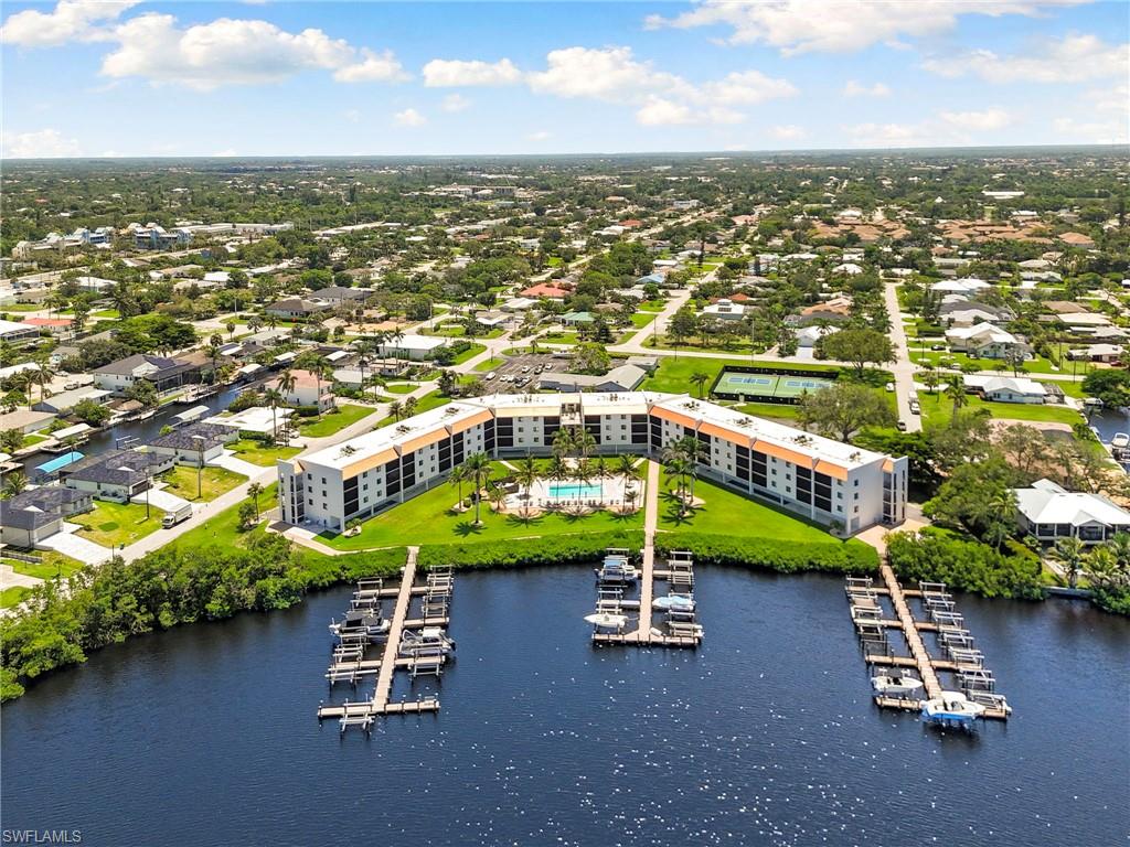 Welcome to Unit #311, a beautifully updated 2-bedroom condo that perfectly captures the Southwest Florida waterfront lifestyle. Boasting a deeded boat dock and lift (#30) with a newer motor, this home is ideal for boaters looking to enjoy easy access to the water right outside their door. Inside, you’ll find a thoughtfully renovated space featuring impact-resistant doors and windows, stainless steel appliances, a wine cooler, and a convenient in-unit washer and dryer. The screened-in porch offers peaceful bay views and coveted western exposure, making it the perfect spot to unwind and watch the sunset. The home is move-in ready with stylish upgrades throughout, and includes a storm screen for added protection. An assigned carport space and extra storage ensure plenty of room for both your vehicle and beach toys. Residents also enjoy access to a well-equipped gym on the 3rd floor, adding wellness and convenience to daily life. Whether you're seeking a full-time residence, seasonal getaway, or smart investment, this condo combines modern comfort, prime boating access, and picture-perfect views to deliver the ultimate coastal living experience.