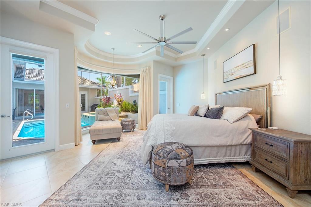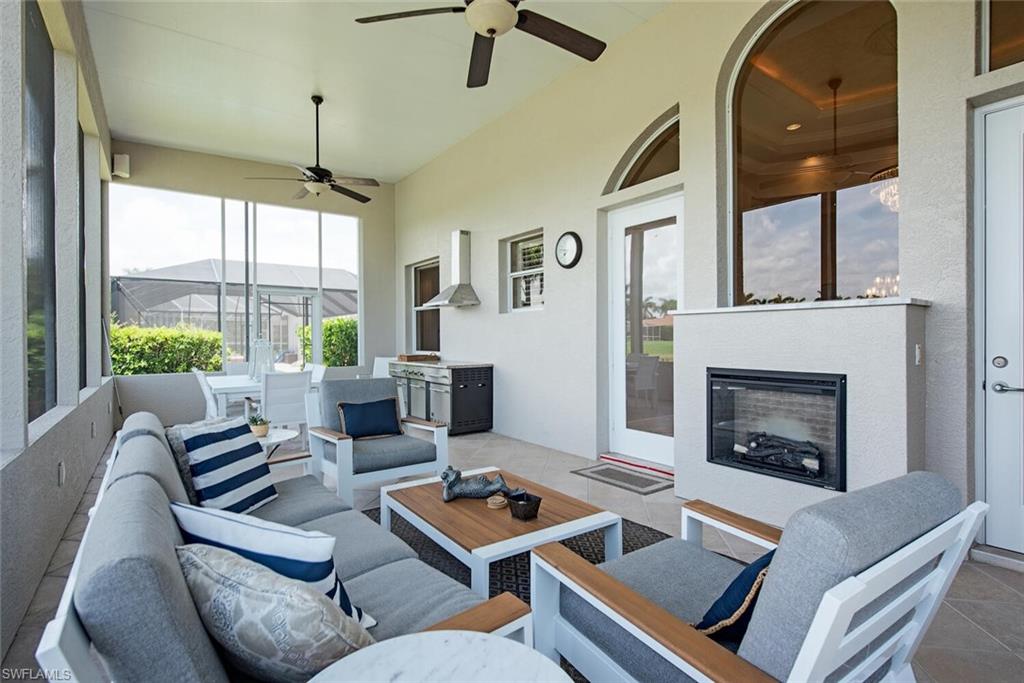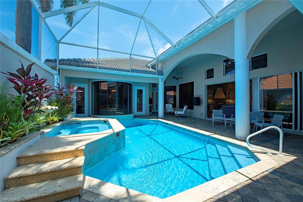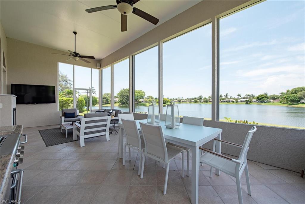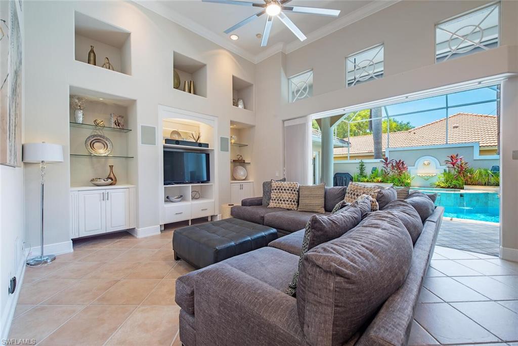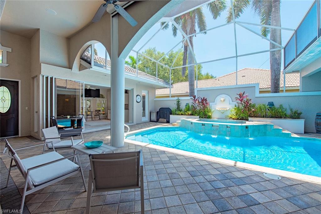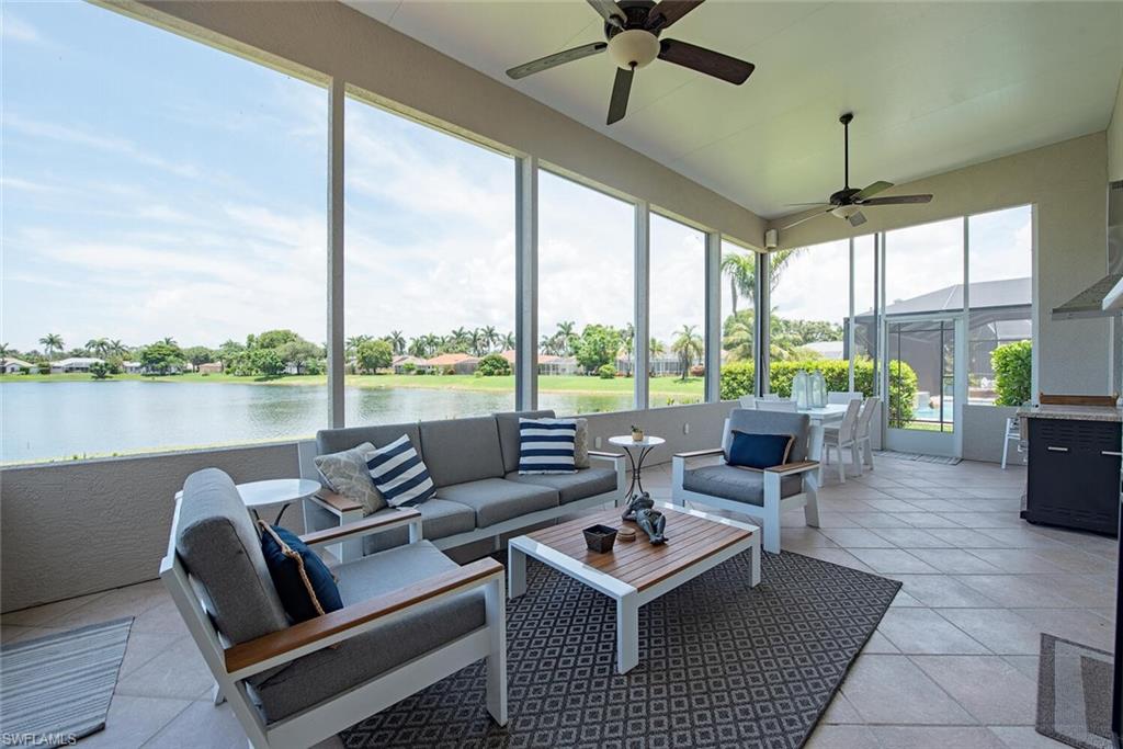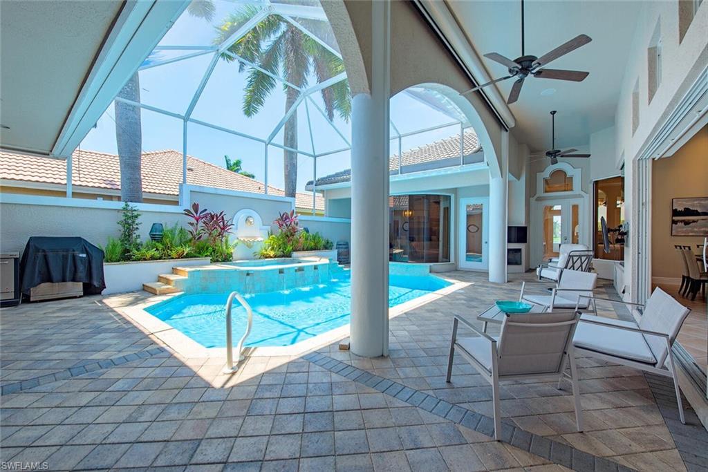 This stunning Courtyard home has it all! Total privacy at the pool and spa AND a most beautiful lake view from an oversized, screened Florida-Room. This impeccably kept home offers 3BR and 2 1/2 BA in the main house PLUS a very large guest cabana with 1 BR and 1 BA (it has it's own A/C!). The master suite features floor-to-ceiling windows with a seating area overlooking the pool and spa, which can be accessed directly from the bedroom, through French doors. Pendant lights add additional ambiance. The house also offers: Chef's kitchen with gas stove, TWO electric fire places for cozy gatherings, full-house gas generator, outdoor kitchen, electric shutters and fabric storm coverings. The courtyard is surrounded by oversized, custom windows allowing to have a view from every room. 20' wide electric sunshade. Expanded paved driveway. Garage is air conditioned. The 3rd bedroom is set up as an office with beautiful wood shelving, plus it has a walk-in closet. This is the Developer's former model and has so many upgrades and one of the best lake view lots in Briarwood!