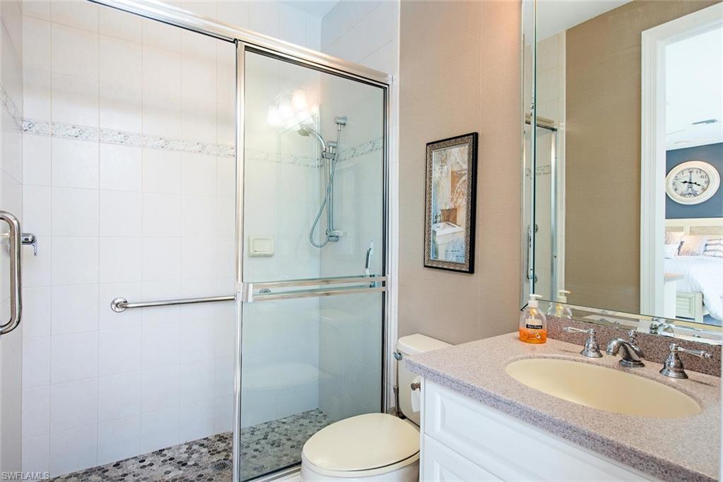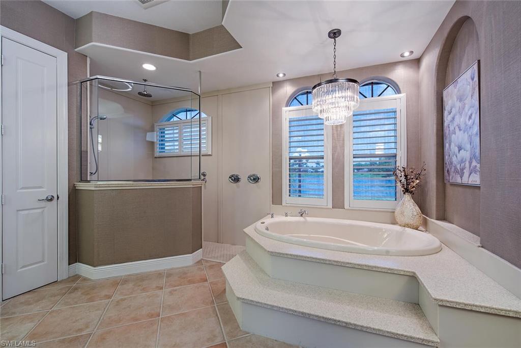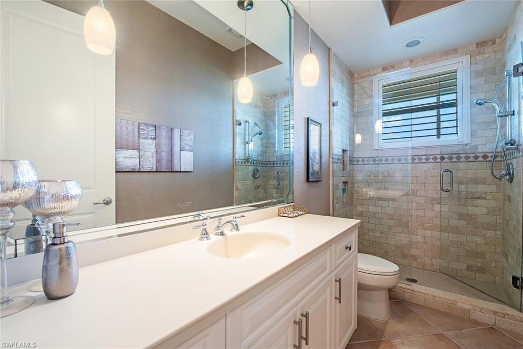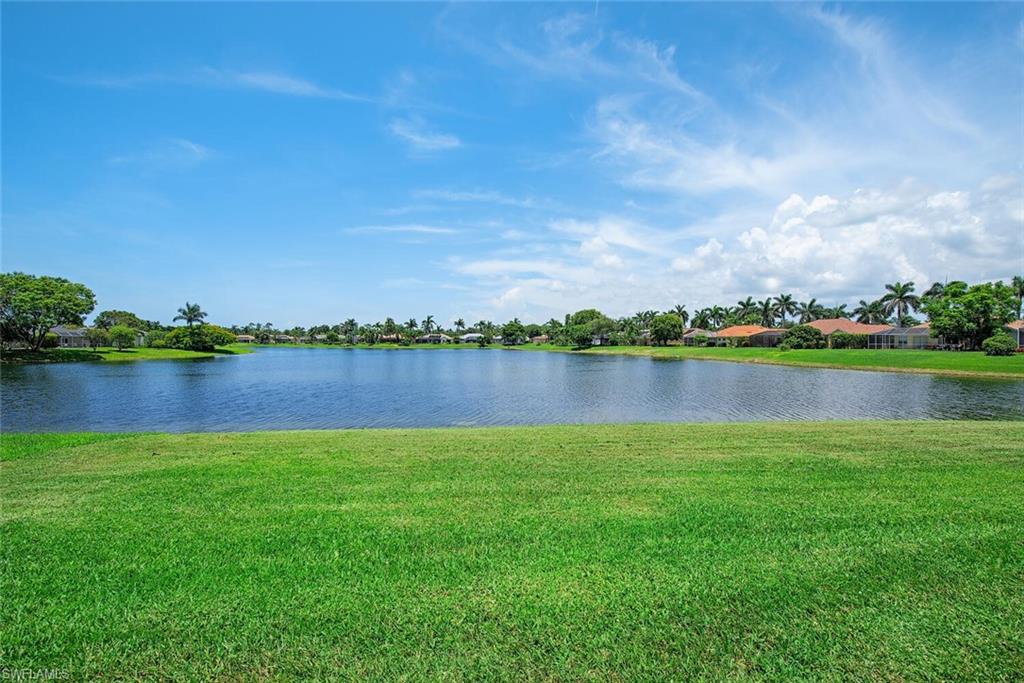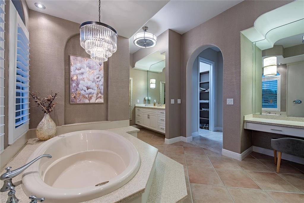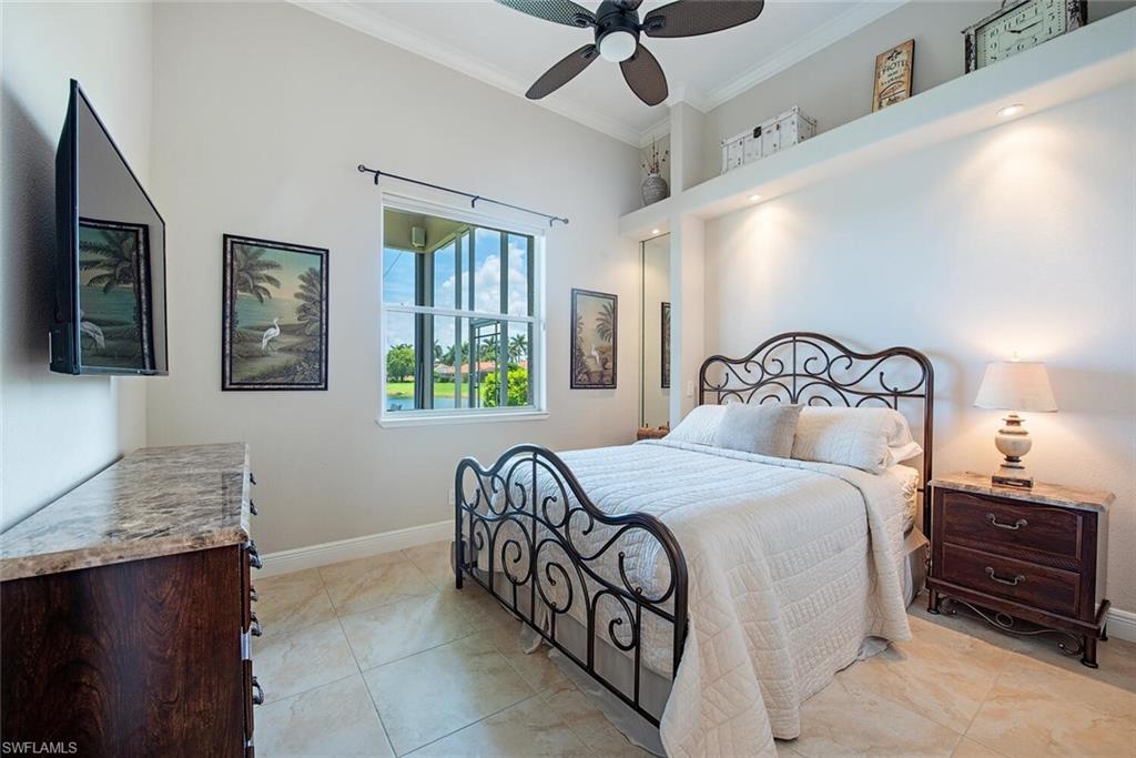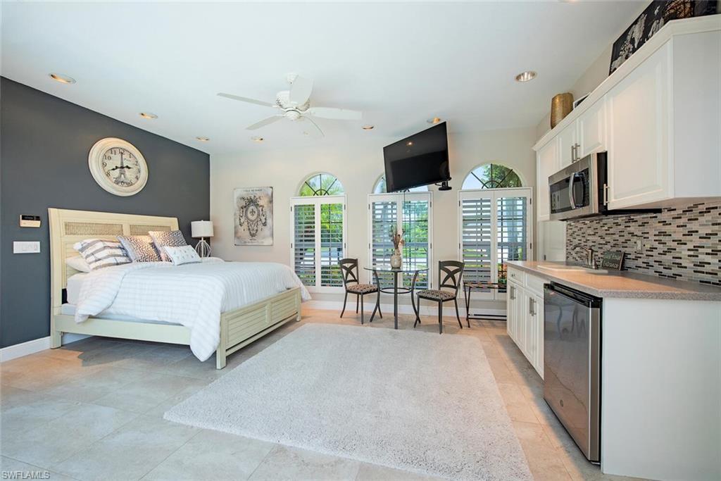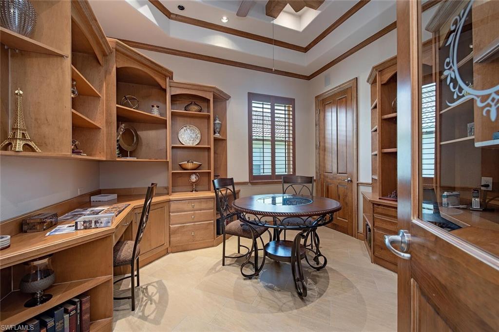 This stunning Courtyard home has it all! Total privacy at the pool and spa AND a most beautiful lake view from an oversized, screened Florida-Room. This impeccably kept home offers 3BR and 2 1/2 BA in the main house PLUS a very large guest cabana with 1 BR and 1 BA (it has it's own A/C!). The master suite features floor-to-ceiling windows with a seating area overlooking the pool and spa, which can be accessed directly from the bedroom, through French doors. Pendant lights add additional ambiance. The house also offers: Chef's kitchen with gas stove, TWO electric fire places for cozy gatherings, full-house gas generator, outdoor kitchen, electric shutters and fabric storm coverings. The courtyard is surrounded by oversized, custom windows allowing to have a view from every room. 20' wide electric sunshade. Expanded paved driveway. Garage is air conditioned. The 3rd bedroom is set up as an office with beautiful wood shelving, plus it has a walk-in closet. This is the Developer's former model and has so many upgrades and one of the best lake view lots in Briarwood!