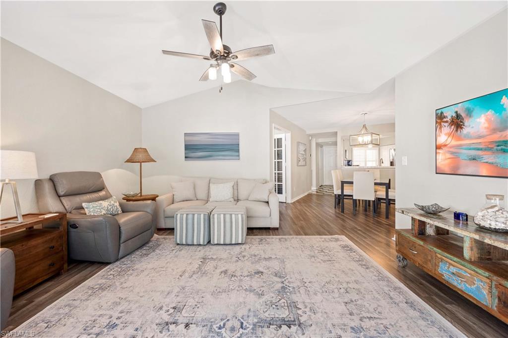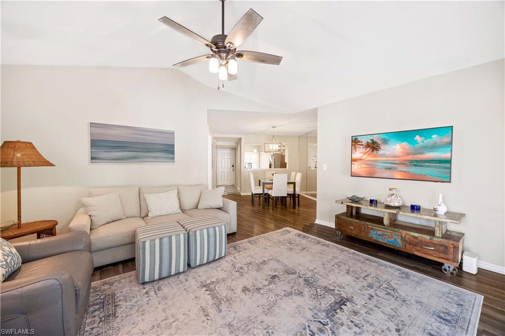 Welcome to this beautifully updated and fully furnished 3-bedroom, 2-bath top-floor corner unit, perfectly situated in the heart of Naples. Just under 3 miles to the white sands of Clam Pass Beach, this condo offers the ideal blend of tranquility and convenience. Enjoy an open floor plan with vaulted ceilings, hard surface flooring throughout, and neutral tones that create a light and inviting atmosphere. The kitchen features plantation shutters, newer appliances, and all-new window treatments throughout the home. Relax on your private screened balcony with peaceful views, or take advantage of the community amenities including a pool, tennis, pickleball, and more. Located adjacent to Quail Run Golf Course, where play is available without the fees of a bundled golf community. This unit includes a dedicated parking space directly below, plus an extra storage unit for added convenience. Centrally located just off Pine Ridge Road, you’re minutes from shopping, dining, and Naples' best beaches.