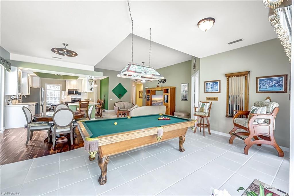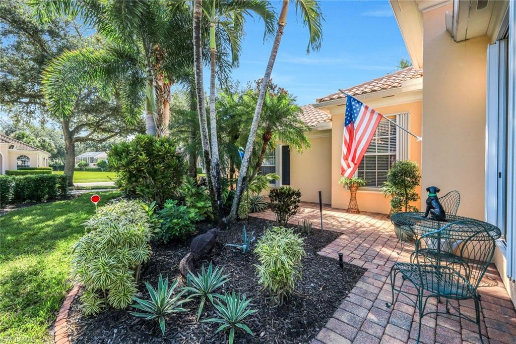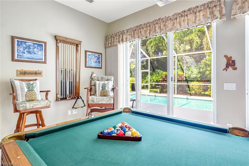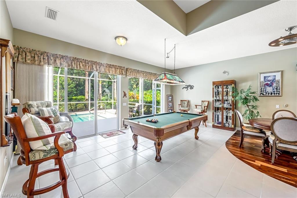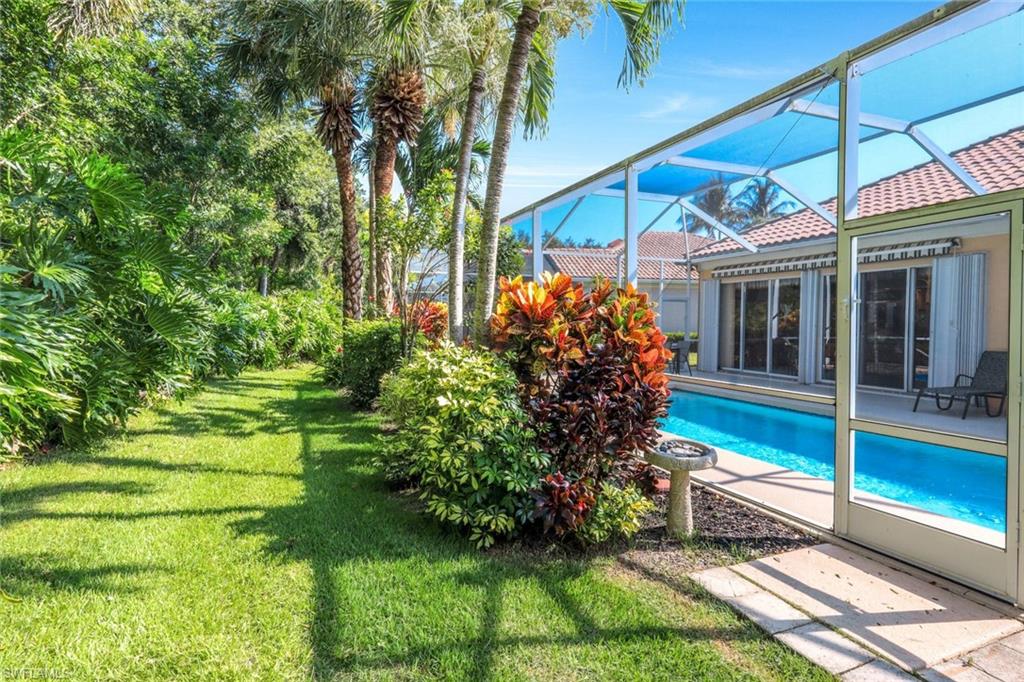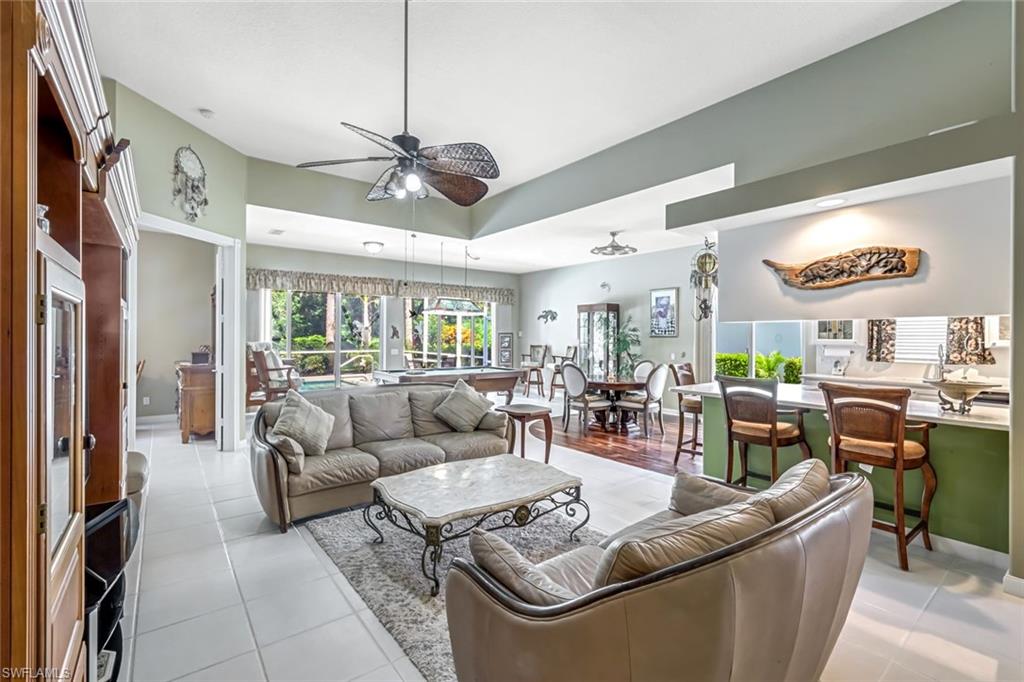 Feast your eyes on this Gorgeous Oakmont model 3 Bedroom and a Den home with the rarely available Extended Living area, which is conveniently located near the Front Entry Gate and only a short stroll to the Town Center. This home features tile throughout the living areas and a high-quality wood floor in the chef’s kitchen complete with stainless appliances and Corian countertops. Enjoy entertaining your family and friends by your own private heated pool adorned by lush tropical landscaping. There are upgraded accordion shutters for your peace of mind. The Washer and Dryer and Refrigerator were purchased in 2025. Located in one of Naples' most sought-after neighborhoods, residents enjoy access to exclusive amenities including Resort style pool, lap pool, Towncenter, Tennis, pickleball, bocce, fitness center, Restaurant, Beauty and Nail Salons, Car Wash, Gas Station and Post Office. Close to Naples’ sandy beaches, wonderful shopping, and dining, every convenience is within reach. LOW FEES include Amenities Galore, Landscape Care and HDTV and High-Speed Internet. Relax and enjoy the Naples lifestyle, come and see for yourself what Resort Living is like.