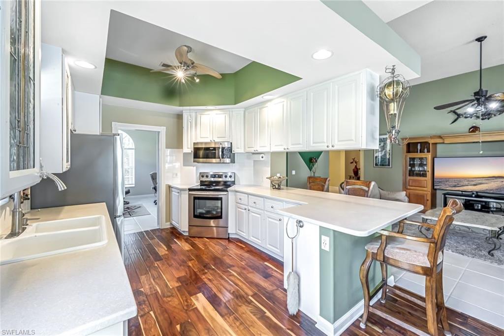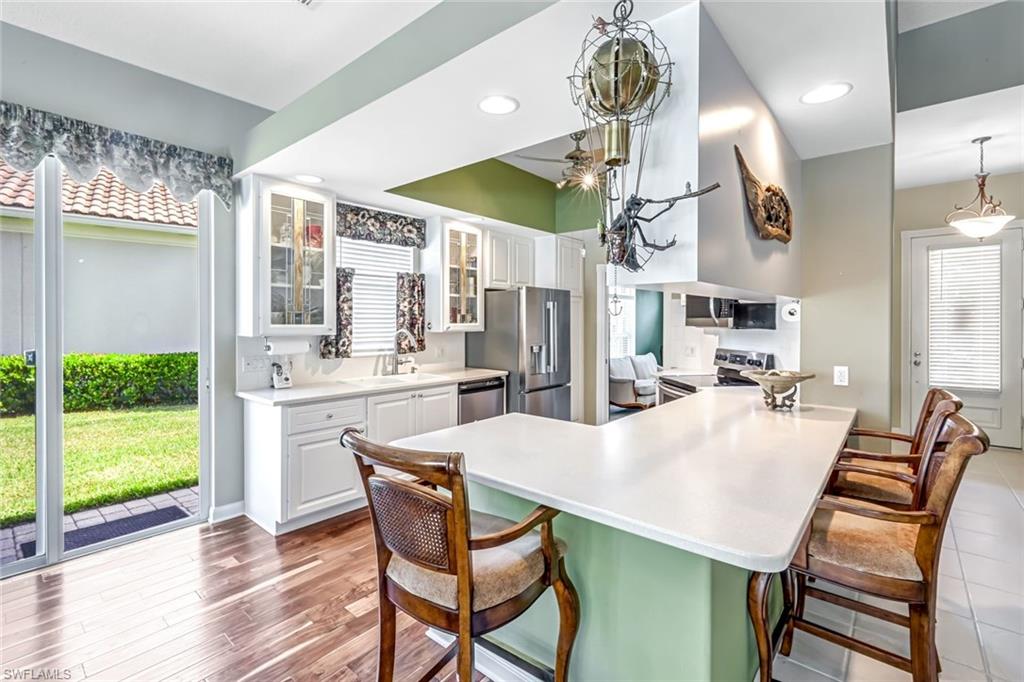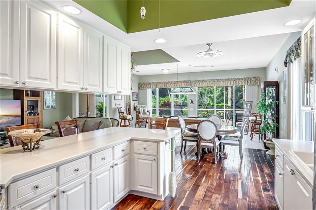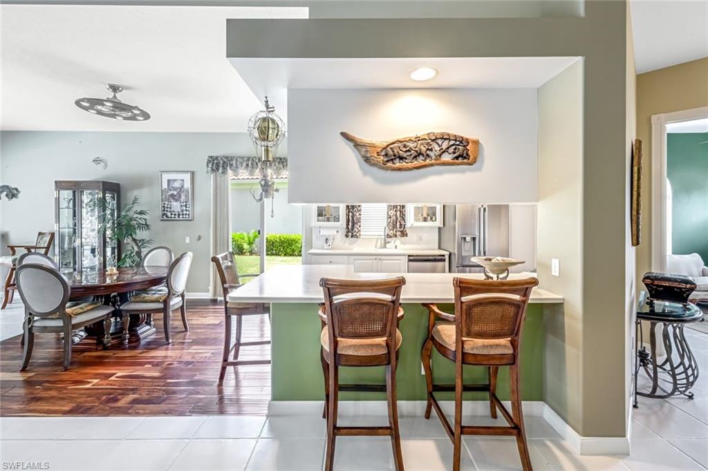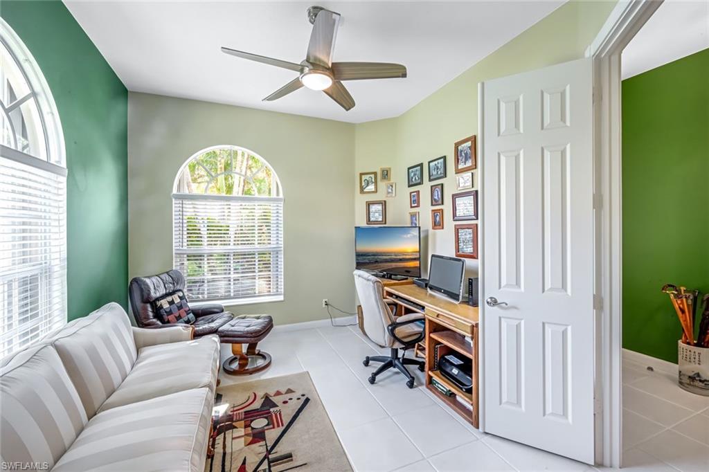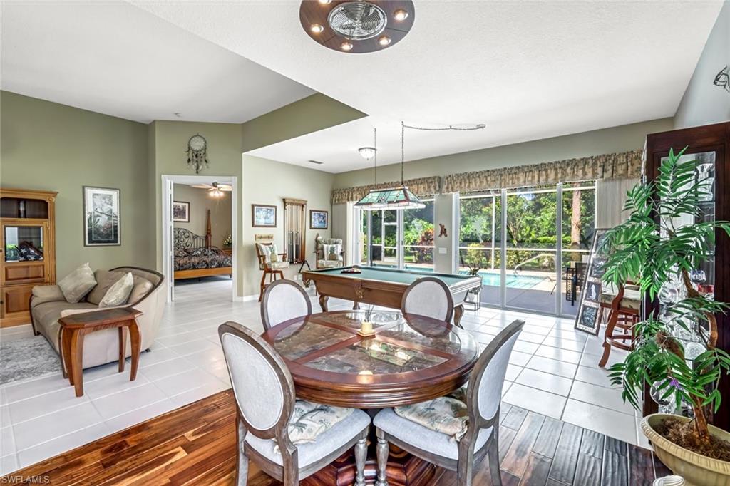 Feast your eyes on this Gorgeous Oakmont model 3 Bedroom and a Den home with the rarely available Extended Living area, which is conveniently located near the Front Entry Gate and only a short stroll to the Town Center. This home features tile throughout the living areas and a high-quality wood floor in the chef’s kitchen complete with stainless appliances and Corian countertops. Enjoy entertaining your family and friends by your own private heated pool adorned by lush tropical landscaping. There are upgraded accordion shutters for your peace of mind. The Washer and Dryer and Refrigerator were purchased in 2025. Located in one of Naples' most sought-after neighborhoods, residents enjoy access to exclusive amenities including Resort style pool, lap pool, Towncenter, Tennis, pickleball, bocce, fitness center, Restaurant, Beauty and Nail Salons, Car Wash, Gas Station and Post Office. Close to Naples’ sandy beaches, wonderful shopping, and dining, every convenience is within reach. LOW FEES include Amenities Galore, Landscape Care and HDTV and High-Speed Internet. Relax and enjoy the Naples lifestyle, come and see for yourself what Resort Living is like.