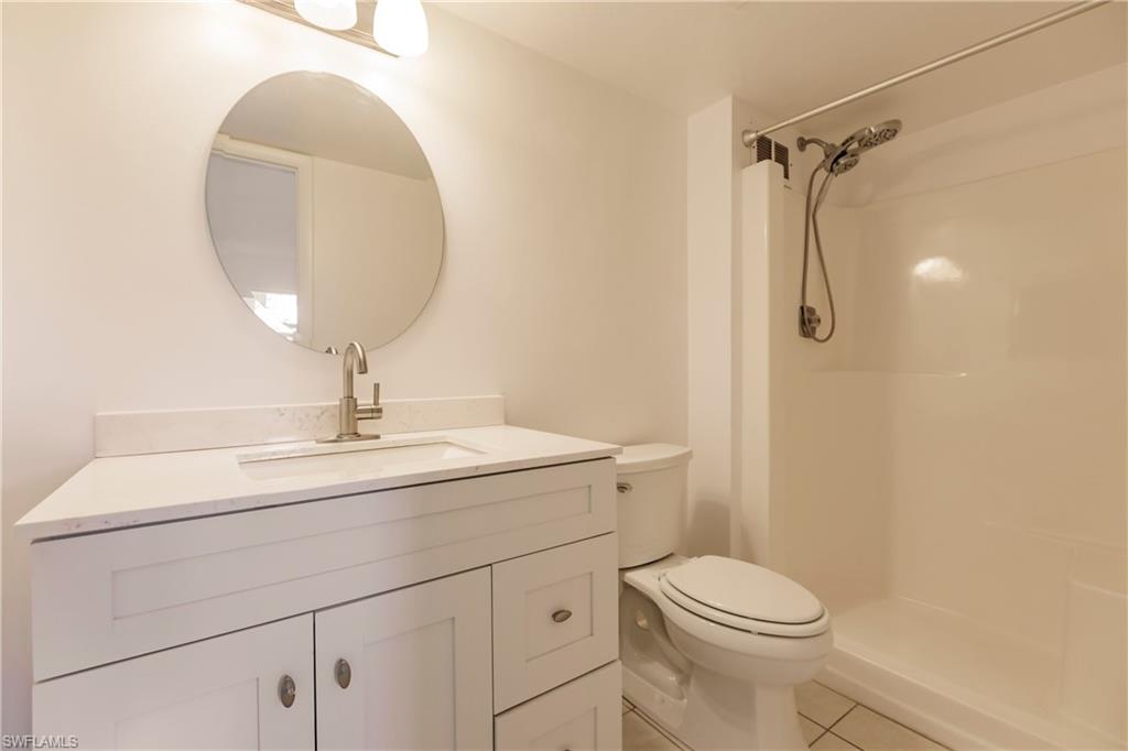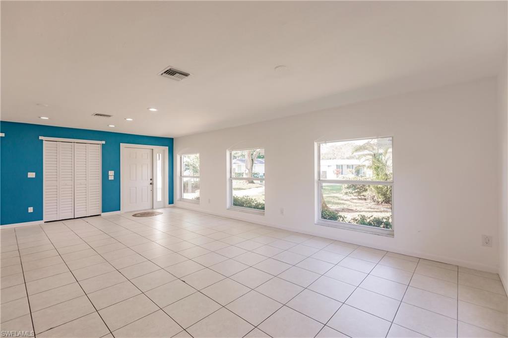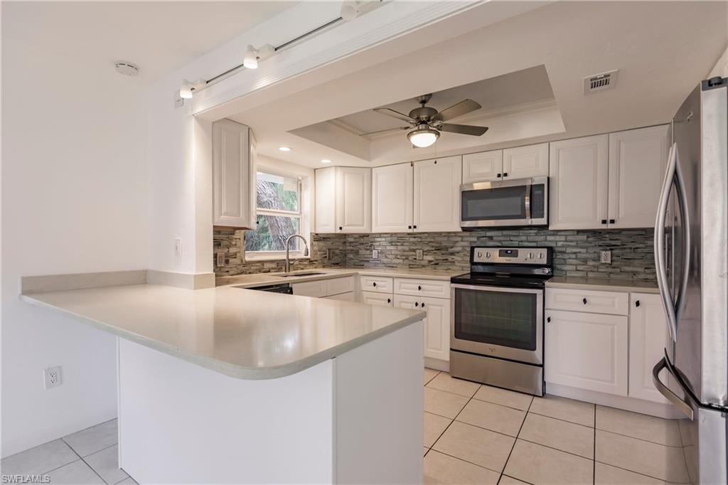 This beautifully situated detached villa, just 5 minutes from Naples' famous white sand beaches, boasts an expansive layout, with new impact-resistant windows, quartz countertops, wooden cabinets, stainless steel appliances, and tiled flooring throughout the entire residence. Positioned at the end of a cul-de-sac, the property features majestic oak trees, recently paved roads, and vibrant landscaping. Residents can conveniently walk or bike to 5th Ave and the beach, both less than 2 miles away. Royal Arms Villas welcomes small dogs, offering a pet-friendly environment. The generously sized paver driveway ensures ample parking space and easy access to the home. A sunroom adjacent to the master bedroom provides access to the garage, yard, and laundry facilities. Quarterly condo fees cover landscaping, flood insurance and water expenses.