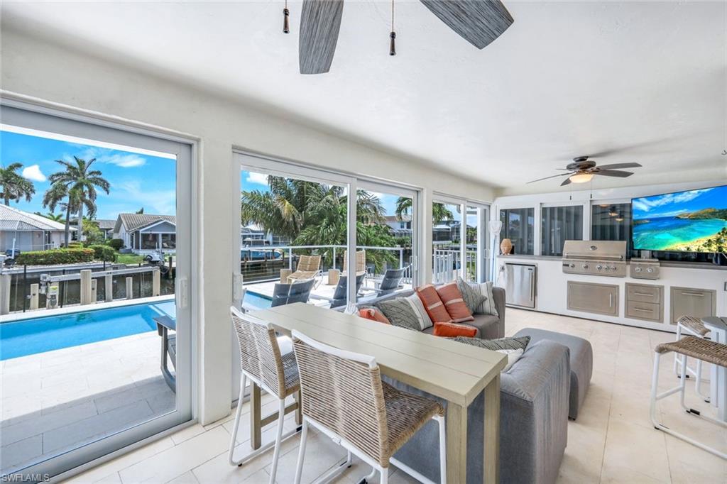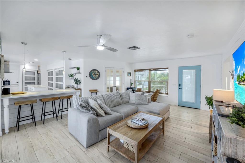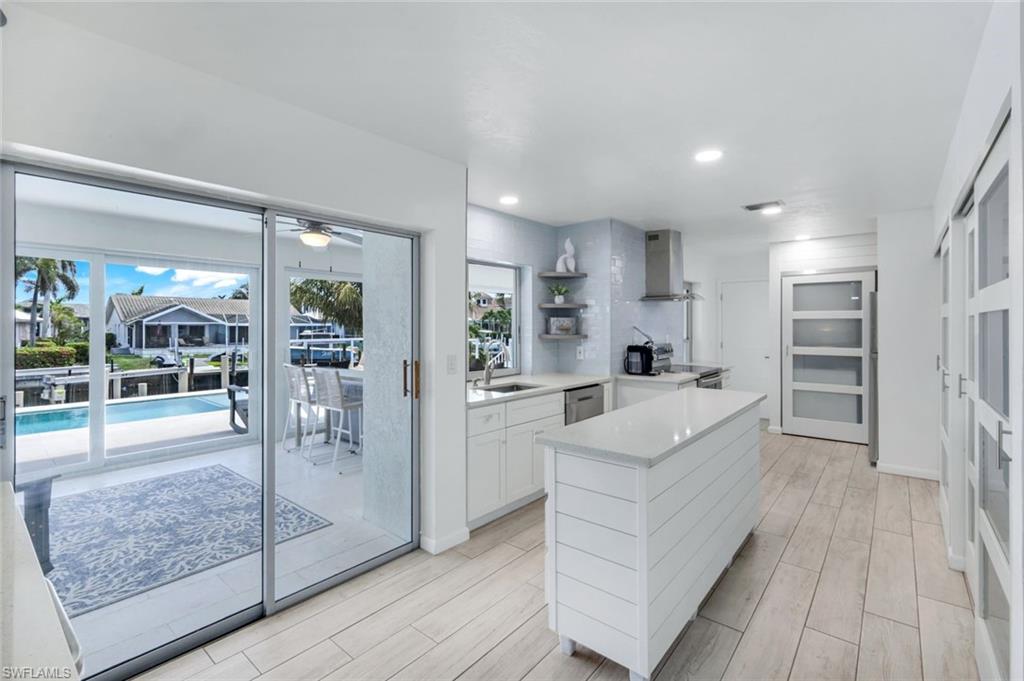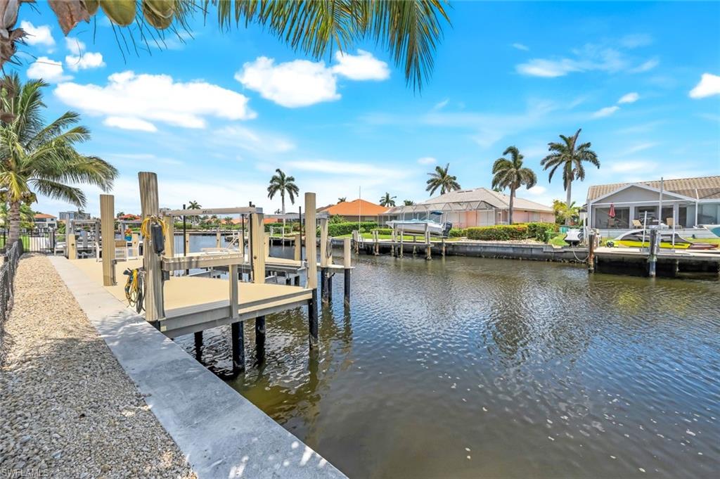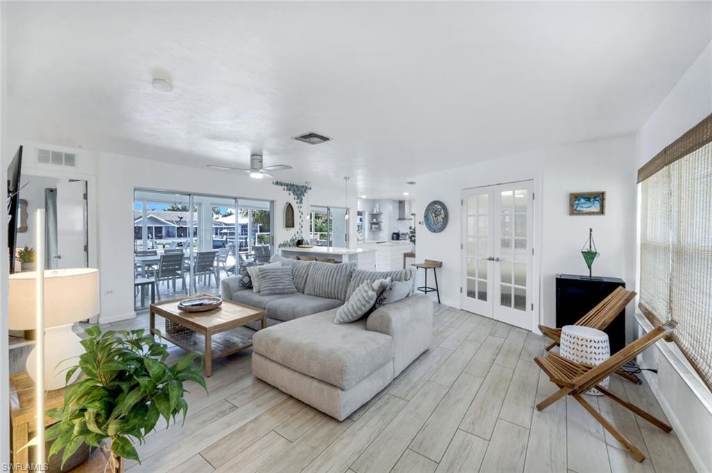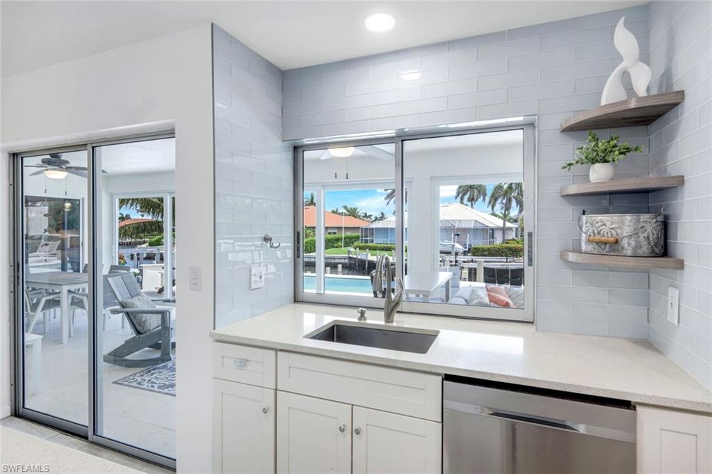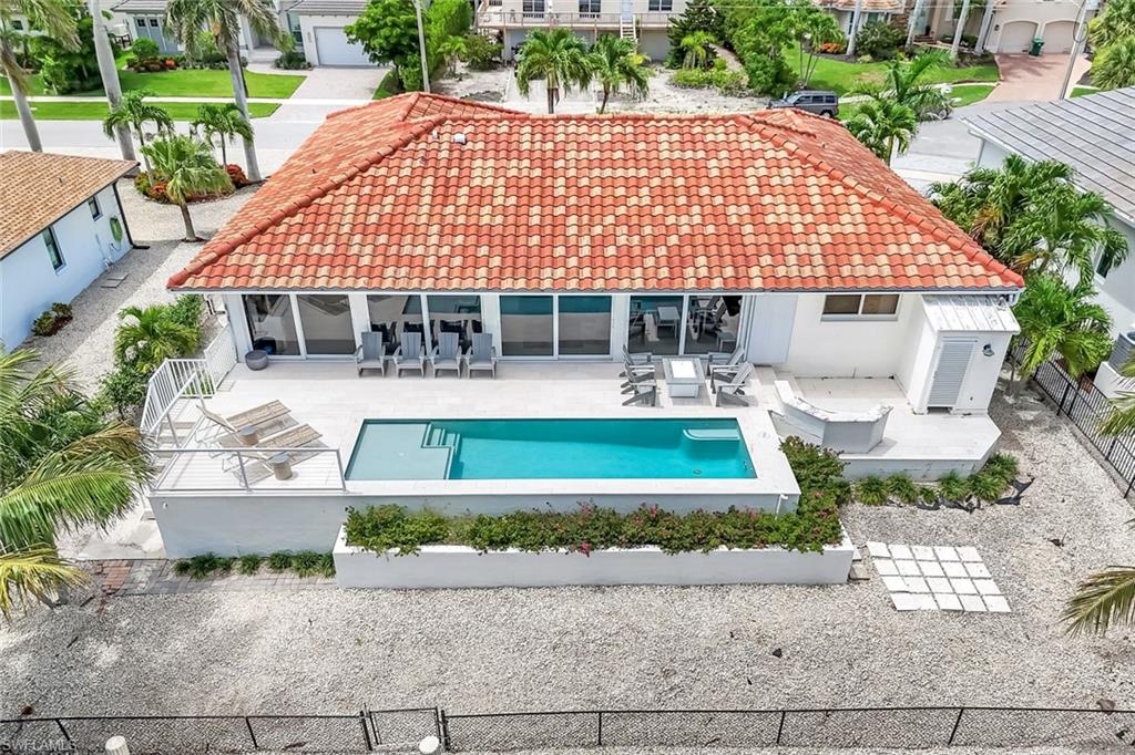 Move-in ready waterfront gem! Live the island lifestyle in this beautifully updated 3BR/2.5 BA waterfront pool home, perfectly situated on a quiet cul-de-sac just six blocks from Marco Island’s Resident’s Beach and Mackle Park. This high-elevation property offers quick Gulf access through a single 14-ft bridge to Smokehouse Bay—ideal for boaters! Enjoy peace of mind with all-NEW hurricane impact windows and sliders, NEW seawall, and a NEW dock with a 10,000 lb boat lift—everything you need for secure and effortless waterfront living. Inside, the renovation shines with coastal-inspired finishes: wood-look tile plank flooring, a spacious open-concept layout, and a chef’s kitchen featuring quartz countertops, stainless steel appliances, center island, pantry, and built-in wine fridge. Impact-resistant sliders lead to a serene outdoor space with an enclosed lanai, shell-stone tile deck, electric-heated pool with sun shelf, and tranquil canal views. Additional perks include an outdoor half bath and shower, fenced yard, circular driveway, 2-car garage, and solid concrete block construction with a tile roof. New mini split installed in enclosed lanai for added comfort. Located in a desirable, centrally located neighborhood with new construction nearby, this home is ideal as a full-time residence, vacation getaway, or high-demand rental—a rare opportunity for stylish, secure, and island living!
