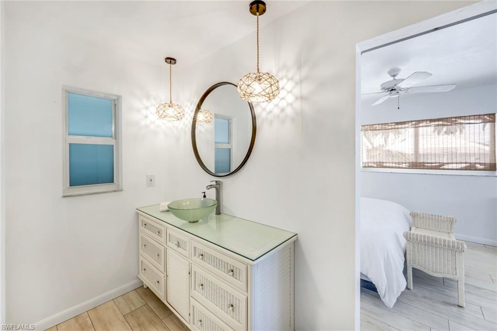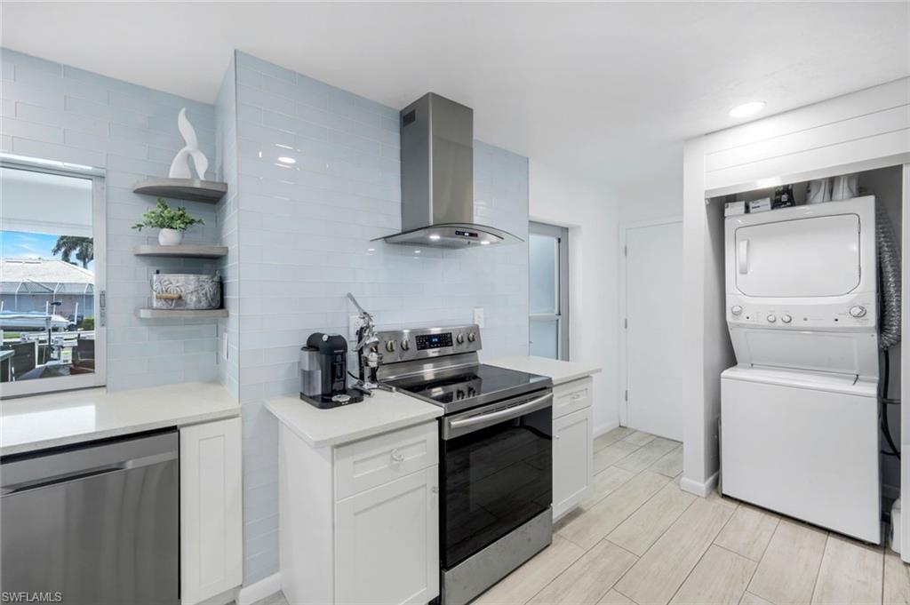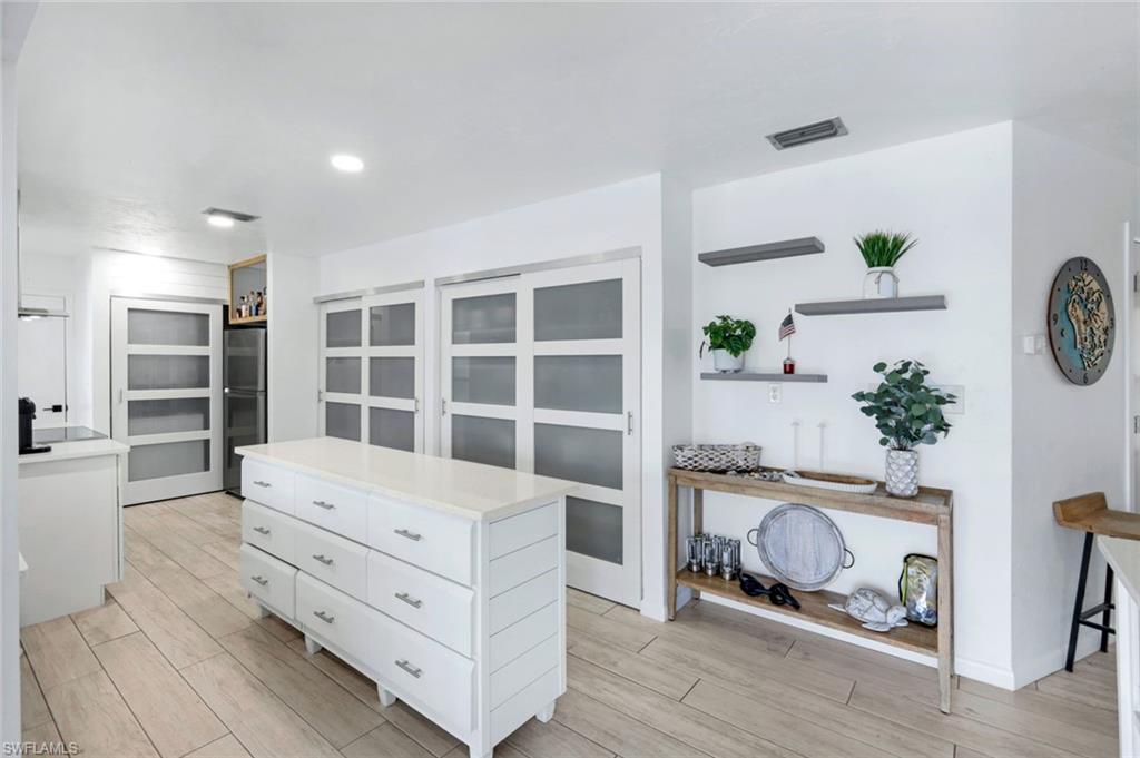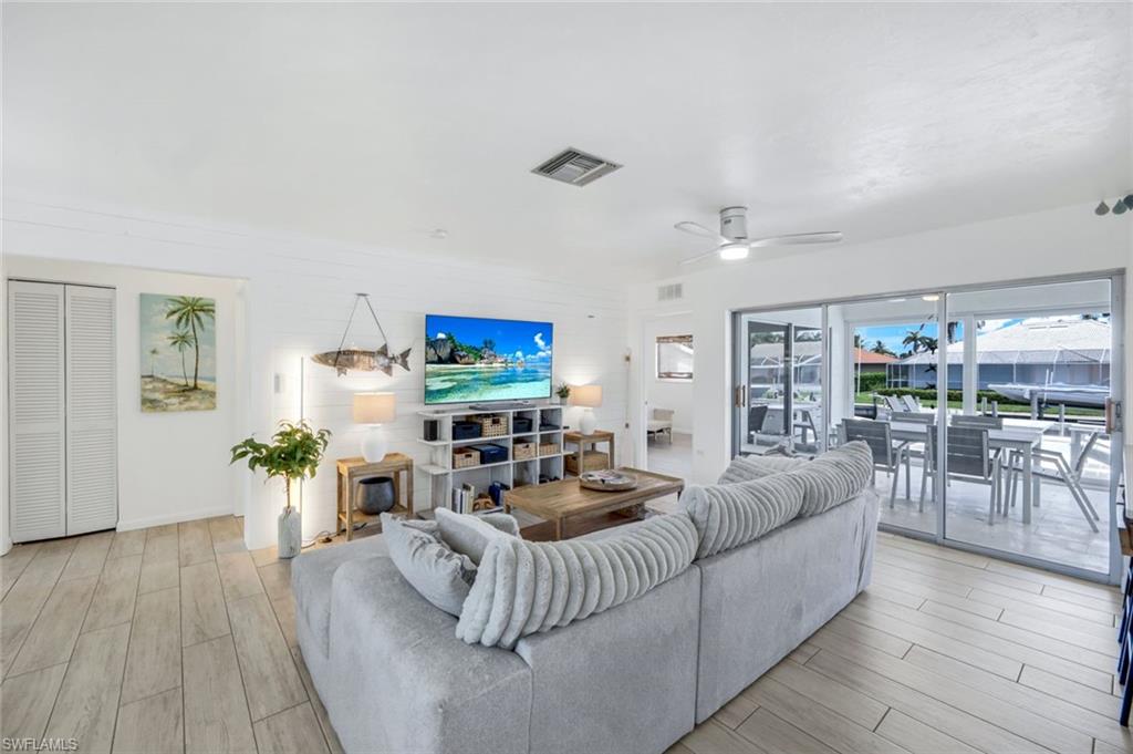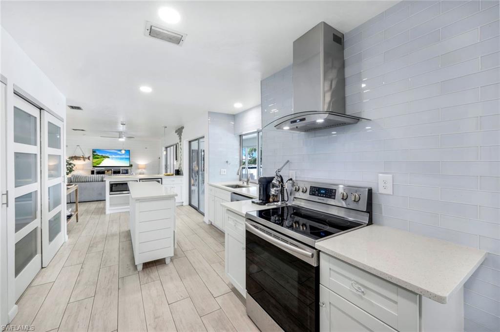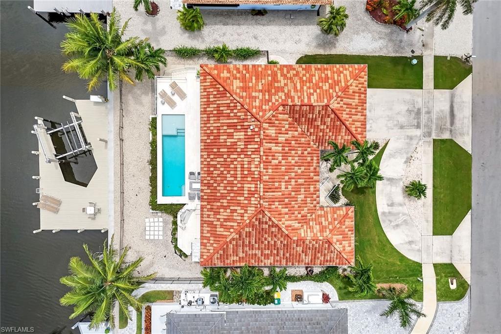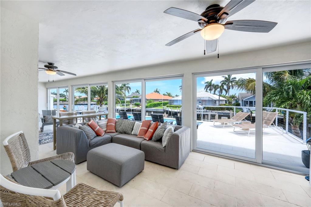 Move-in ready waterfront gem! Live the island lifestyle in this beautifully updated 3BR/2.5 BA waterfront pool home, perfectly situated on a quiet cul-de-sac just six blocks from Marco Island’s Resident’s Beach and Mackle Park. This high-elevation property offers quick Gulf access through a single 14-ft bridge to Smokehouse Bay—ideal for boaters! Enjoy peace of mind with all-NEW hurricane impact windows and sliders, NEW seawall, and a NEW dock with a 10,000 lb boat lift—everything you need for secure and effortless waterfront living. Inside, the renovation shines with coastal-inspired finishes: wood-look tile plank flooring, a spacious open-concept layout, and a chef’s kitchen featuring quartz countertops, stainless steel appliances, center island, pantry, and built-in wine fridge. Impact-resistant sliders lead to a serene outdoor space with an enclosed lanai, shell-stone tile deck, electric-heated pool with sun shelf, and tranquil canal views. Additional perks include an outdoor half bath and shower, fenced yard, circular driveway, 2-car garage, and solid concrete block construction with a tile roof. New mini split installed in enclosed lanai for added comfort. Located in a desirable, centrally located neighborhood with new construction nearby, this home is ideal as a full-time residence, vacation getaway, or high-demand rental—a rare opportunity for stylish, secure, and island living!
