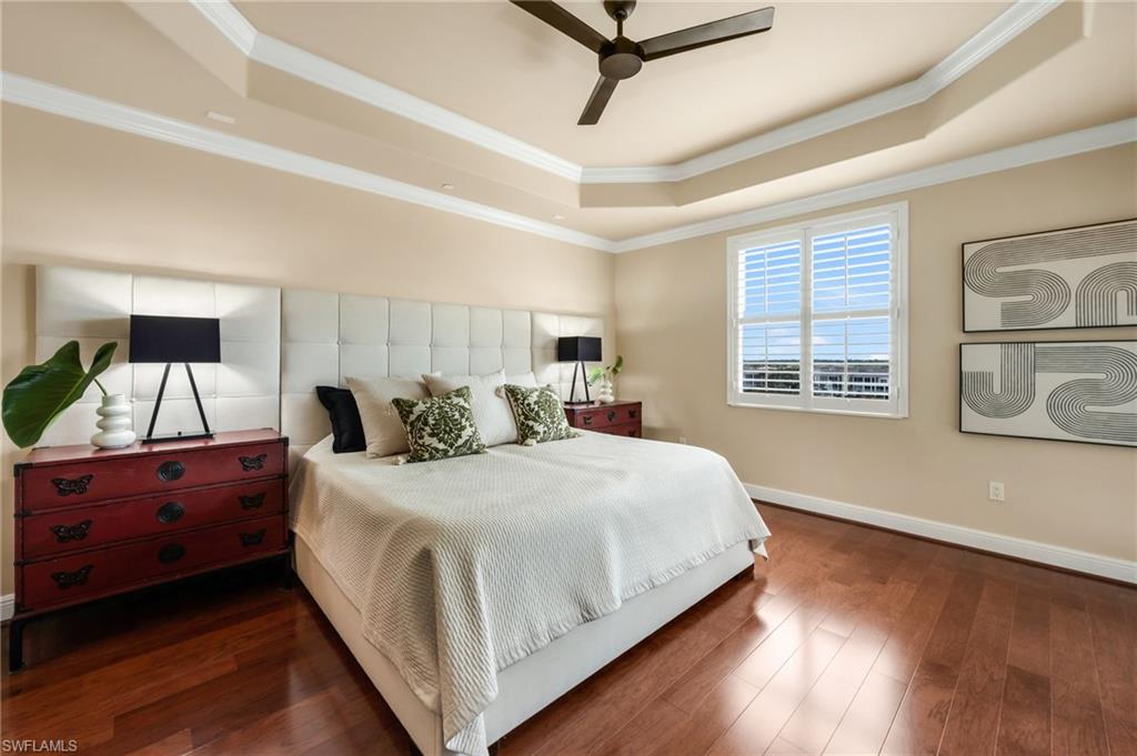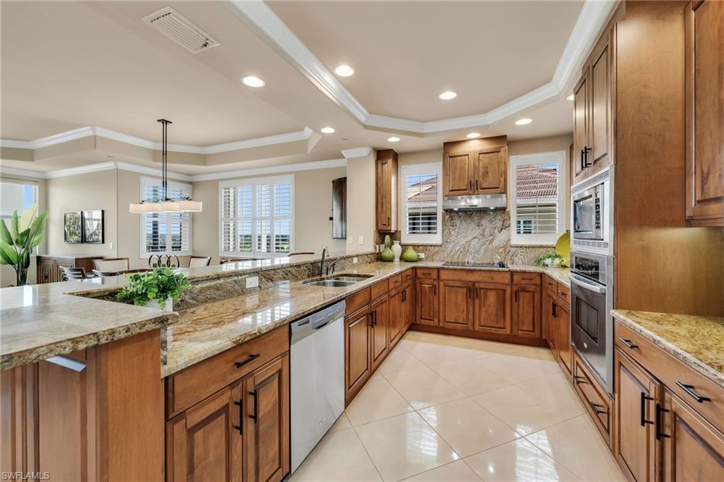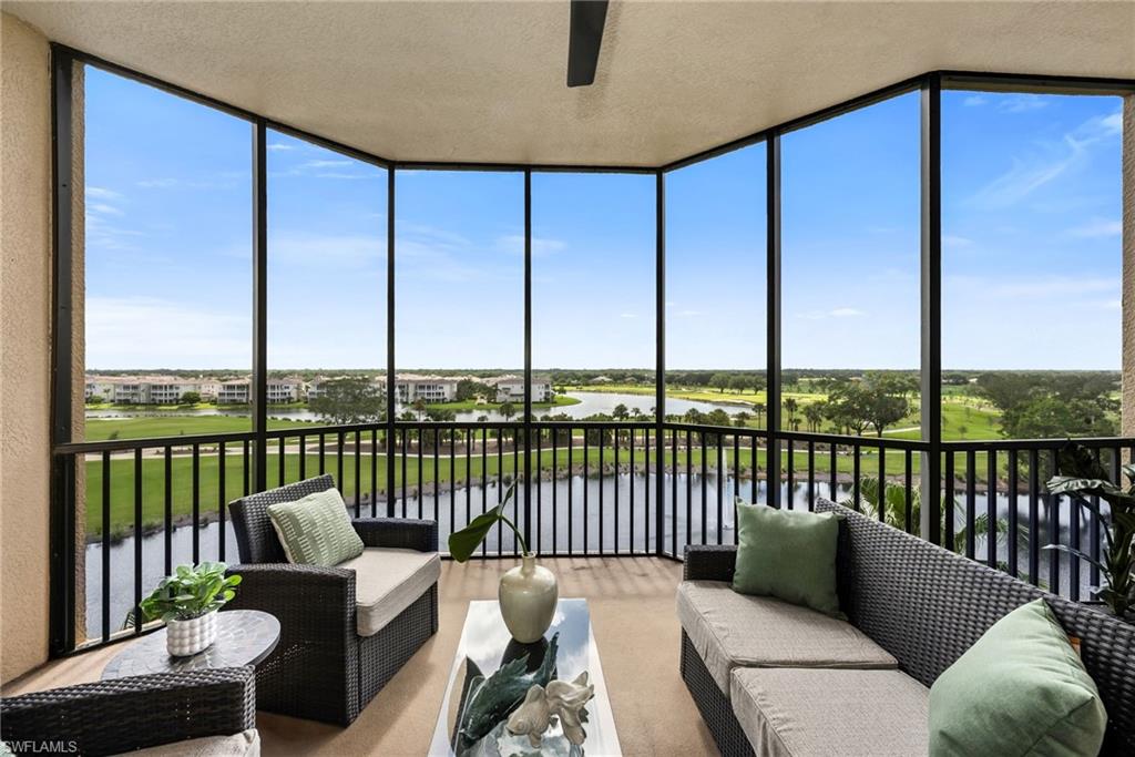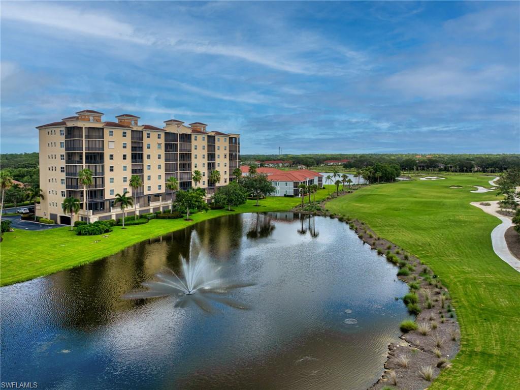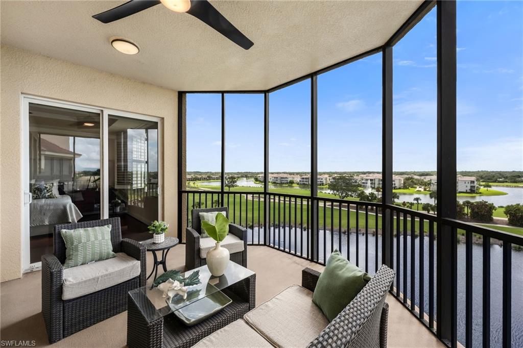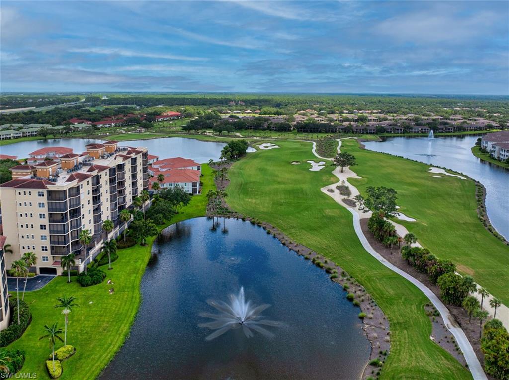 Vista Pointe's newest and most desirable building, 580, sits this remarkable 6th floor end unit condo. It offers sweeping views over the championship golf course and sparkling lakes below. Windows run the length of this modern floorplan, filling each space with natural light and framing tranquil vistas. The open design creates a sense of airy sophistication, enhanced by high ceilings and refined finishes throughout. The spacious gourmet kitchen, a true centerpiece, features high-end appliances, upgraded custom pull-out drawers, and abundant cabinetry - perfect for both casual meals and elegant entertaining. This home has large bedrooms with ample closets, designer bathrooms, and a private bedroom balcony. Vista Pointe is renowned for its exclusivity, providing a gated, resort-style environment within the celebrated Vineyards master-planned community. Among this unit's standout features are TWO coveted GARAGE parking spots - an unparalleled convenience and a true premium in this community. Don't miss the rare opportunity to own a light-filled, window-lined END unit in one of Naples' most sought-after addresses, where every day brings panoramic views, privacy, and the ultimate in upscale Florida living.