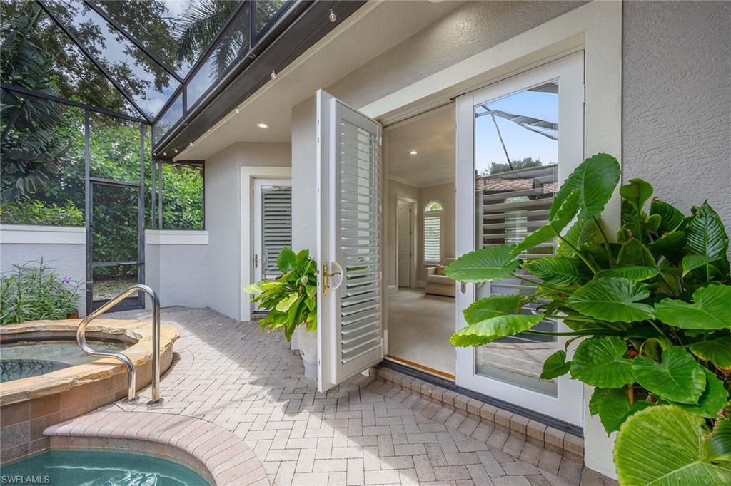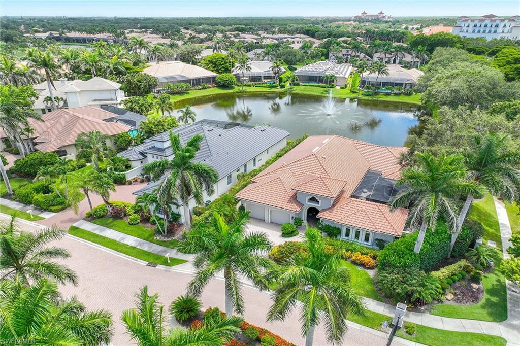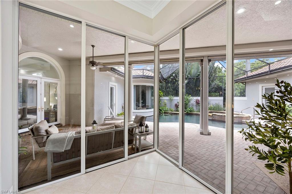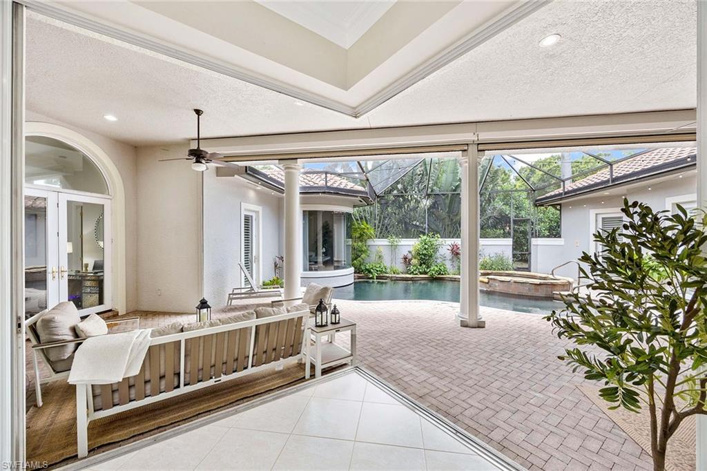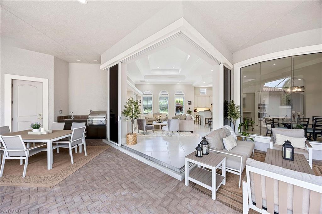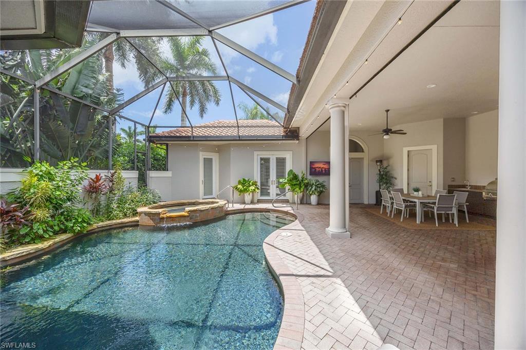 PRICED TO SELL! Turnkey furnished, updated and fabulous! Rarely available in Muirfield at Pelican Marsh, a private gated enclave of just 37 custom homes. This former model home offers 3,100 square feet of tastefully updated living space with three en-suite bedrooms, a saltwater lagoon-style pool and spa, outdoor kitchen, zero-corner sliders and a two-car garage with epoxy flooring. Newer roof (2018). Whole house generator (2020). Three air conditioners for total comfort. Enter through grand double doors into a stunning courtyard entry with pool and spa a Florida oasis. The open concept layout flows seamlessly with porcelain tile flooring throughout, combining leisure and formal dining areas with a beautifully renovated kitchen featuring a neutral white cabinetry, quartz countertops, a stainless-steel induction range with hood, built-in oven/microwave combo, large walk-in pantry and counter-height seating. The elegant living room with a gas fireplace (propane) opens to serene lake and fountain views with eastern exposure. The spacious primary suite offers a cozy sitting area overlooking the pool, dual custom closets, jetted tub, dual vanities and a separate shower. Residents of Pelican Marsh enjoy 24/7 staffed gatehouse, private golf club, clubhouse, tennis and pickleball center, The Court restaurant, fitness center, bocce, biking paths, playground and more. One of the best locations in Naples. All just minutes from white sand beaches, fine dining and everything Naples!