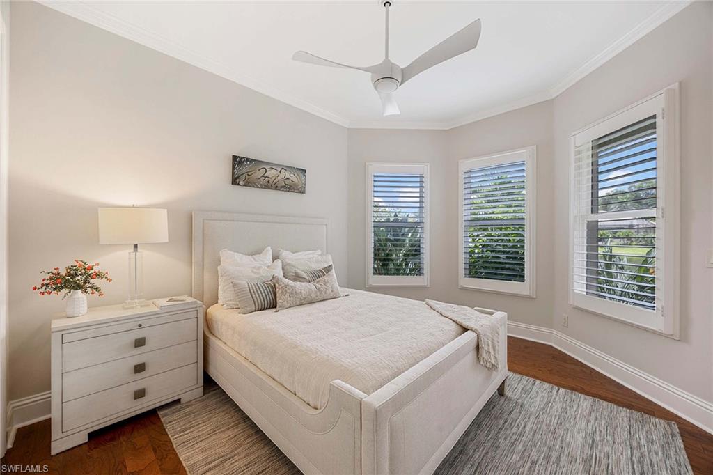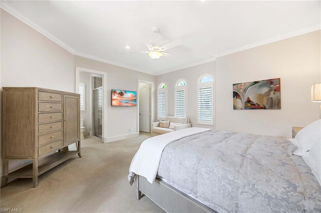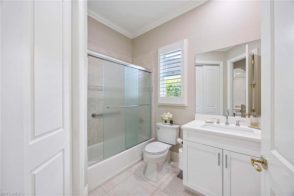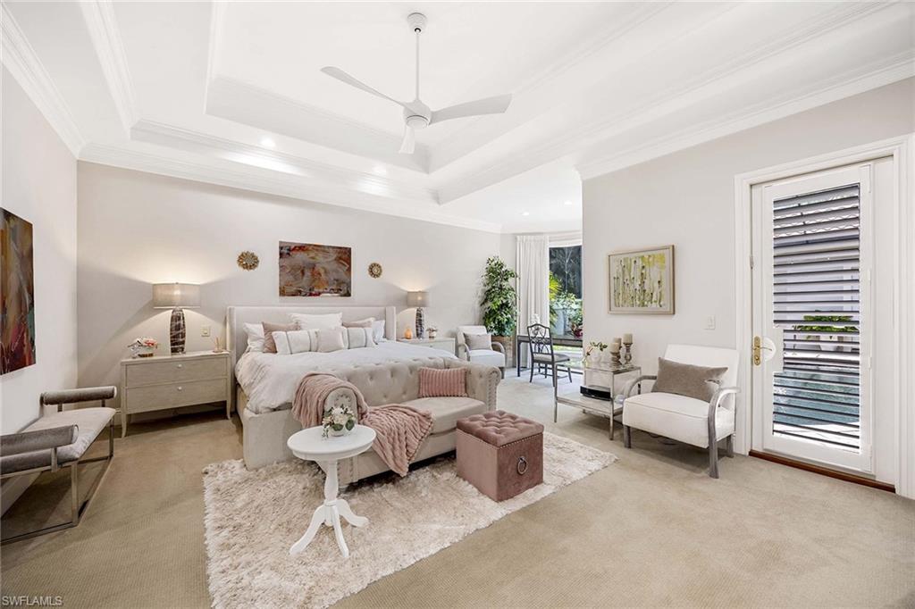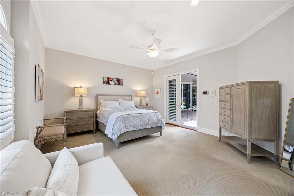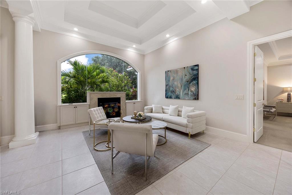 PRICED TO SELL! Turnkey furnished, updated and fabulous! Rarely available in Muirfield at Pelican Marsh, a private gated enclave of just 37 custom homes. This former model home offers 3,100 square feet of tastefully updated living space with three en-suite bedrooms, a saltwater lagoon-style pool and spa, outdoor kitchen, zero-corner sliders and a two-car garage with epoxy flooring. Newer roof (2018). Whole house generator (2020). Three air conditioners for total comfort. Enter through grand double doors into a stunning courtyard entry with pool and spa a Florida oasis. The open concept layout flows seamlessly with porcelain tile flooring throughout, combining leisure and formal dining areas with a beautifully renovated kitchen featuring a neutral white cabinetry, quartz countertops, a stainless-steel induction range with hood, built-in oven/microwave combo, large walk-in pantry and counter-height seating. The elegant living room with a gas fireplace (propane) opens to serene lake and fountain views with eastern exposure. The spacious primary suite offers a cozy sitting area overlooking the pool, dual custom closets, jetted tub, dual vanities and a separate shower. Residents of Pelican Marsh enjoy 24/7 staffed gatehouse, private golf club, clubhouse, tennis and pickleball center, The Court restaurant, fitness center, bocce, biking paths, playground and more. One of the best locations in Naples. All just minutes from white sand beaches, fine dining and everything Naples!