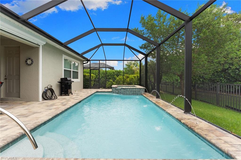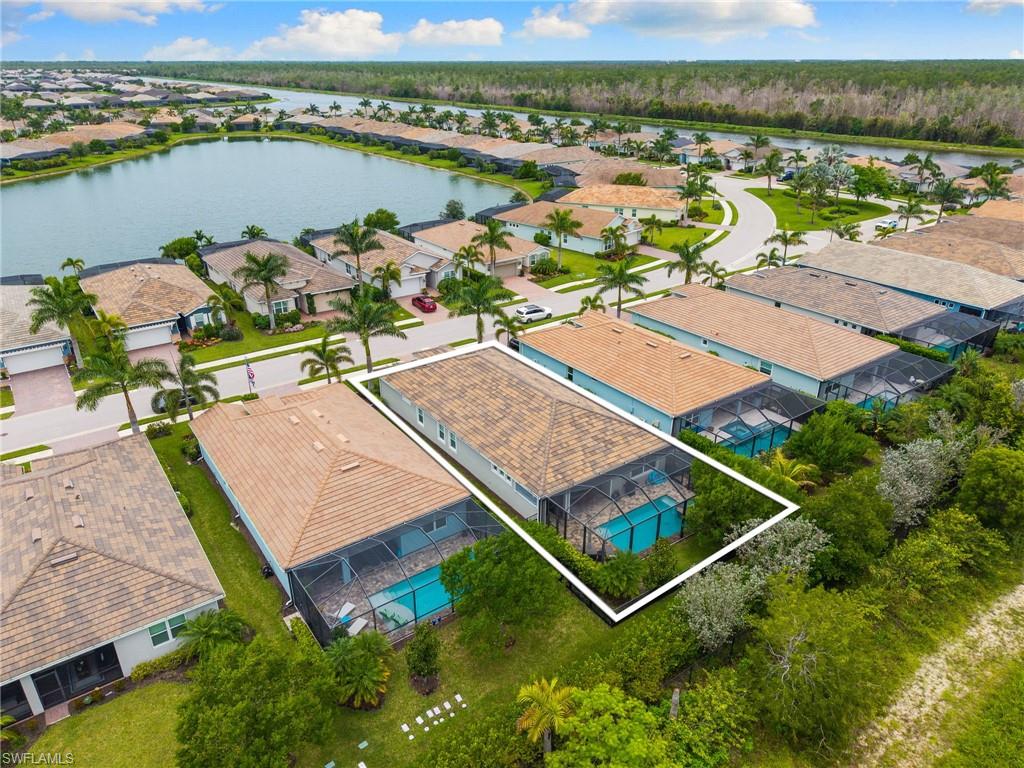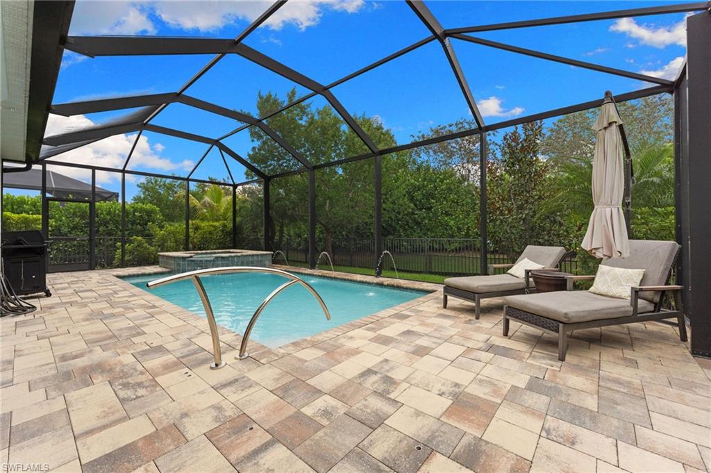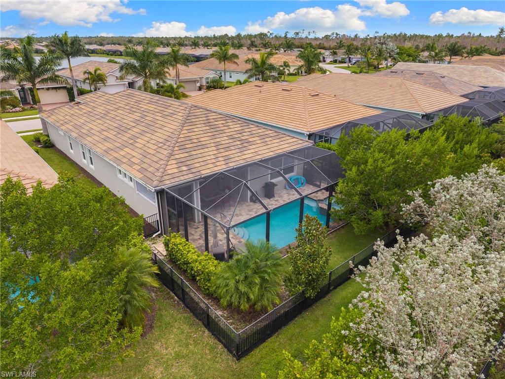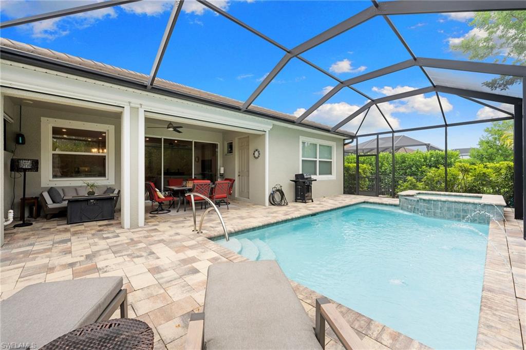 Come see this beautiful home in the Resort Style, award winning community at Naples Reserve! This amazing Barrymore model designed for comfort and elegance features a spacious 2 and a half sized garage, an open concept layout that invites natural light to flow throughout, wood-looking tile floors, 3 large bedrooms plus a den, 3 and a half bathrooms, lots of storage space, crown molding in the main living areas adding sophistication and warmth. The custom heated "seamless' pool and spa includes a soothing water feature, spacious brick paver pool deck making it perfect for outdoor entertainment, a pre-plumbed water hookup making it ready for your future outdoor kitchen, and Electric Storm Smart roll-down screens that provide not only shade and protection but peace of mind. The gourmet kitchen is a chef's dream featuring quartz countertops and an induction cooktop making it ideal for entertaining guests. This single-family home is being sold Turkey and the seller would consider offers for the golf cart. Naples Reserve community amenities make it a vibrant lifestyle including: Resort style pool, 1-mile-long rowing lane, 4 Pickleball courts, 5 Tennis courts, Boat Ramp, Island club, Tiki Bar & cafe with food and beverage service currently undergoing expansion, Boat ramp, use of electric boats, stand-up paddle boards, Kayaks & Canoes, Kon-Tiki Island the famous picnic spot, Fire pit, 24-hour live guard, 23 lakes, 2 Dog parks, Miles of walking/biking paths, Children's play area and more! Seller has paid the assessment to upgrade tiki hut/dining at the pool! Low HOA fees and located just a short drive to Marco Island beaches or the beautiful downtown Naples 5th Avenue. Schedule your private tour today!