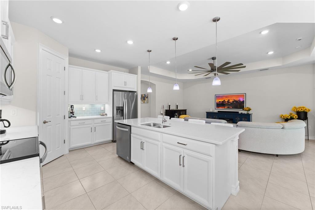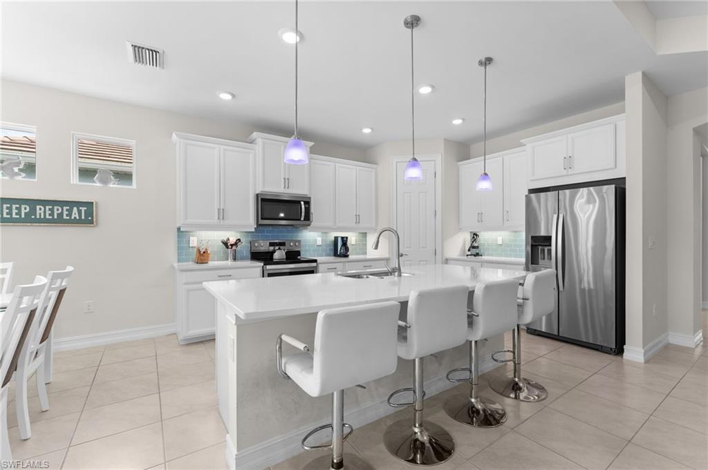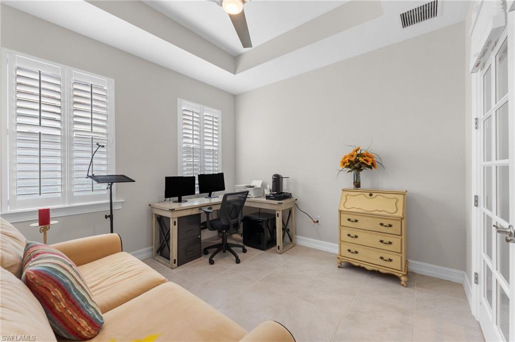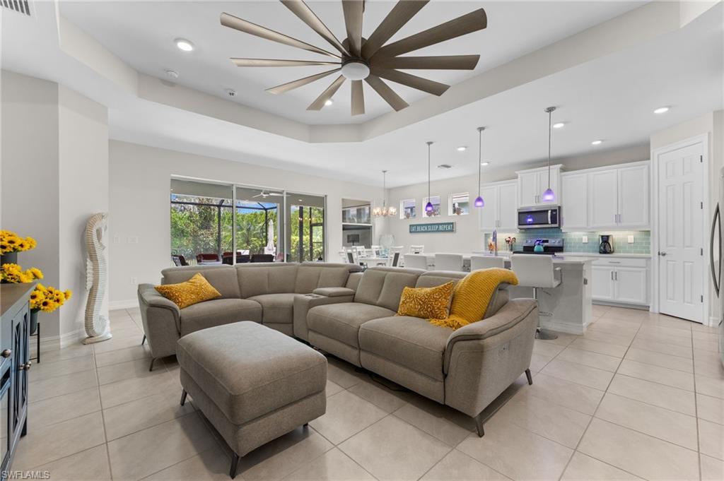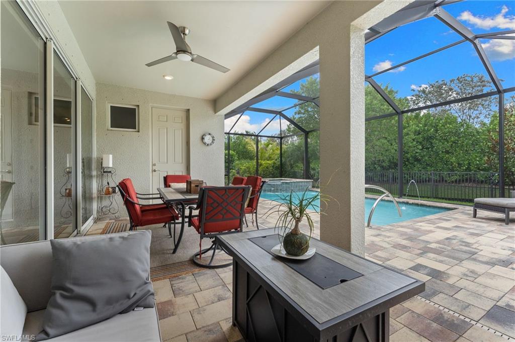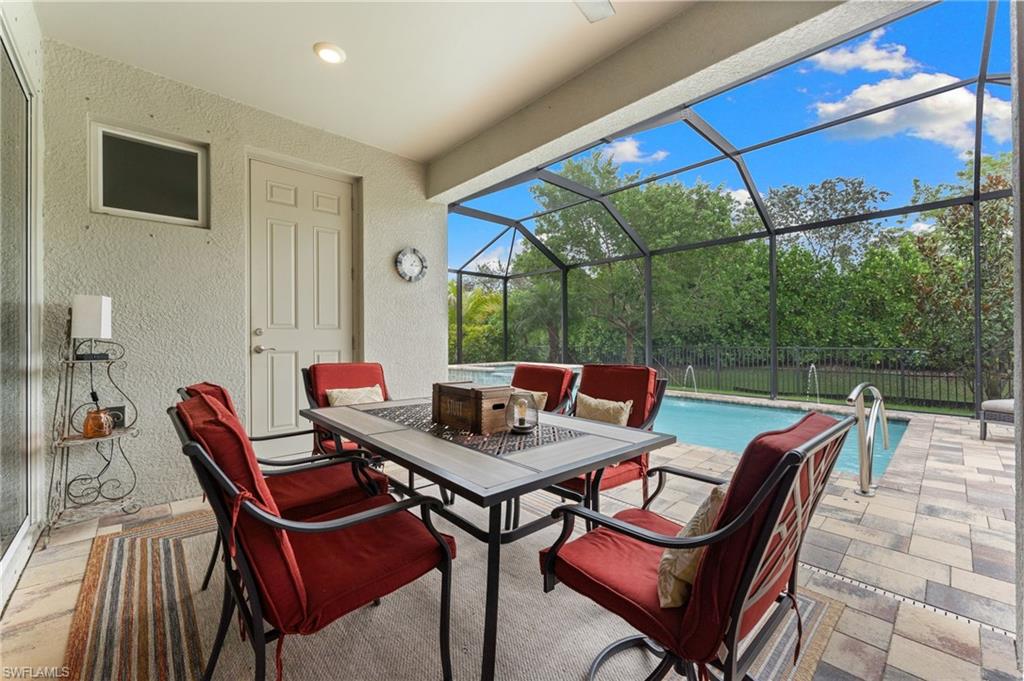 Come see this beautiful home in the Resort Style, award winning community at Naples Reserve! This amazing Barrymore model designed for comfort and elegance features a spacious 2 and a half sized garage, an open concept layout that invites natural light to flow throughout, wood-looking tile floors, 3 large bedrooms plus a den, 3 and a half bathrooms, lots of storage space, crown molding in the main living areas adding sophistication and warmth. The custom heated "seamless' pool and spa includes a soothing water feature, spacious brick paver pool deck making it perfect for outdoor entertainment, a pre-plumbed water hookup making it ready for your future outdoor kitchen, and Electric Storm Smart roll-down screens that provide not only shade and protection but peace of mind. The gourmet kitchen is a chef's dream featuring quartz countertops and an induction cooktop making it ideal for entertaining guests. This single-family home is being sold Turkey and the seller would consider offers for the golf cart. Naples Reserve community amenities make it a vibrant lifestyle including: Resort style pool, 1-mile-long rowing lane, 4 Pickleball courts, 5 Tennis courts, Boat Ramp, Island club, Tiki Bar & cafe with food and beverage service currently undergoing expansion, Boat ramp, use of electric boats, stand-up paddle boards, Kayaks & Canoes, Kon-Tiki Island the famous picnic spot, Fire pit, 24-hour live guard, 23 lakes, 2 Dog parks, Miles of walking/biking paths, Children's play area and more! Seller has paid the assessment to upgrade tiki hut/dining at the pool! Low HOA fees and located just a short drive to Marco Island beaches or the beautiful downtown Naples 5th Avenue. Schedule your private tour today!