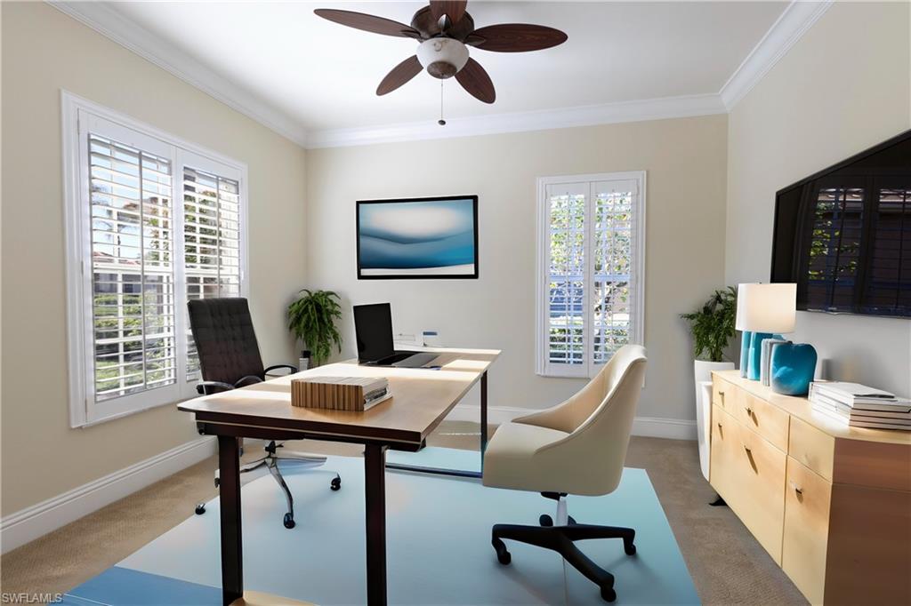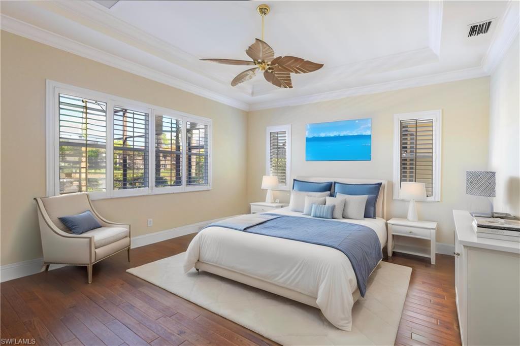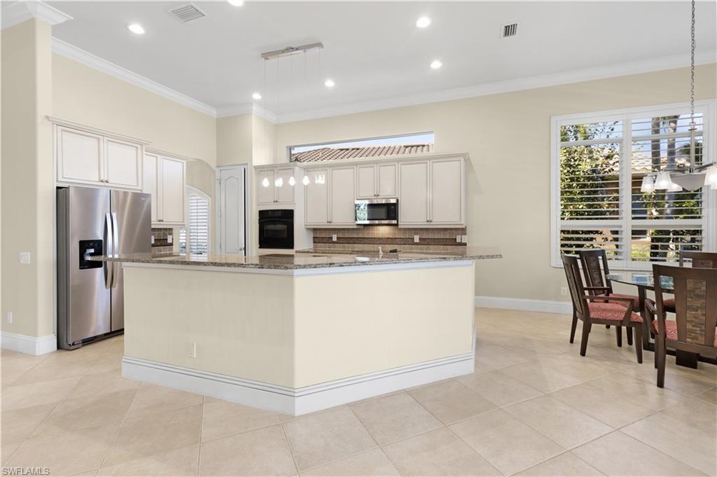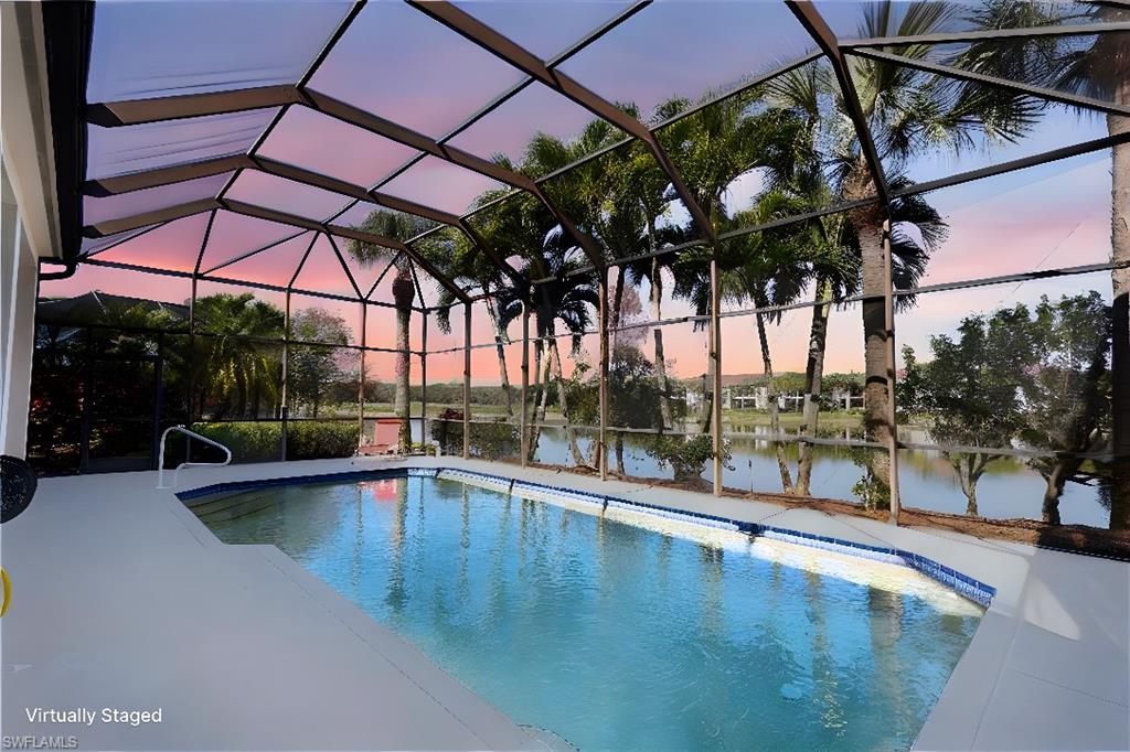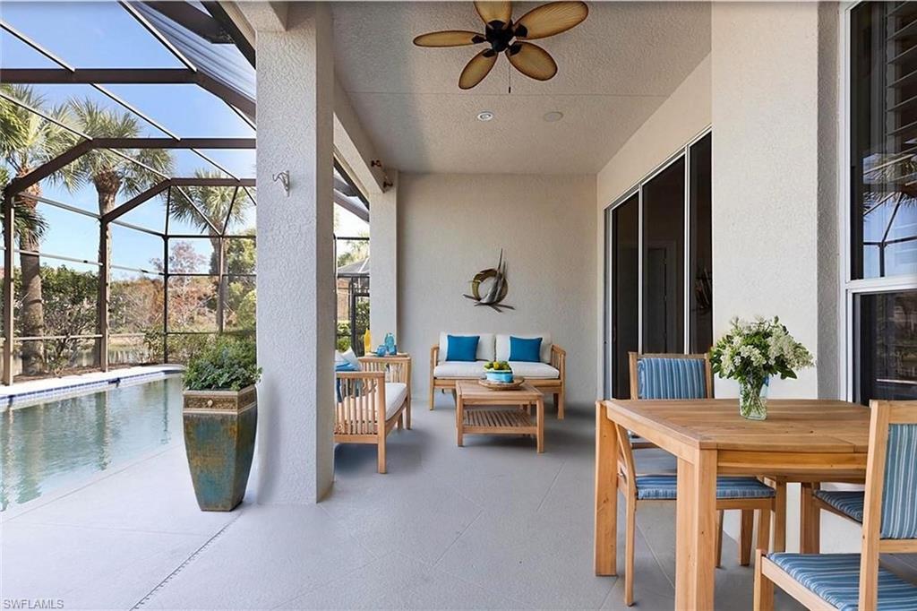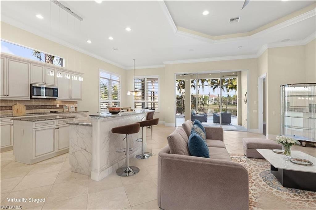 Location, Luxury, Lifestyle – Just Steps from the Clubhouse! Welcome to this beautifully designed 3-bedroom, 2-bathroom home offering 2,543 sq.ft. of spacious, light-filled living in one of the most desirable locations in Vasari Country Club. Just a short stroll to the clubhouse and all the amenities, this property combines elegance, comfort, and unmatched convenience. Inside, soaring ceilings and an open floor plan create a bright, airy ambiance perfect for both relaxing and entertaining. The generously sized great room flows seamlessly into the kitchen and dining areas, while the private master suite offers serene views of the pool, lake, and golf course—a true retreat. Two additional bedrooms are thoughtfully placed on the opposite side of the home, ensuring privacy for guests. Step outside and you’ll find your own private oasis: a sparkling pool with panoramic lake and golf course views—perfect for quiet mornings or evening gatherings. Additional highlights include a new roof (2019), a 2-car garage, and the peace of mind that comes with low-maintenance living. Even better? This home includes an immediate golf membership and the vibrant social lifestyle that Vasari is known for. Enjoy tennis, bocce, fitness center, and new pickleball courts coming soon! The clubhouse features both casual and formal dining, a pool/spa, game/card rooms, and much more. Centrally located near RSW Airport, Gulf beaches, and the world-class shopping and dining of Naples’ 5th Avenue, this home is the perfect blend of elegance and easy living. Virtually staged photos showcase the full potential of this exceptional property.
