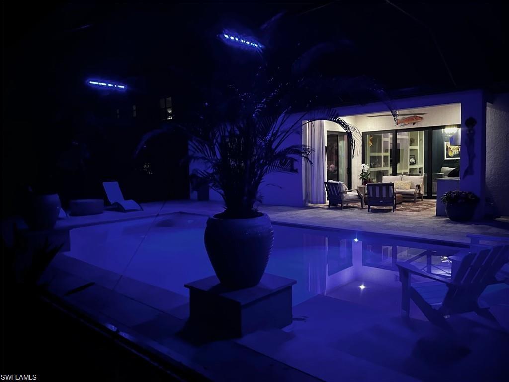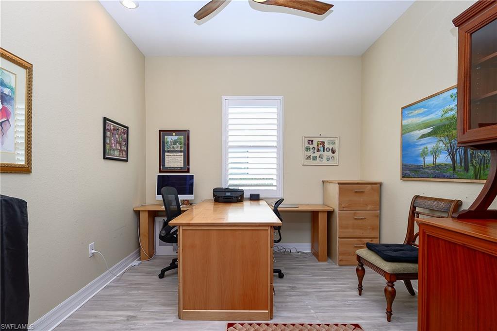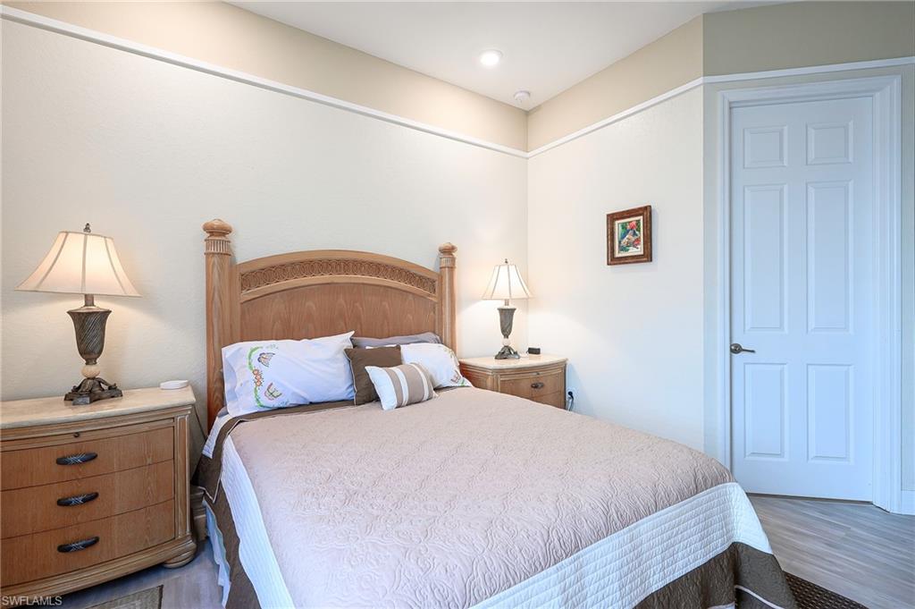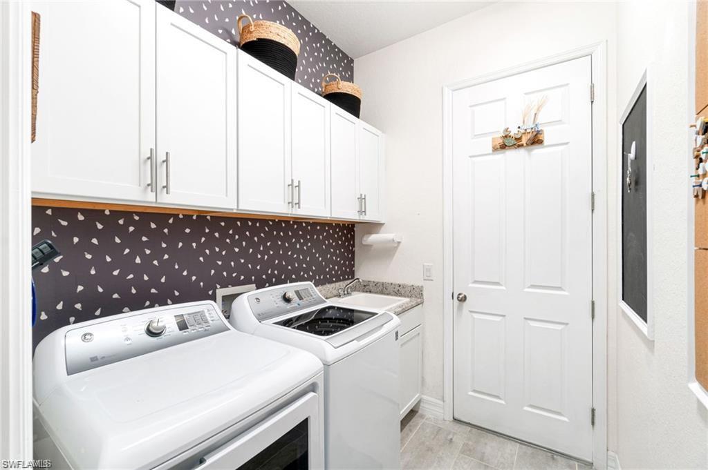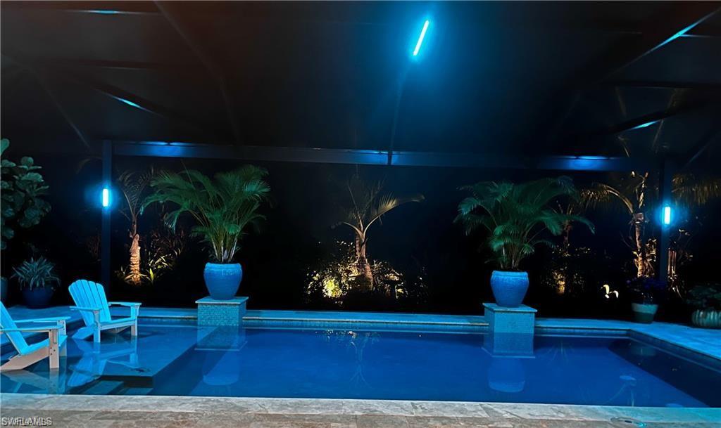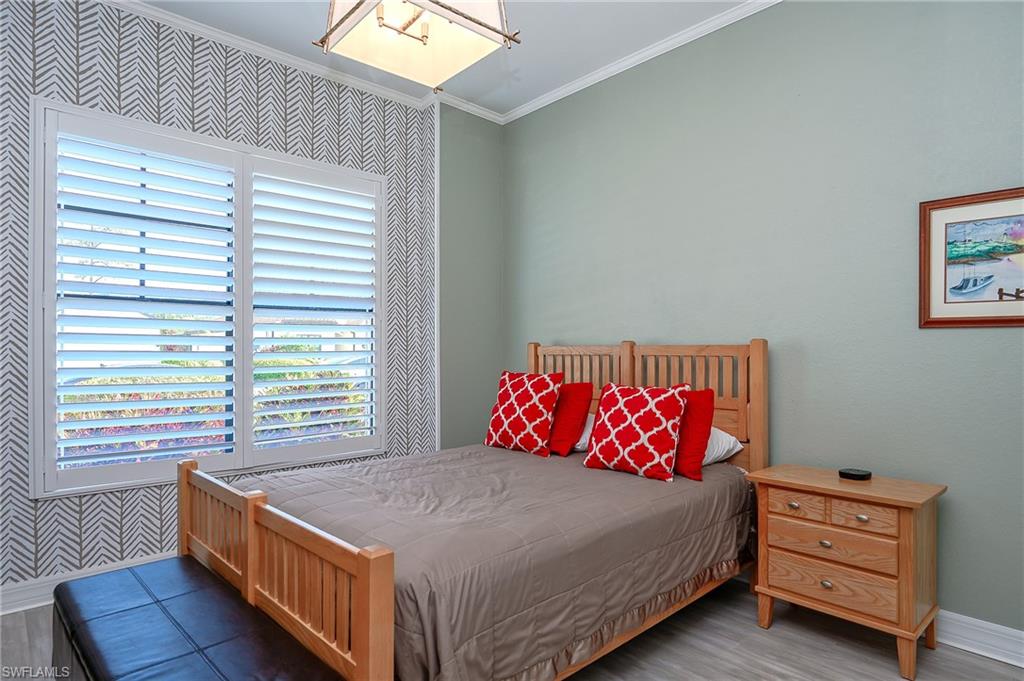 This upgraded Summerville model, part of the Manor Home Collection, offers spacious and stylish living with thoughtful design throughout. With 3 bedrooms, 3 full bathrooms, a den, and a 3-car garage, this home was built for comfort, functionality, and entertaining. Step through double glass doors into a wide foyer with a custom accent wall. The open-concept great room impresses with expansive views and a seamless connection between the living, dining, and kitchen areas. The chef’s kitchen features an 11-foot island, custom walk-in pantry, and a full-height backsplash that extends over the cabinets to the ceiling for a dramatic finish. Each bedroom has been tastefully styled with custom wall or ceiling accents. The master suite is a serene retreat with two walk-in closets, a chandelier, and a statement accent wall. The master bath includes dual vanities, a soaking tub with custom wall art above, and an oversized walk-in shower. The guest suite offers privacy and comfort with its own en-suite bathroom, ideal for visitors or extended stays. The den is enclosed with 8-foot French doors and plantation shutters, creating a quiet and flexible space for work or relaxation. Outdoors, the covered lanai delivers the full Florida lifestyle with a complete outdoor kitchen, built-in grill and exhaust hood, refrigerator, marble countertops, and a wall-mounted TV. The custom saltwater pool, installed in 2021, is 15 by 32 feet and features a sun shelf with loungers, a bubbler, water features, and two built-in stanchions with matching planters. The oversized panoramic cage is finished with travertine tile and landscape lighting, offering the perfect setting for day or night entertaining. Additional features include hurricane impact windows and doors throughout and three large overhead storage racks in the garage that eliminate the need for off-site storage. LaMorada is a gated, natural gas community in North Naples that combines the amenities of a large resort-style neighborhood with a more intimate residential feel. Residents enjoy pickleball, tennis, bocce, a fitness center, resort-style pool and bar, theater, culinary arts studio, and a library.