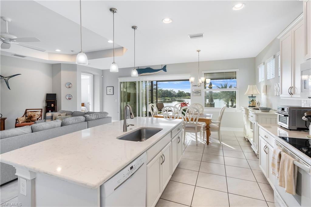 Lakefront Luxury Living with Breathtaking Long Lake Views Welcome to this rarely available, highly sought-after Ashbury floorplan, offering 4 spacious bedrooms, 3.5 baths, and a flex room, all situated on an OVERSIZED LOT with stunning, uninterrupted LONG LAKE VIEWS. This exceptional home, nestled on the water’s edge, is truly a rare find. With 2,431 sq. ft. of thoughtfully designed living space, this home features luxury upgrades throughout. The open-concept layout boasts upgraded cabinetry, pristine quartz countertops, and tile flooring throughout the main living areas, while all bedrooms are outfitted with stylish and durable luxury vinyl flooring. The home is prepped for a gas range, with a future gas line in place to suit your culinary needs. A 1000-GALLON PROPANE TANK and top-of-the-line GENERATOR offer peace of mind, ensuring you’re never without power. The extended lanai is an entertainer’s dream, with a pool bath for convenience and panoramic water views that stretch across the long lake. Imagine relaxing by the water or hosting gatherings with a built-in kitchen—already prepped with a gas rough-in. Inside, the master bath offers an expansive walk-in shower and premium tile upgrades, creating a true spa-like retreat. Community amenities include a guarded gate for added security, 22 scenic lakes, a boat ramp, and the Island Club featuring a fitness center and social spaces. Enjoy two Bocce ball courts, outdoor fitness stations, a beach volleyball court, and a Tiki bar & café with food and beverage service (no minimum spend). Relax at the resort-style pool with lap lanes and fire pit, or take advantage of access to electric boats, kayaks, tennis, and pickleball courts. The community also offers two large dog parks, miles of walking and biking paths, a children's play area, and a basketball court. With onsite property management and a dedicated Lifestyle Director, there’s always a full calendar of fitness, social, and community events, and golf carts are allowed for easy access to everything the neighborhood has to offer. Don’t miss out on the chance to own this exceptional lakefront home with unparalleled views.