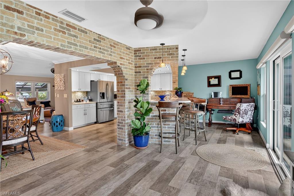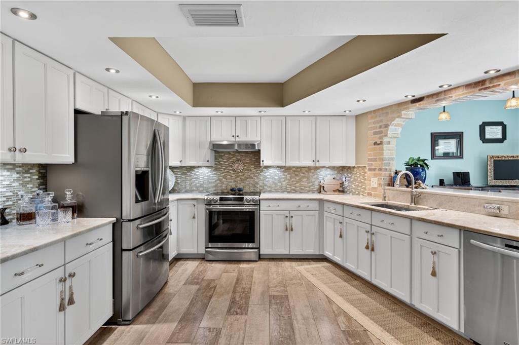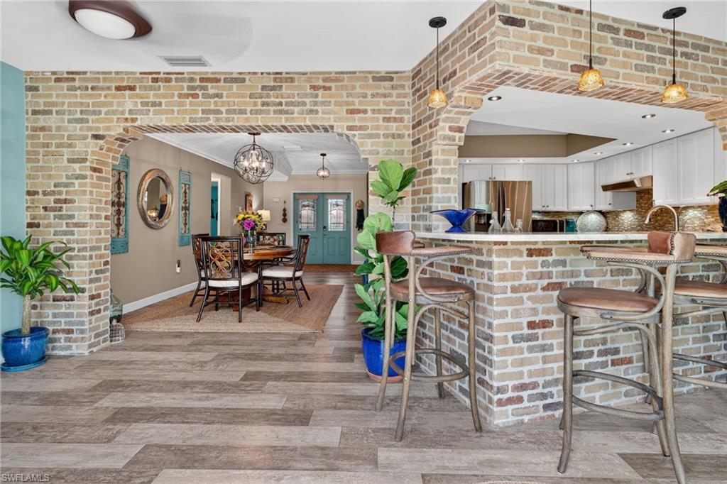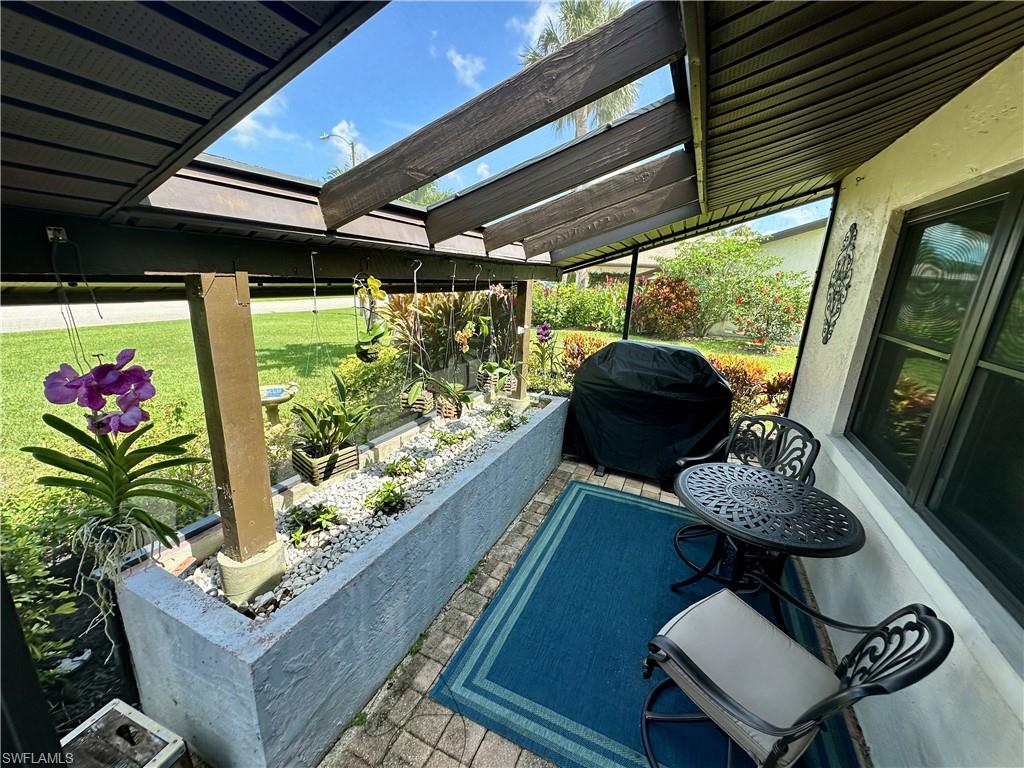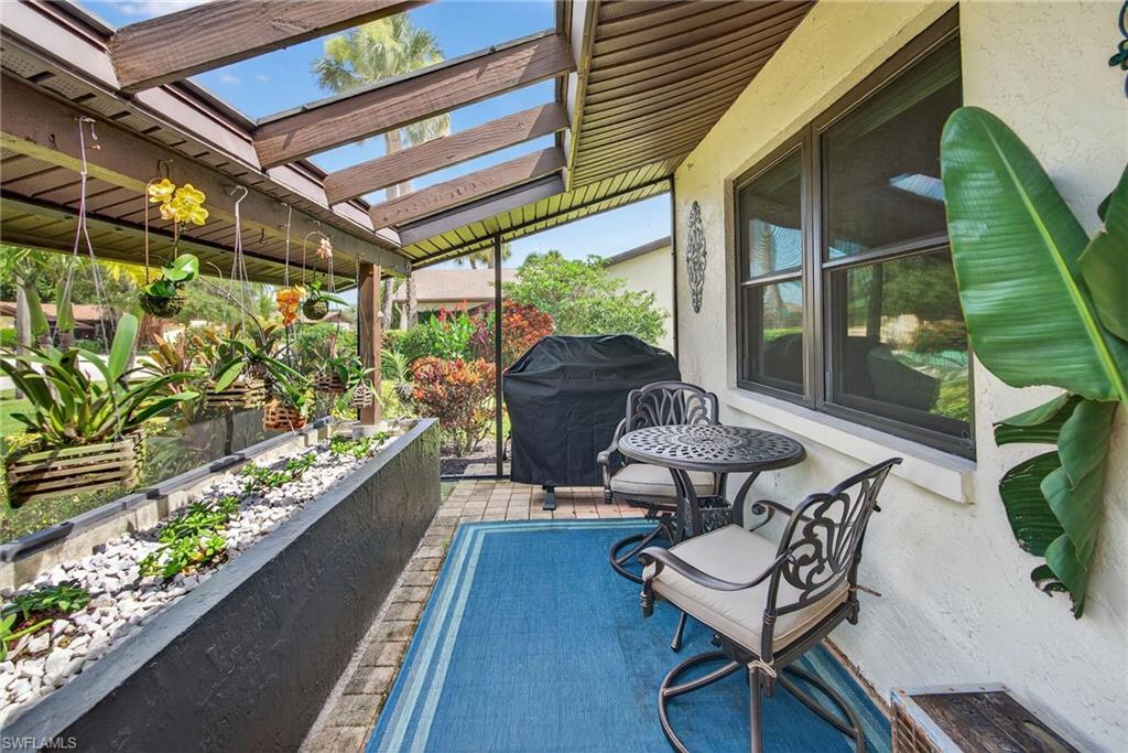 Welcome to the most exquisite Naples Villa around full of sophisticated charm & all the right upgrades. LOW HOA Fees, Great Location & Just reduced $24,000.00, Upgraded & Expanded 2 BD | 2 BA - Naples Villa End Unit - 1,440 Interior SF, Oversized 1 CG - Speckled Flooring & EV Ready, Home Warranty, Hurricane Proof Windows & Sliders, Wood-look tile throughout, Custom Blonde Brick Surround in Kitchen, Taj Mahal Level 5 Quartzite throughout, All Appliances under 5 yrs old incl A/C, Hunter Douglas Automated Shades, Custom Closets, Furniture Optional, Screened Front Porch & Entry, Pavered back patio with Bahama Shutters - This home will check all your boxes & more, so do not miss out on this little gem right near the heart of Naples prime! (AND the Seller can sell furnished minus the guest room teal bed if this makes it easier for you!)