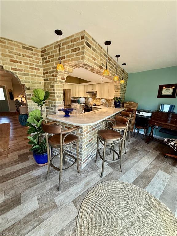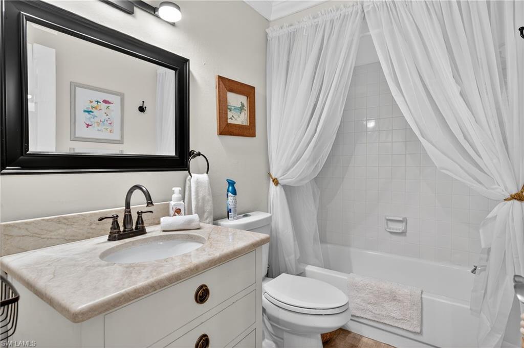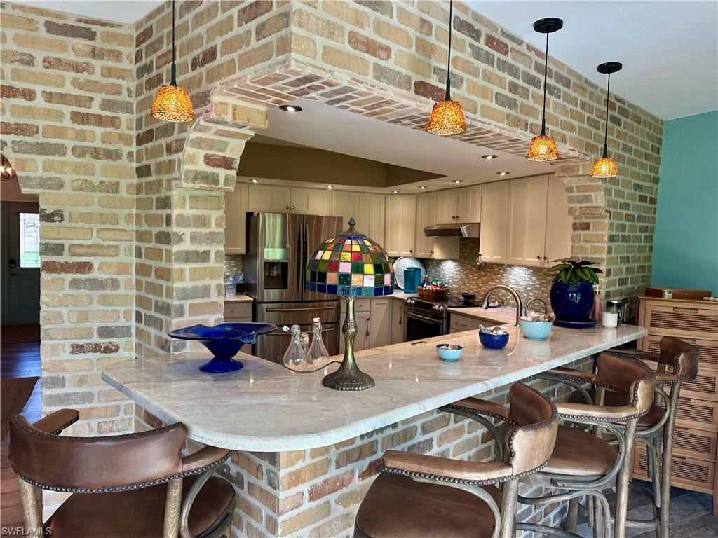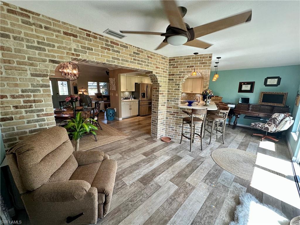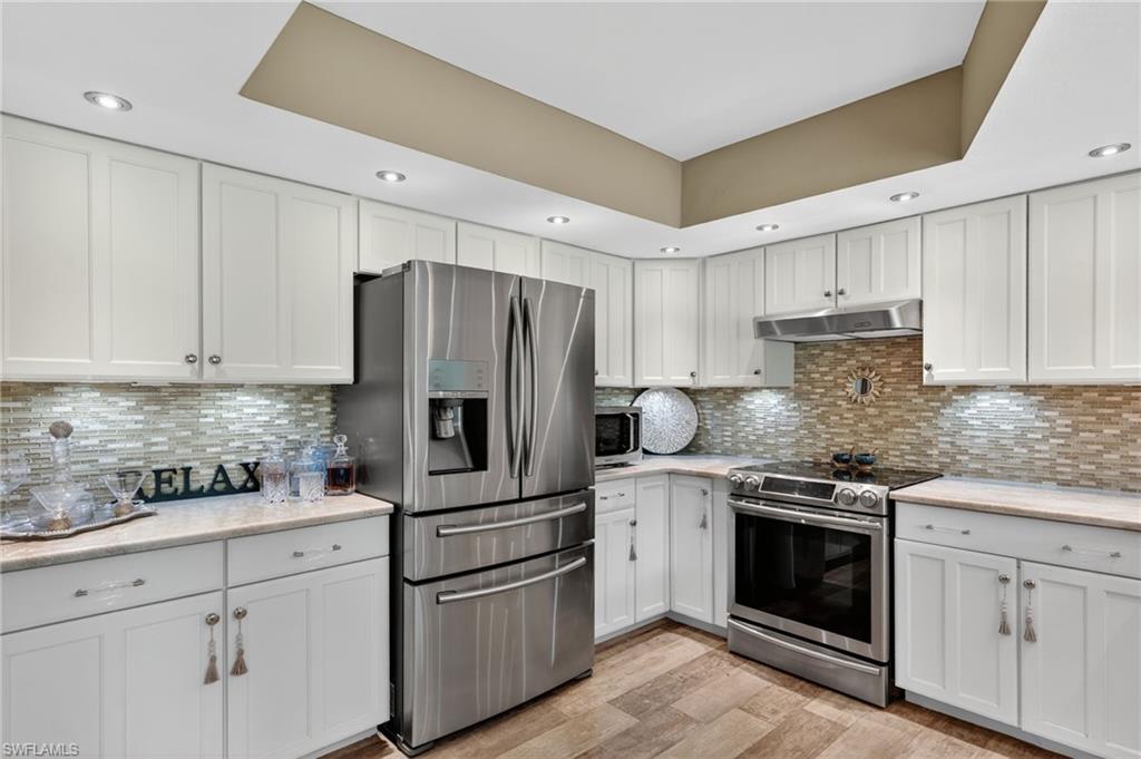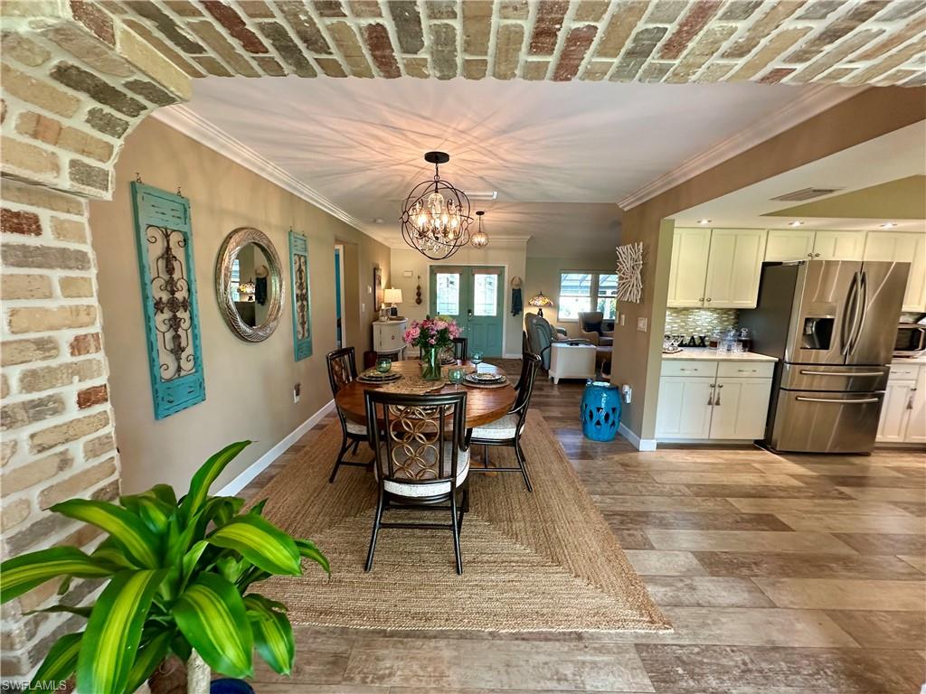 Welcome to the most exquisite Naples Villa around full of sophisticated charm & all the right upgrades. LOW HOA Fees, Great Location & Just reduced $24,000.00, Upgraded & Expanded 2 BD | 2 BA - Naples Villa End Unit - 1,440 Interior SF, Oversized 1 CG - Speckled Flooring & EV Ready, Home Warranty, Hurricane Proof Windows & Sliders, Wood-look tile throughout, Custom Blonde Brick Surround in Kitchen, Taj Mahal Level 5 Quartzite throughout, All Appliances under 5 yrs old incl A/C, Hunter Douglas Automated Shades, Custom Closets, Furniture Optional, Screened Front Porch & Entry, Pavered back patio with Bahama Shutters - This home will check all your boxes & more, so do not miss out on this little gem right near the heart of Naples prime! (AND the Seller can sell furnished minus the guest room teal bed if this makes it easier for you!)