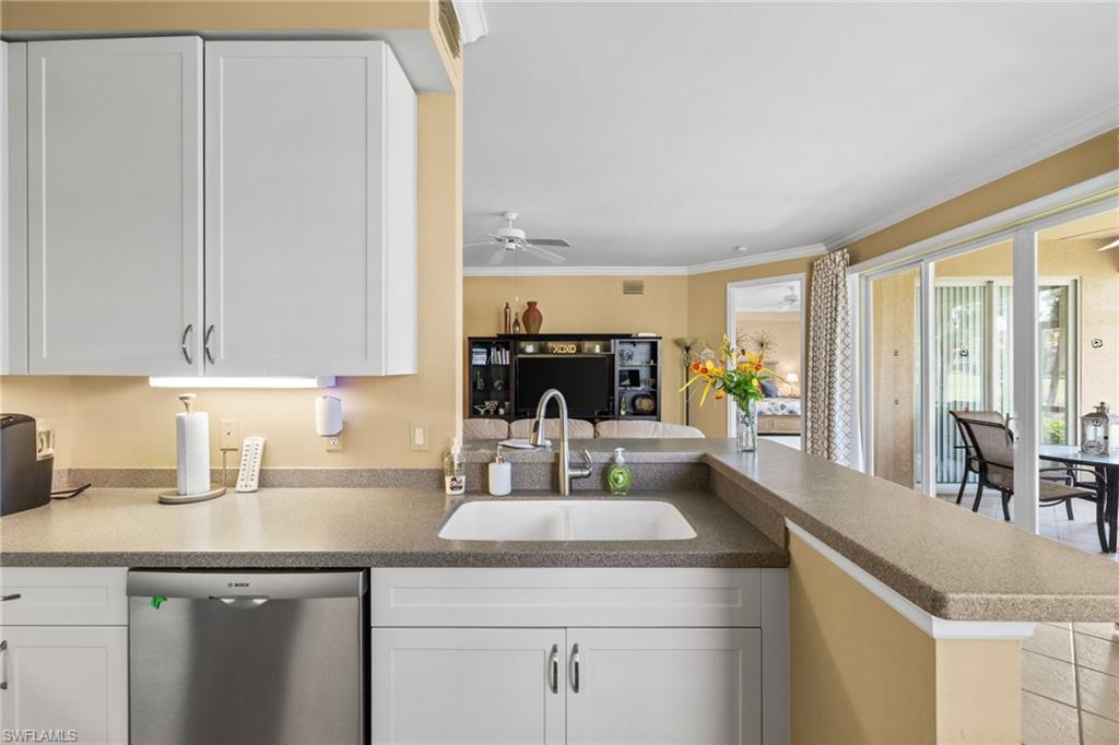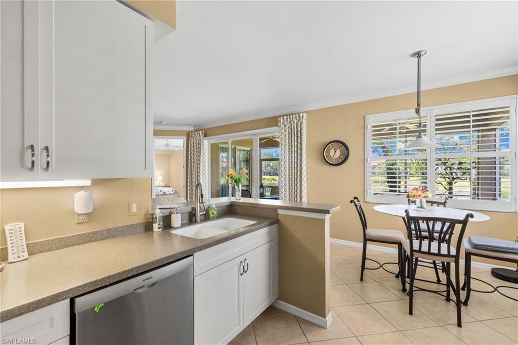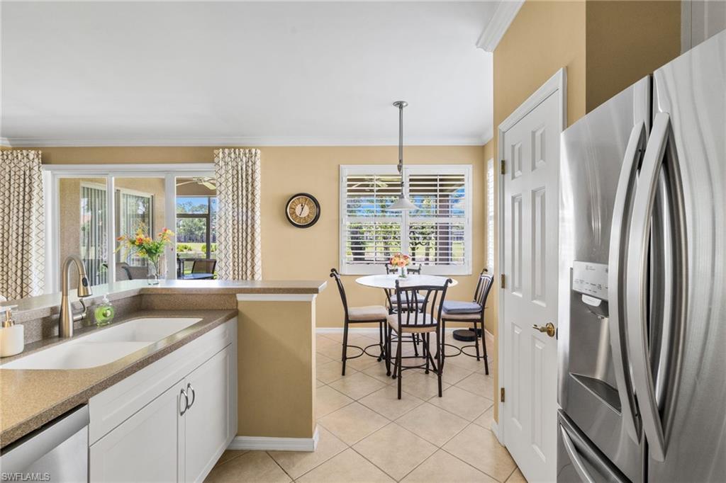 Nestled in the serene community of Forest Glen, this exceptional Naples property offers a unique opportunity to embrace the golf community lifestyle in the heart of Naples. This immaculate first-floor residence boasts panoramic views of the beautifully landscaped area, serene lake, and pristine golf course, all from your private screened lanai. As you step inside, you will discover a modern kitchen featuring stainless steel appliances and multiple dining areas, perfect for entertaining family and friends. The spacious master retreat includes an inviting shower and a relaxing garden tub, ensuring a tranquil escape. This residence is further enhanced by a two-car garage equipped with shelving for added convenience. Just a short stroll away, residents can enjoy a pristine satellite pool, ideal for refreshing dips and sun-soaked relaxation. The golf course recently underwent a full renovation in 2024, enhancing its appeal and playability. Ideally located, this property is just a short drive from downtown Naples and the world-famous white sand beaches, making it the perfect sanctuary for those seeking a balance of relaxation and recreation in one of Florida’s most desirable locales.