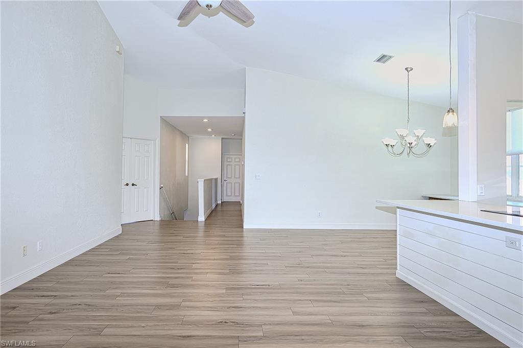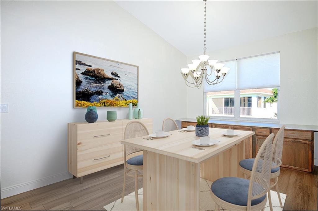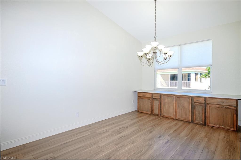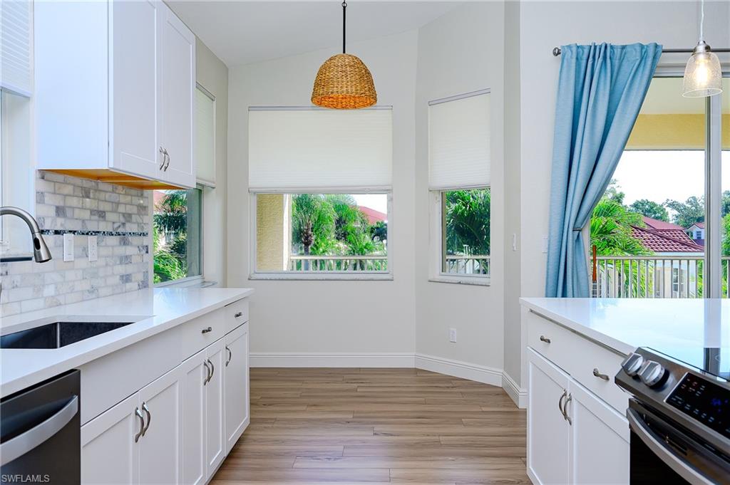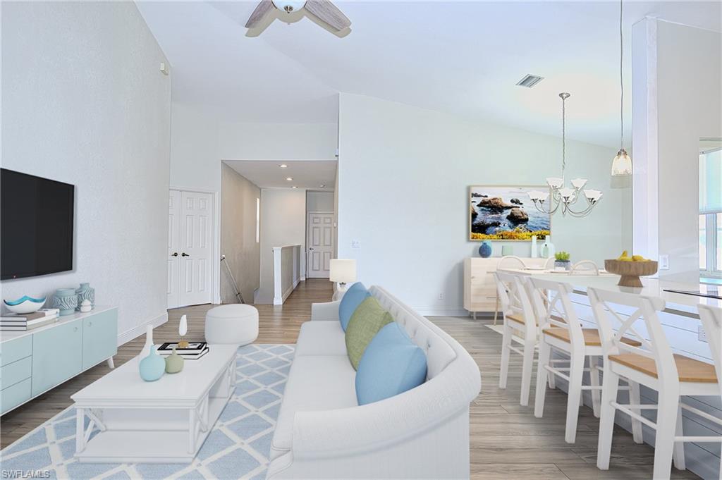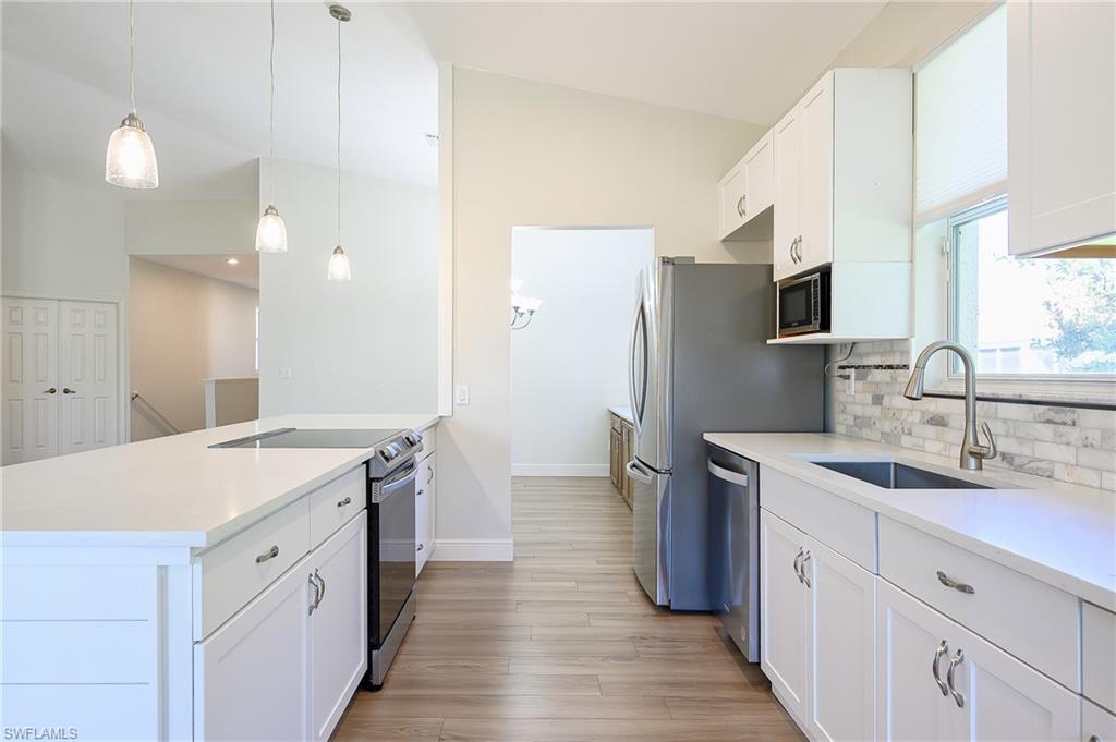 This second-floor coach home in Lalique at The Vineyards offers plenty of space and flexibility. It’s set up as a 4-bedroom but can easily be used as a 3-bedroom plus a den or office. You’ll find volume ceilings, an attached garage, and a great location just steps from the clubhouse, pool, and spa. The kitchen has been remodeled with quartz countertops, white cabinets, and new stainless steel appliances. The wall was removed to create an open layout that flows into the main living area. There’s luxury wood-look flooring throughout the main spaces, vaulted ceilings, two dining areas, and a large screened lanai. The master bathroom has also had some updates for a more modern feel. The Vineyards is centrally located with miles of walking and biking trails, beautiful landscaping, and easy access to shopping, beaches, schools, and I-75. Vineyards Country Club offers optional memberships with two golf courses, tennis, pickleball, a full spa, and more.