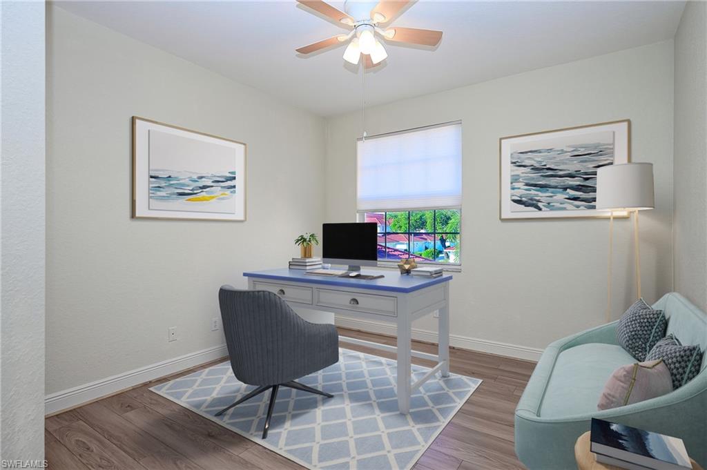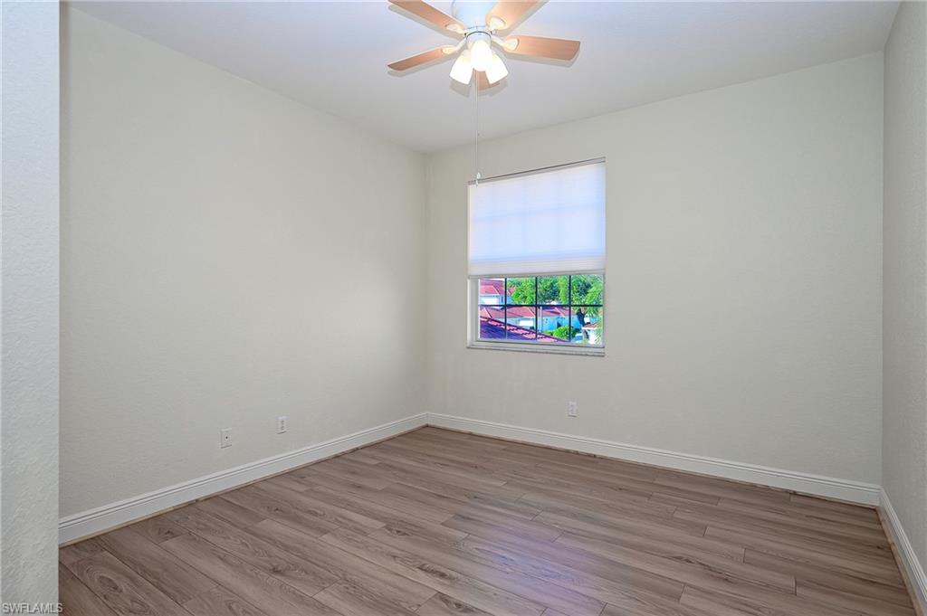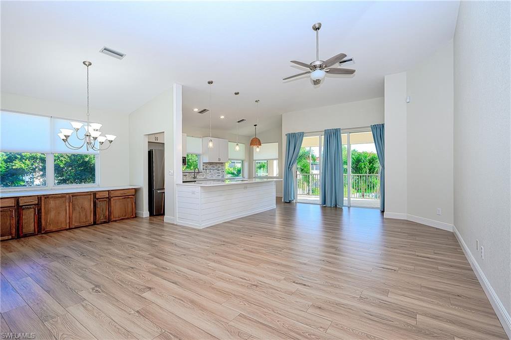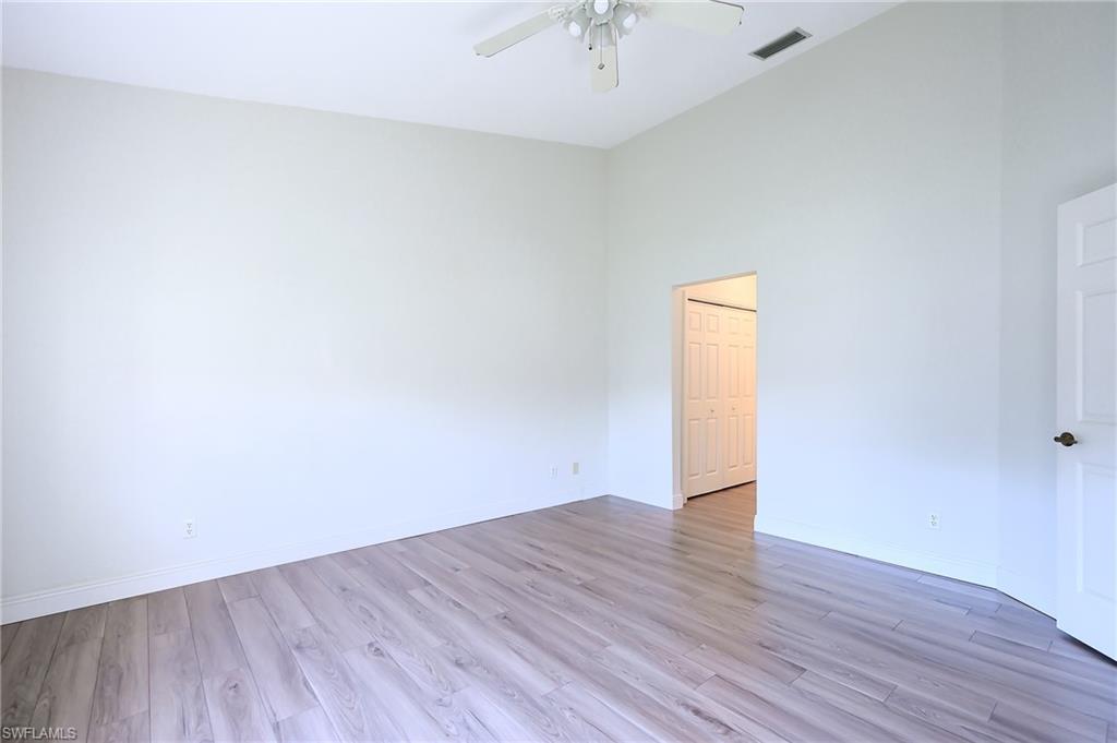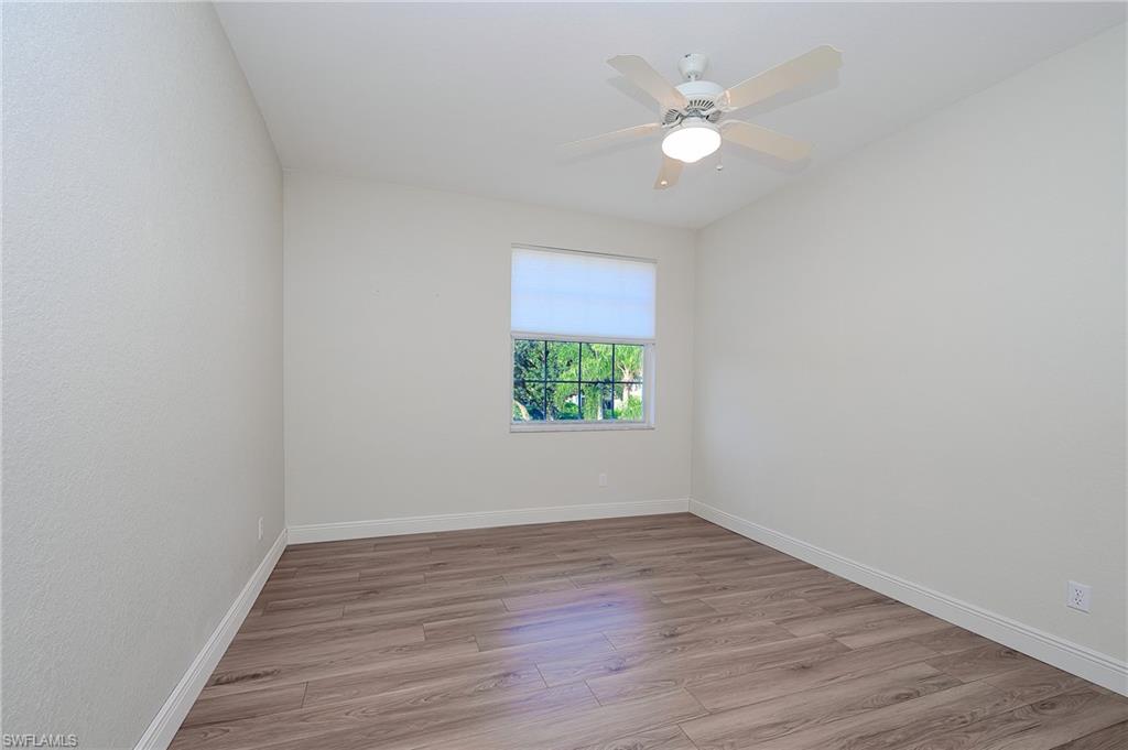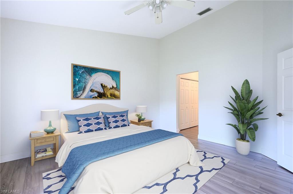 This second-floor coach home in Lalique at The Vineyards offers plenty of space and flexibility. It’s set up as a 4-bedroom but can easily be used as a 3-bedroom plus a den or office. You’ll find volume ceilings, an attached garage, and a great location just steps from the clubhouse, pool, and spa. The kitchen has been remodeled with quartz countertops, white cabinets, and new stainless steel appliances. The wall was removed to create an open layout that flows into the main living area. There’s luxury wood-look flooring throughout the main spaces, vaulted ceilings, two dining areas, and a large screened lanai. The master bathroom has also had some updates for a more modern feel. The Vineyards is centrally located with miles of walking and biking trails, beautiful landscaping, and easy access to shopping, beaches, schools, and I-75. Vineyards Country Club offers optional memberships with two golf courses, tennis, pickleball, a full spa, and more.