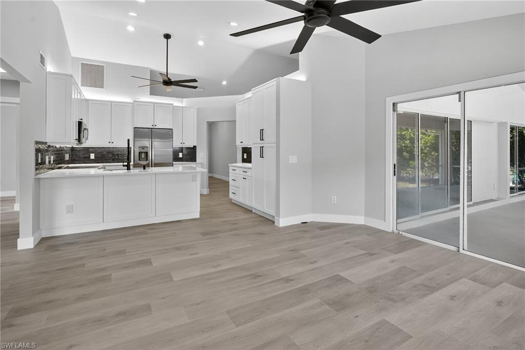 Completely remodeled 3 bedroom, 2 bath, 2 car garage home located on 1 plus acre lot. The home features luxury vinyl plank flooring throughout, with new two panel solid core doors with new Schlage hardware, and new interior and exterior paint, with updated fixtures. The kitchen, with new stainless steel GE kitchen appliances, and both bathrooms have been updated with Shaker style wood cabinets and Quartz countertops. A new well pump was installed in 2024 and new well equipment in 2022. A new shingle roof was installed in 2018. A new AC system with a 10 year manufacturer's warranty and a new hot water heater will be installed prior to closing. Included in the sale are 200+ mature palm trees.