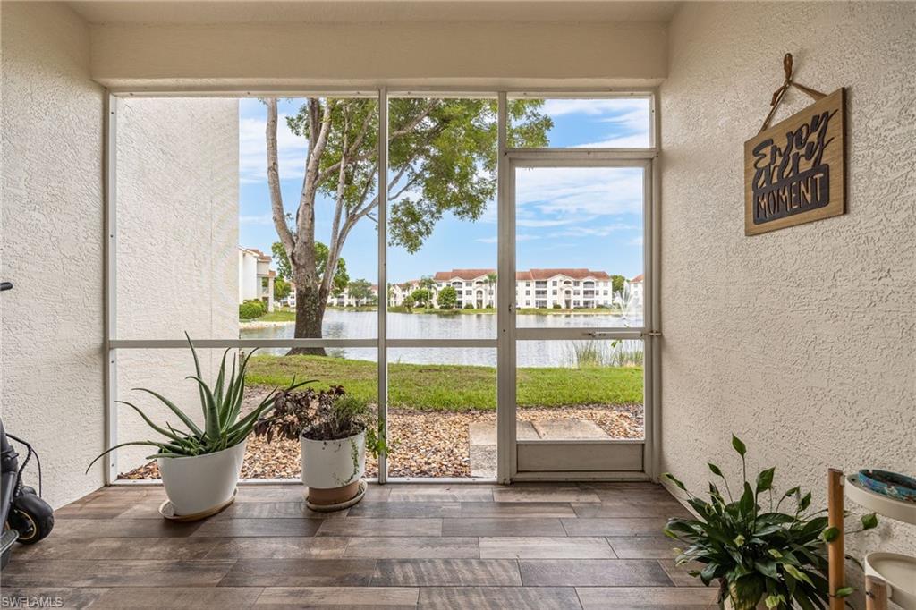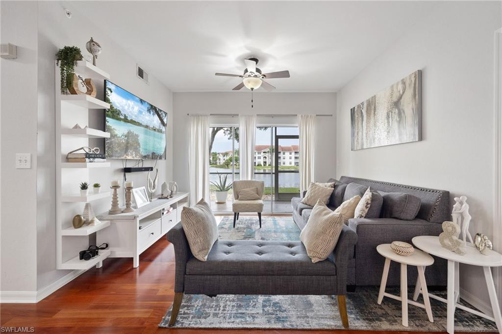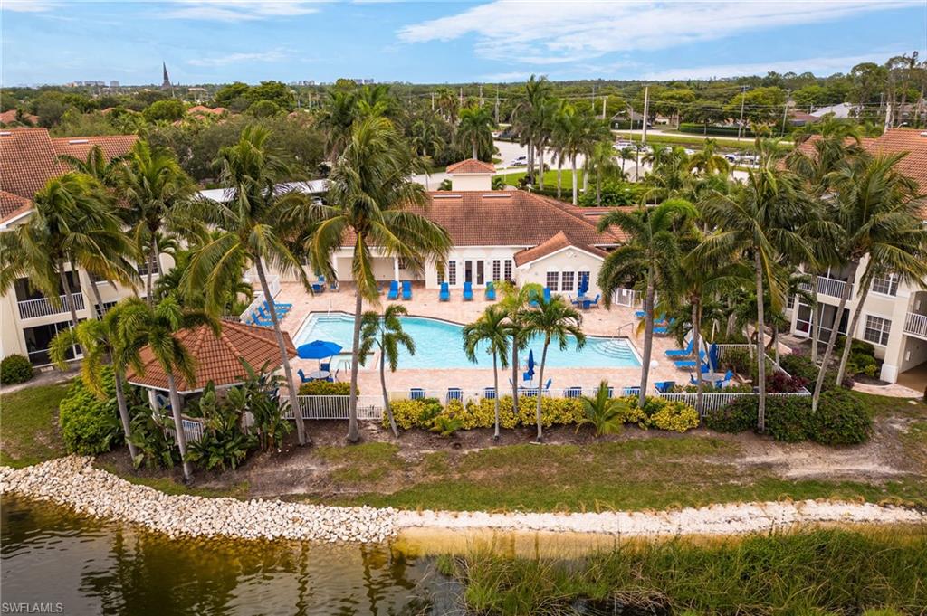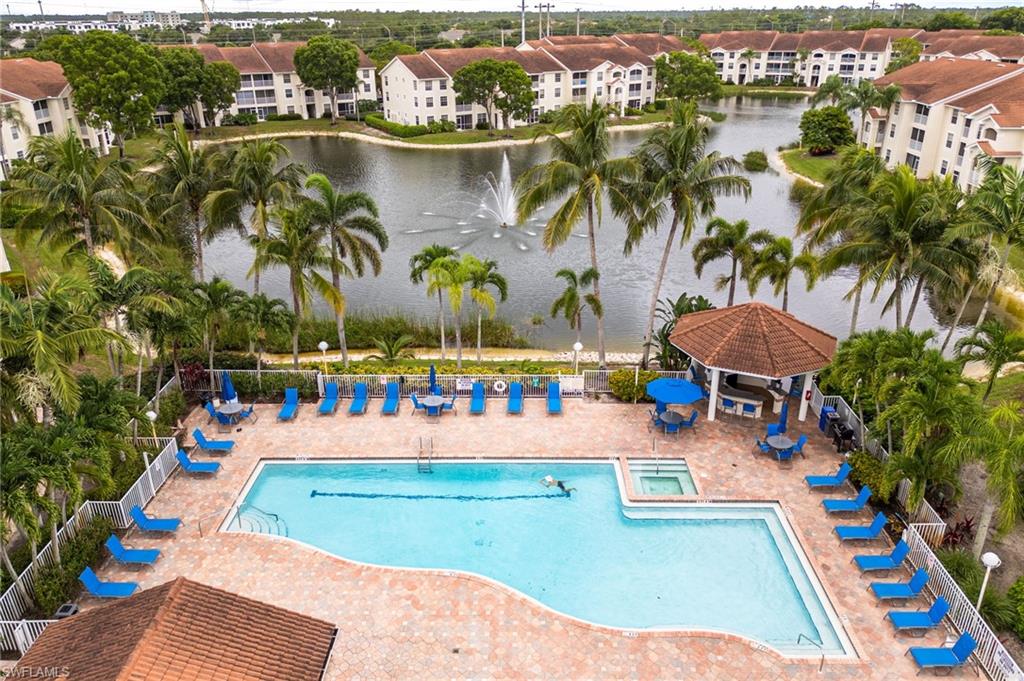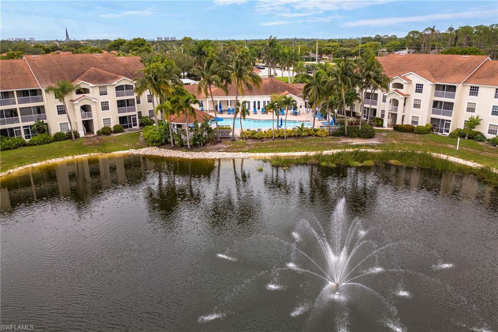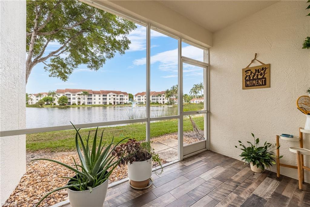 So Fresh and So Clean! Discover living in this beautifully maintained first-floor, no-stairs 2-bedroom, 2-bathroom condo in the sought-after gated community of Saint Croix. This inviting residence features a smart split-bedroom floor plan offering privacy and comfort, with a spacious primary suite complete with a walk-in closet and updated ensuite bathroom. Recent updates include a newer A/C unit, water heater, and renovated bathrooms. Enjoy solid surface flooring throughout, and relax on your private lanai overlooking serene lake views—a perfect spot for morning coffee or evening sunsets. Community also offers RV trailer and boat parking. The community boasts low condo fees and is ideally located just across the street from Seed to Table, with quick access to I-75, shopping, dining, and entertainment options. Residents enjoy resort-style amenities including a beautifully landscaped pool area with gazebo, clubhouse with full kitchen and library, fitness center, tennis/pickleball court, dog park, children's playground, on-site management, and evening security patrol. Additional perks include valet trash pickup, in-unit laundry, and plenty of parking. Unit includes reserved carport parking. With newer roofs, recently painted exteriors, and a prime location just 5 minutes to Vanderbilt Beach, 10 minutes to Mercato, and 20 minutes to RSW Airport, this is an exceptional opportunity for seasonal or full-time Florida living!