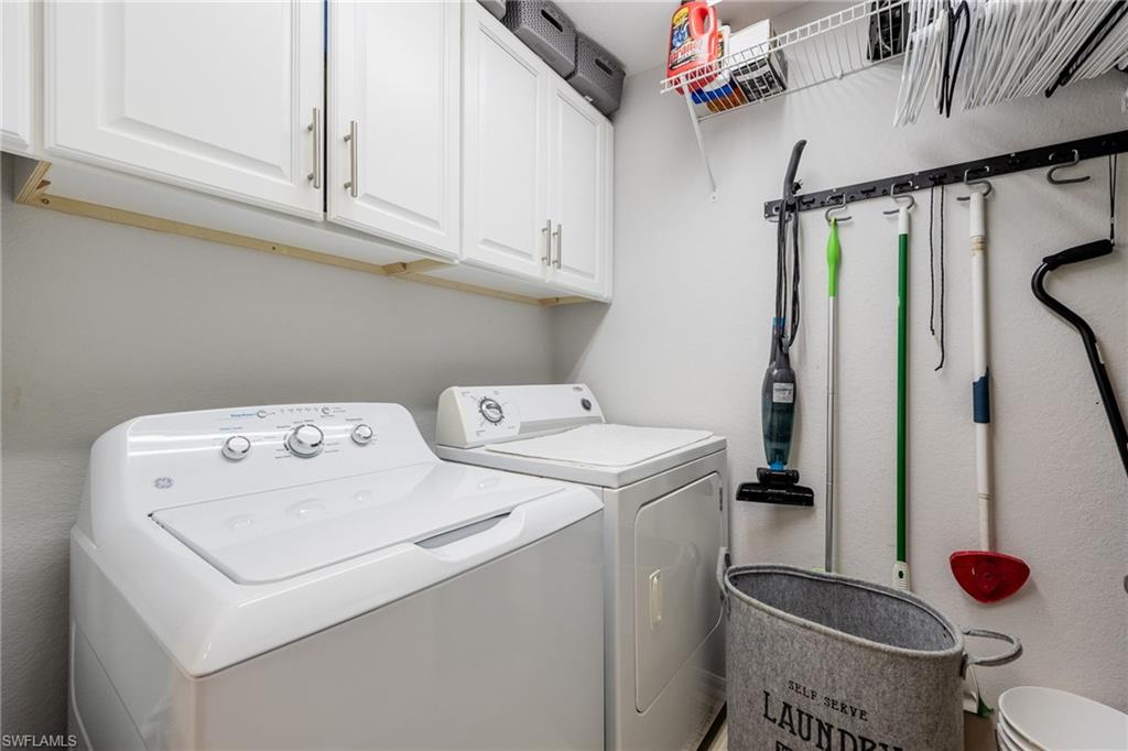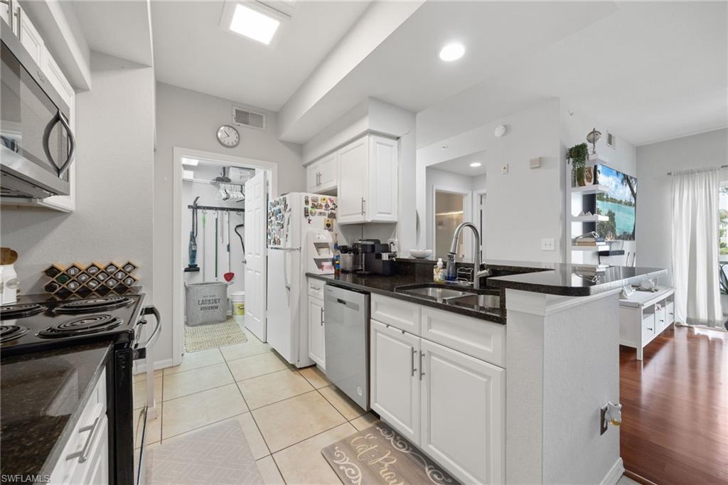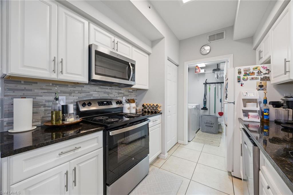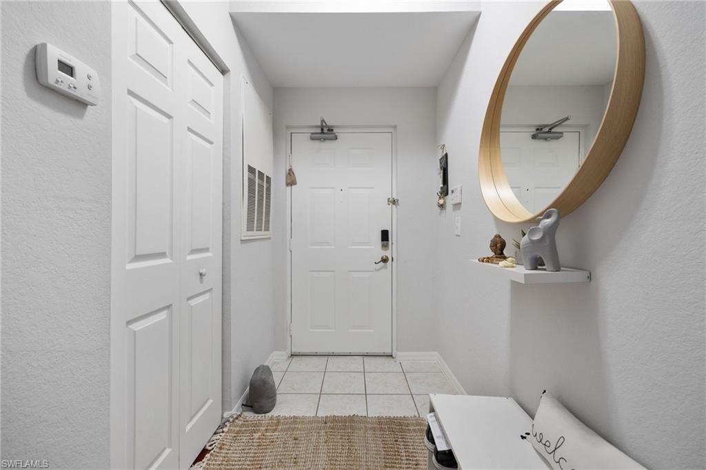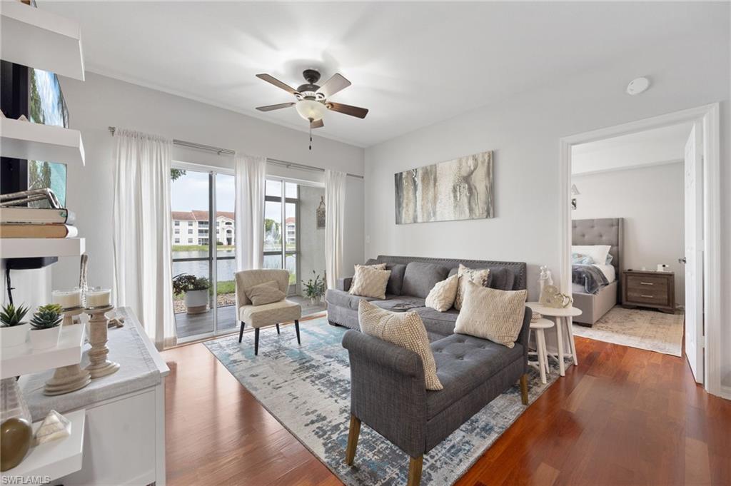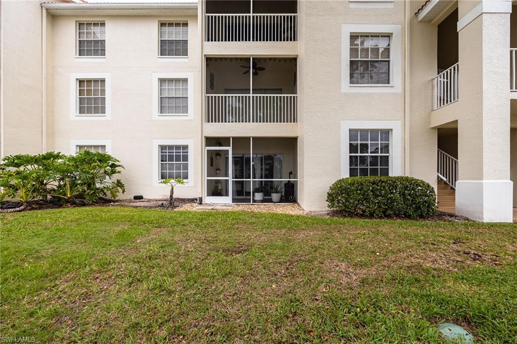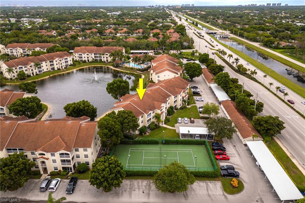 So Fresh and So Clean! Discover living in this beautifully maintained first-floor, no-stairs 2-bedroom, 2-bathroom condo in the sought-after gated community of Saint Croix. This inviting residence features a smart split-bedroom floor plan offering privacy and comfort, with a spacious primary suite complete with a walk-in closet and updated ensuite bathroom. Recent updates include a newer A/C unit, water heater, and renovated bathrooms. Enjoy solid surface flooring throughout, and relax on your private lanai overlooking serene lake views—a perfect spot for morning coffee or evening sunsets. Community also offers RV trailer and boat parking. The community boasts low condo fees and is ideally located just across the street from Seed to Table, with quick access to I-75, shopping, dining, and entertainment options. Residents enjoy resort-style amenities including a beautifully landscaped pool area with gazebo, clubhouse with full kitchen and library, fitness center, tennis/pickleball court, dog park, children's playground, on-site management, and evening security patrol. Additional perks include valet trash pickup, in-unit laundry, and plenty of parking. Unit includes reserved carport parking. With newer roofs, recently painted exteriors, and a prime location just 5 minutes to Vanderbilt Beach, 10 minutes to Mercato, and 20 minutes to RSW Airport, this is an exceptional opportunity for seasonal or full-time Florida living!