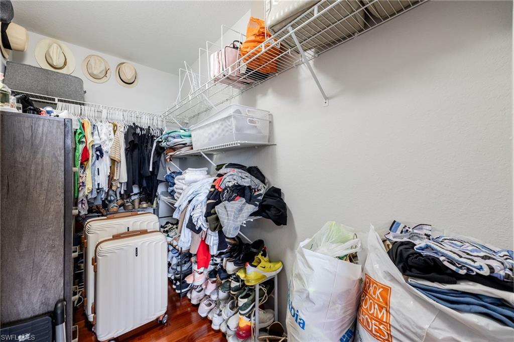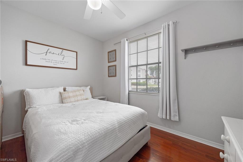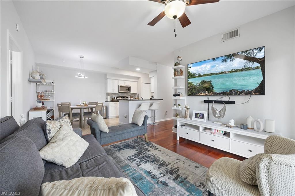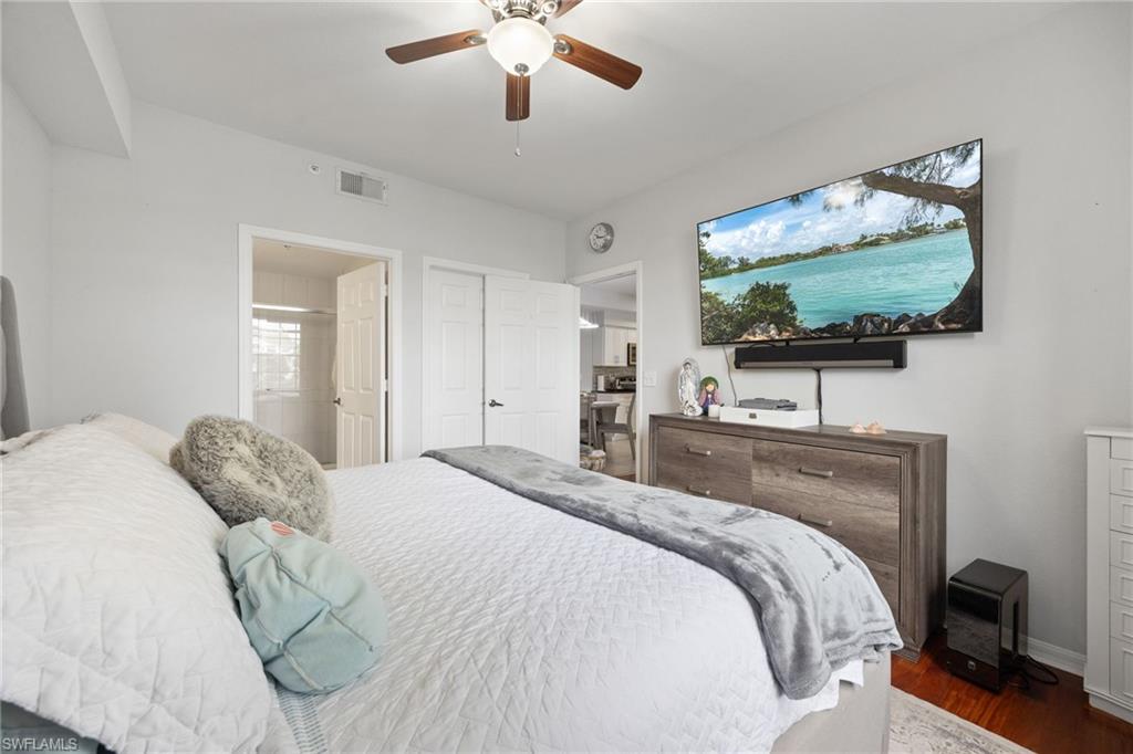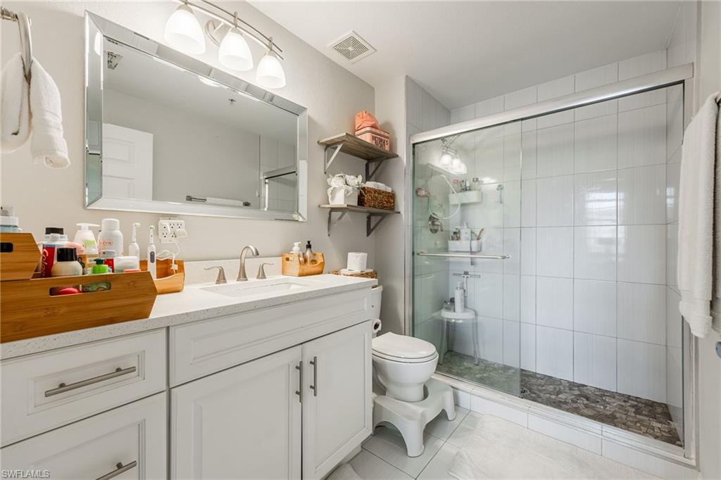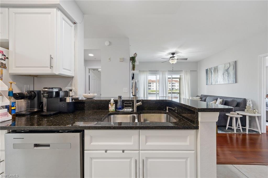 So Fresh and So Clean! Discover living in this beautifully maintained first-floor, no-stairs 2-bedroom, 2-bathroom condo in the sought-after gated community of Saint Croix. This inviting residence features a smart split-bedroom floor plan offering privacy and comfort, with a spacious primary suite complete with a walk-in closet and updated ensuite bathroom. Recent updates include a newer A/C unit, water heater, and renovated bathrooms. Enjoy solid surface flooring throughout, and relax on your private lanai overlooking serene lake views—a perfect spot for morning coffee or evening sunsets. Community also offers RV trailer and boat parking. The community boasts low condo fees and is ideally located just across the street from Seed to Table, with quick access to I-75, shopping, dining, and entertainment options. Residents enjoy resort-style amenities including a beautifully landscaped pool area with gazebo, clubhouse with full kitchen and library, fitness center, tennis/pickleball court, dog park, children's playground, on-site management, and evening security patrol. Additional perks include valet trash pickup, in-unit laundry, and plenty of parking. Unit includes reserved carport parking. With newer roofs, recently painted exteriors, and a prime location just 5 minutes to Vanderbilt Beach, 10 minutes to Mercato, and 20 minutes to RSW Airport, this is an exceptional opportunity for seasonal or full-time Florida living!