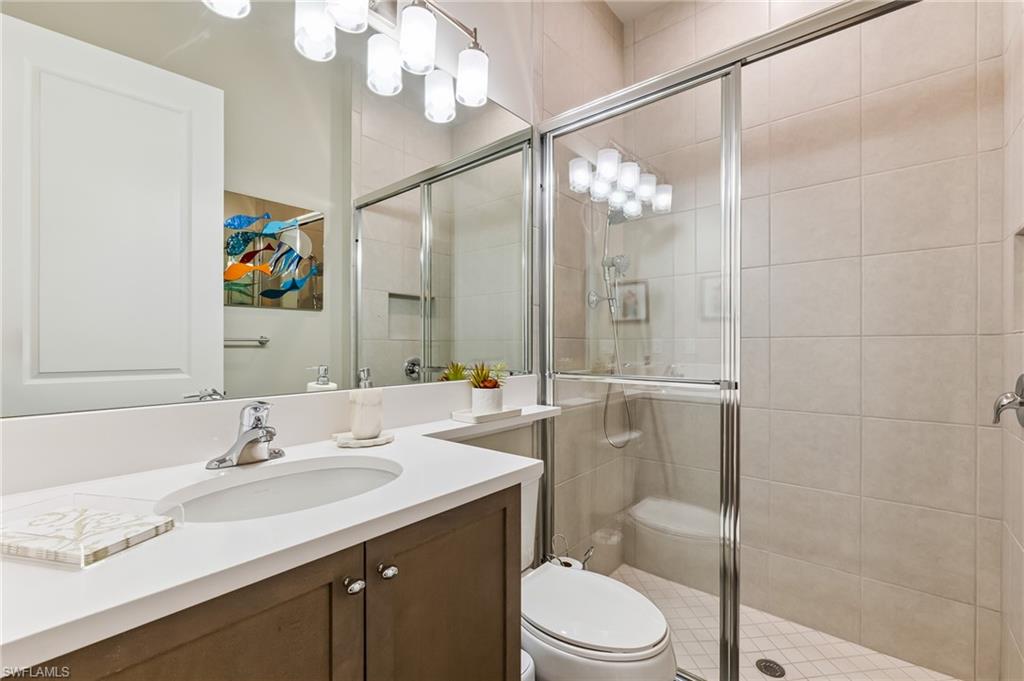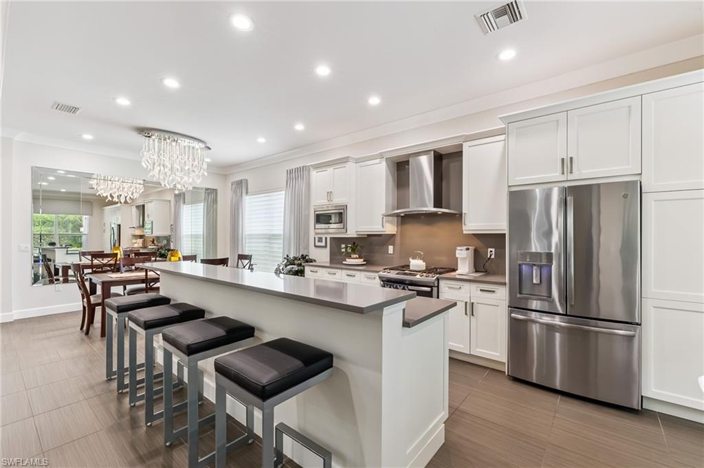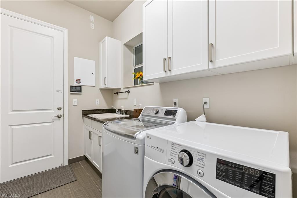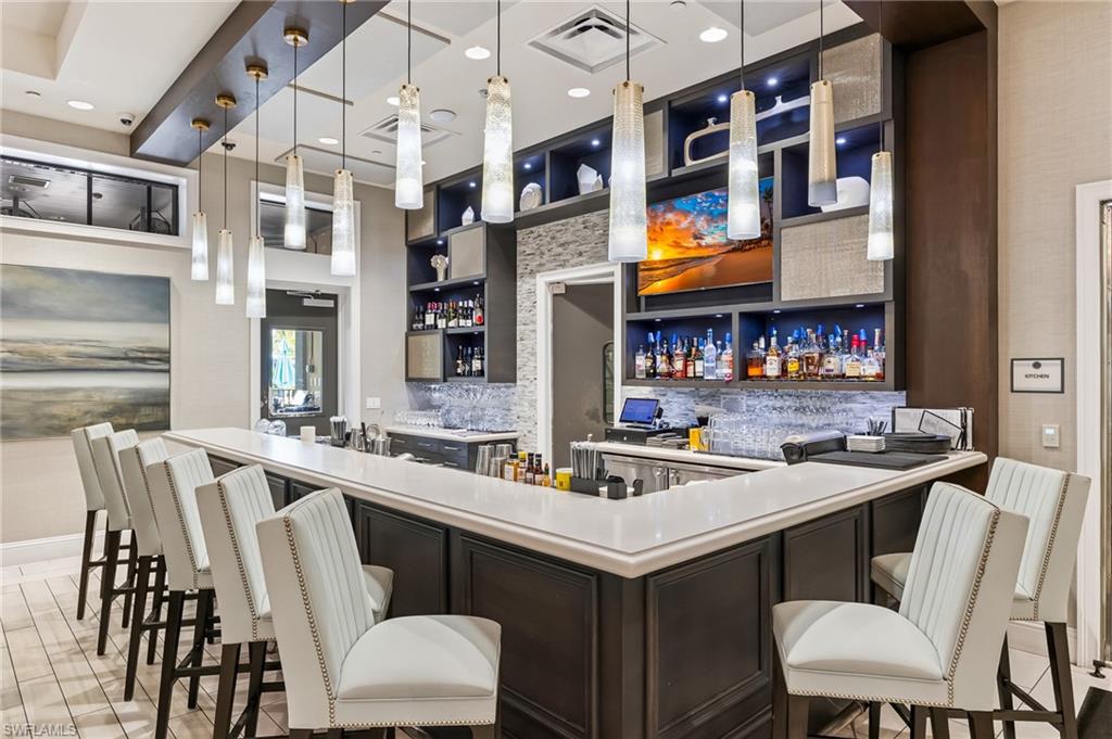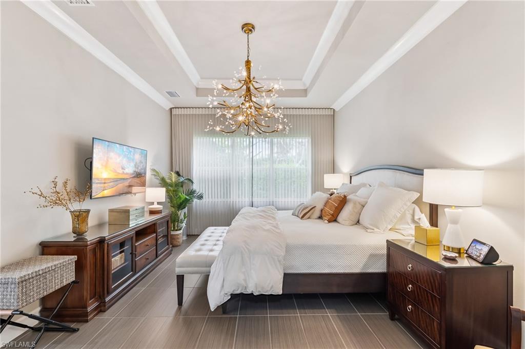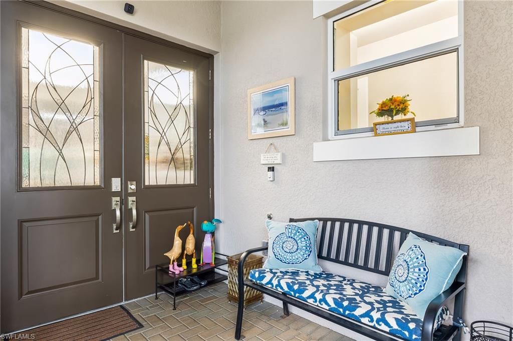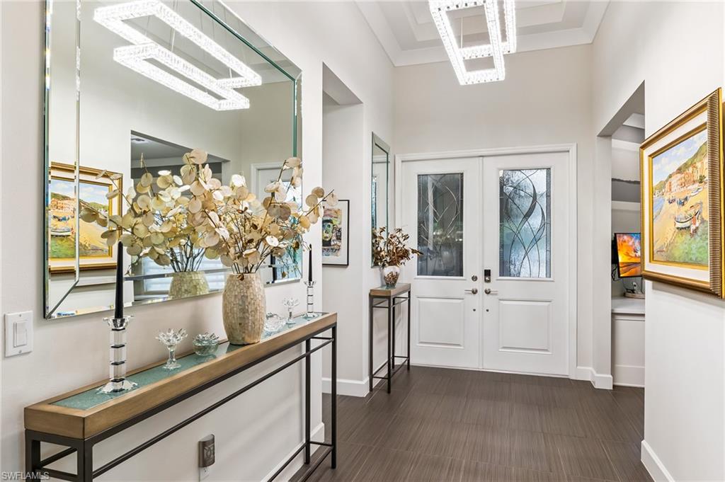 Is the active adult lifestyle calling you? This well-appointed move-in ready “Cabernet” floorplan is positioned on a lushly landscaped PRIVATE lot with no homes behind, and priced to sell. Built with storm protection in mind, the home includes hurricane-impact windows and doors as well as Storm Smart hurricane-rated motorized shades and a WHOLE-HOUSE NATURAL GAS GENERATOR (providing uninterrupted power and peace of mind). Throughout the home you will see embellishments of designer LED lighting, premium fixtures and ceiling fans, crown molding, and custom motorized window treatments, tankless hot water heater, whole-house water treatment system, and landscape lighting. The great room features a custom bar with cabinetry and a wine refrigerator, perfect for hosting guests. Offering nearly 2,200 square feet of refined living space, this residence features gorgeous porcelain tile flooring throughout (no carpet anywhere) creating a sleek, clean, and low-maintenance environment that enhances both style and comfort. The thoughtfully designed layout includes 3 spacious bedrooms, 2 full bathrooms, plus a gourmet kitchen with a breakfast bar and casual dining area, a light-filled great room, formal dining room, a versatile den or office, and a large laundry room. Storage is abundant, with custom closets, an oversized walk-in storage room complete with built-ins, and a 2.5 CAR AIR-CONDITIONED GARAGE to accommodate a golf cart or more storage. Enjoy both front and rear screened lanais for maximum outdoor living space. The kitchen is beautifully appointed with upgraded appliances, soft-close cabinetry, pull-out shelves, quartz countertops, boasting a perfect open layout ideal for entertaining. The expanded rear lanai is a private oasis, complete with panoramic no-see-um screening, travertine pavers, and a heated saltwater pool with spa jets at both ends and dual waterfalls, and pre-plumbed natural gas line for outdoor kitchen. Valencia Bonita’s resort-style amenities are unparalleled, featuring a spectacular 40,000-square-foot Clubhouse and Sports Center. Residents enjoy an indoor-outdoor restaurant and bar, a vibrant social hall for concerts and themed events, a luxurious spa, multiple pools including resort, lap, and resistance pools, private cabanas, a fully equipped and staffed fitness center, billiards lounge, card rooms, pottery and crafts studio, a professional cooking studio, and courts for tennis, pickleball, and bocce. With dog parks, a pro shop, dozens of fitness classes, a full calendar of resident clubs, and a full-time lifestyle director, this community offers a vibrant lifestyle that rivals the finest resorts. Ideally located just minutes from the white-sand beaches of Southwest Florida, RSW International Airport, and the cultural, dining, and shopping destinations of Bonita Springs, Naples, and Fort Myers.