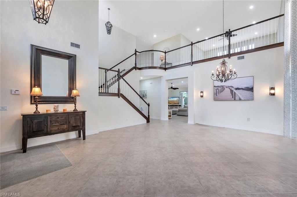STOP WAITING for interest rates to drop...Inquire about Interest Rate Buy Down! This STUNNING "Sapphire model" offers 4 Bedrooms, 3.5 Baths, Loft, 3 Car Garage. Through the custom double front doors, you are greeted by 20' ceilings in the living & dining rooms and a grande staircase. Primary ensuite on the main level, 3 guest bedrooms & a spacious loft on the second level. The cook's kitchen features THERMADOR DOUBLE WALL OVENS & cooktop, beverage cooler, double pantries, is open to the family room and out to the lanai. SMART HOME featuring smart lighting, locks, garage door, ceiling fans, thermostats, pool and spa heat, lights and bubbles.The lanai is a tropical oasis perfect for entertaining, featuring travertine decking, custom SALT WATER HEATED POOL with raised SPA, SUNSHELF & SUMMER KITCHEN. ROOF 2019, EXTERIOR PAINT 2020, HVAC 2019. "Club at Saturnia Grande" offers resort pool, hot tub, lap pool, kiddie pool, saunas, fitness center, billiards room, ball room, 4 tennis courts, basketball court, and more! LOW HOA FEE includes: 24 hour guard gated entrance, landscaping, irrigation, alarm monitoring, cable TV with HD/DVR, high speed fiber optic internet. A RATED SCHOOLS, located minutes to shopping, dining, beaches, I-75 access.