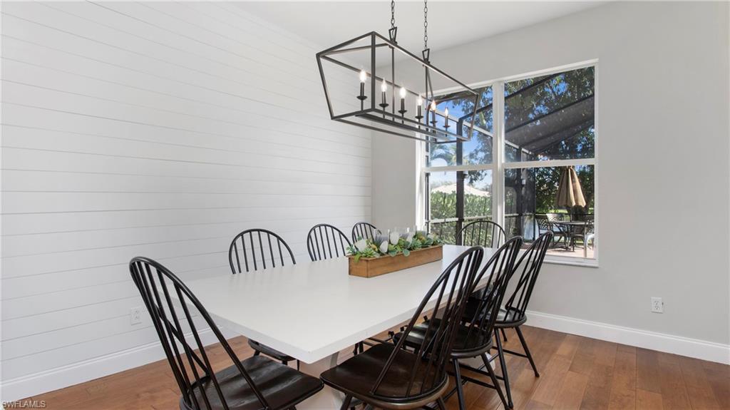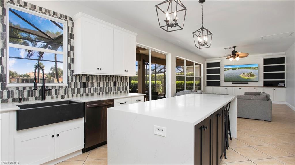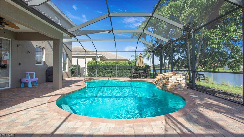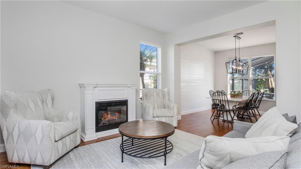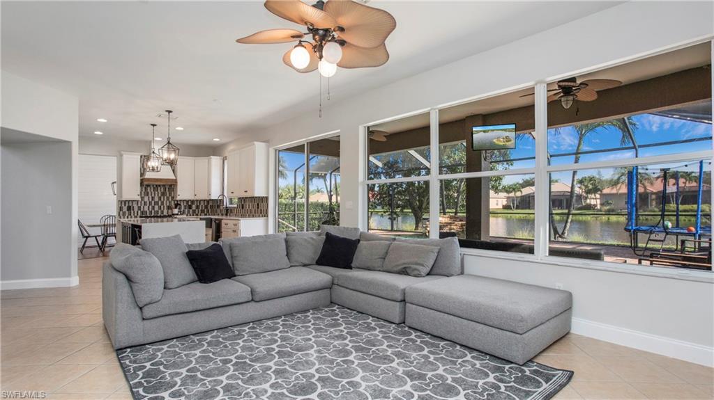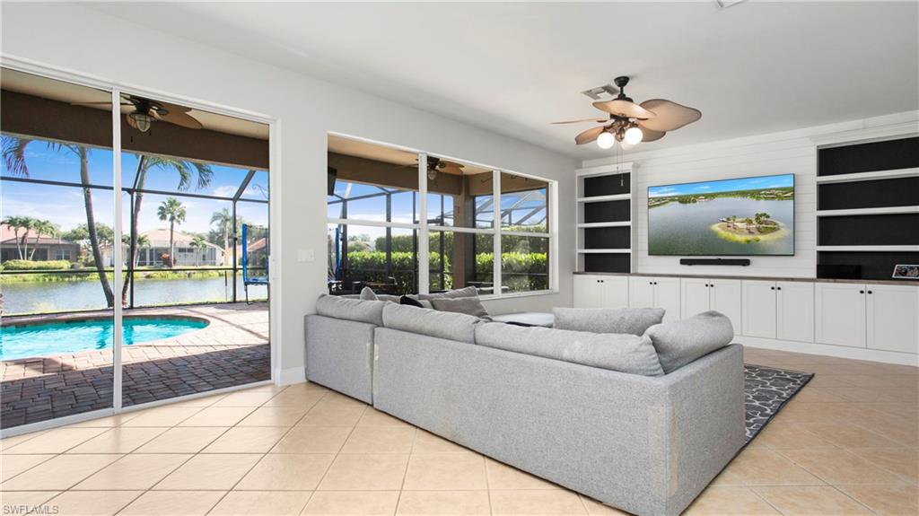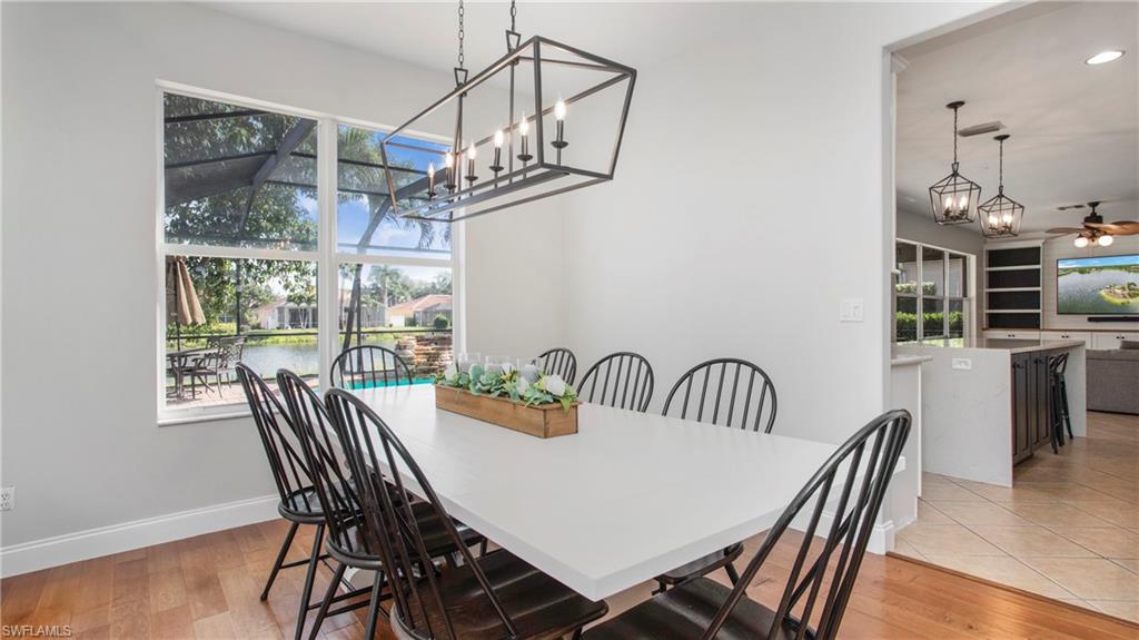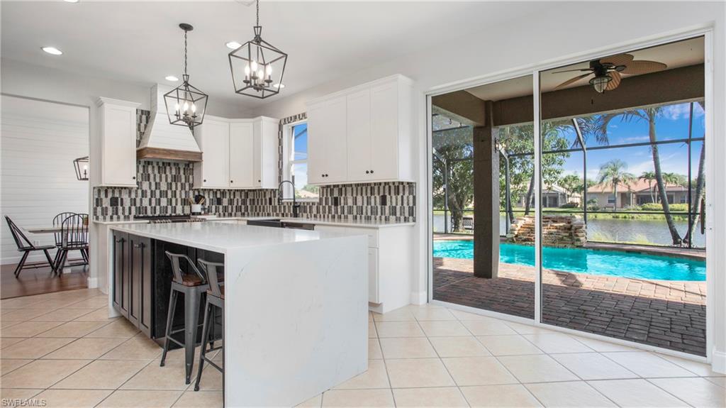 Welcome to Indigo Lakes – One of Naples’ Most Sought-After Communities Perfectly situated on a premium waterfront lot, this beautifully upgraded two-story home offers 2,640 square feet of refined living space where comfort, elegance, and functionality seamlessly come together. From the moment you arrive, the home makes a lasting impression with lush landscaping and thoughtful updates including a brand-new chef’s kitchen, fresh interior paint, shiplap accent walls, and a custom built-in entertainment center. Inside, the open and light-filled floor plan centers around the stunning remodeled kitchen, equipped with a large island, quartz countertops, stainless steel appliances, and ample custom cabinetry. Ideal for both everyday living and entertaining, the kitchen flows effortlessly into the spacious family room and breakfast nook—each space offering tranquil views of the sparkling pool and serene lake beyond. The main level also features a formal dining room and a flexible den or guest room—perfect for a home office, creative studio, or extra bedroom. Upstairs, the luxurious primary suite serves as a private retreat, complete with a spa-inspired en-suite bathroom featuring dual vanities, a soaking tub, walk-in shower, and a generous walk-in closet. Three additional bedrooms and a full guest bath provide comfortable accommodations for family or visitors. A spacious garage with ample storage completes the home. Step outside to your private outdoor oasis: a screened lanai with a resort-style pool and spa, all surrounded by mature landscaping that ensures peace and privacy. Indigo Lakes is known not only for its beauty but also for its community amenities and location. Residents enjoy access to a clubhouse, fitness center, resort-style pool, and low HOA fees. The neighborhood is located within a top-rated school district and offers private gated access to Oakridge Middle School. Don’t miss this rare opportunity to own one of Indigo Lakes’ premier homes—blending timeless design, luxury upgrades, and breathtaking water views.