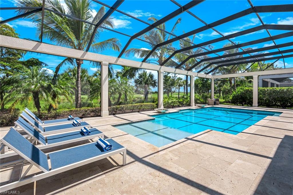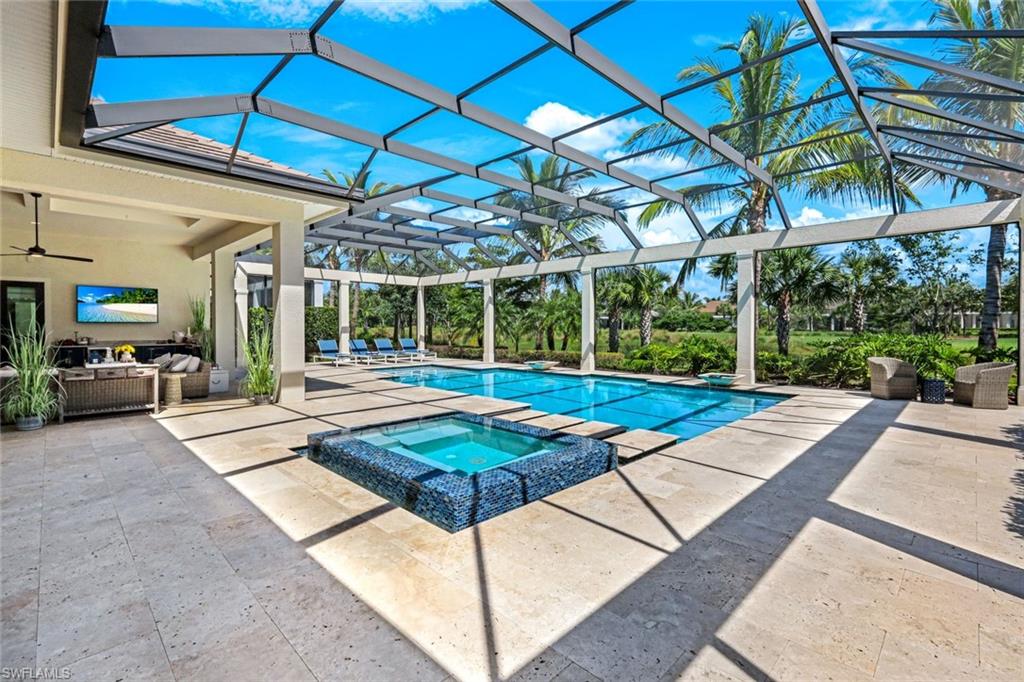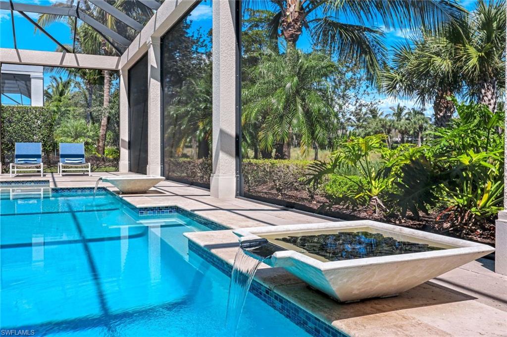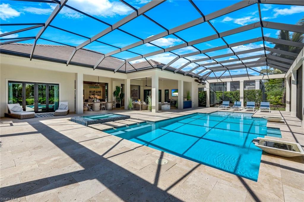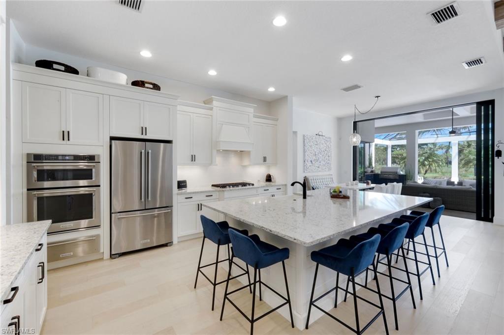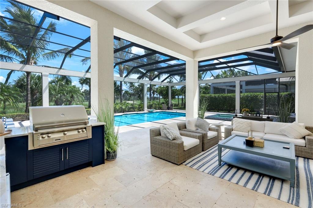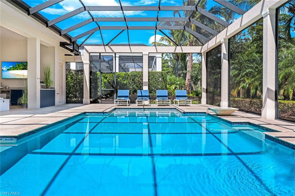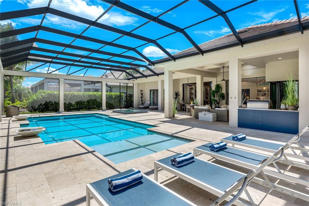 Welcome to Luxury Living in Marsh Cove at Fiddler’s Creek. Experience refined elegance and modern sophistication in this Stock-built masterpiece, located in the prestigious Marsh Cove neighborhood of Fiddler’s Creek. Boasting 4 bedrooms + den, 3 full baths, and a 3-car garage with epoxy flooring, this 3,136-square-foot home offers both comfort and impeccable style. Exquisite Outdoor Living. Step into your private backyard oasis, where sweeping golf course and tranquil pond views set the stage for relaxation and entertainment. The extended lanai features: Travertine tile flooring, Heated pool & spa with Silver Pearl Pebble interior finish, Sunshelf with umbrella holder, Pebble Tec water bowls (Carrara natural finish), Rainbow in-line chlorinator, 400,000 BTU natural gas heater, Pentair IntelliTouch pool & spa control system & LED accent lighting. Enjoy Florida’s outdoor lifestyle year-round with the fully equipped summer kitchen, including a built-in alfresco grill and refrigerator. High-End Interior Finishes. From the moment you enter through the striking 10' x 6' fusion river rock front door with clear glass, you’re greeted with luxury. The open-concept living area features: Five cypress wood ceiling beams, Smooth drywall finishes with custom shiplap cutouts, European wide-plank white oak hardwood floors, Smart home security system, LED landscape & exterior lighting. The gourmet kitchen is a chef’s dream, showcasing Montclair white quartz countertops, custom backsplash, stainless steel appliances, and ample white soft-close cabinetry. Elegant Private Retreats The primary suite is a serene escape, complete with bronze-framed doors to the lanai and a spa-like bathroom adorned with Calacatta Botanica quartz countertops. Each guest bathroom is uniquely finished with: Iced White quartz, Merengo quartz (pool bath), Summer Wheat granite, & White Carrara marble (laundry room). Additional highlights include: Solid-core door upgrade in the den, Arctic Ivory Porter Ranch carpeting in all bedrooms, Natural gas connections for the water heater, dryer, kitchen cooktop, pool heater, and outdoor grill. 22KW Generac generator (installed 2021) with 200-amp automatic transfer switch. World-Class Community Amenities. Fiddler’s Creek is a 5-star, amenity-rich community, offering: Two resort-style pools, Two on-site restaurants, 54,000 sq. ft. clubhouse & spa, State-of-the-art fitness center, Pickleball, tennis, bocce courts, Year-round social calendar. Private beach club and marina memberships available – and no waitlist for golf membership! Prime Location! Ideally situated just minutes from the white-sand beaches of Marco Island and the charm of downtown Olde Naples, including: 5th Avenue South, 3rd Street South, Bayfront & Tin City This is more than a home, it’s a lifestyle. Schedule your private showing today!