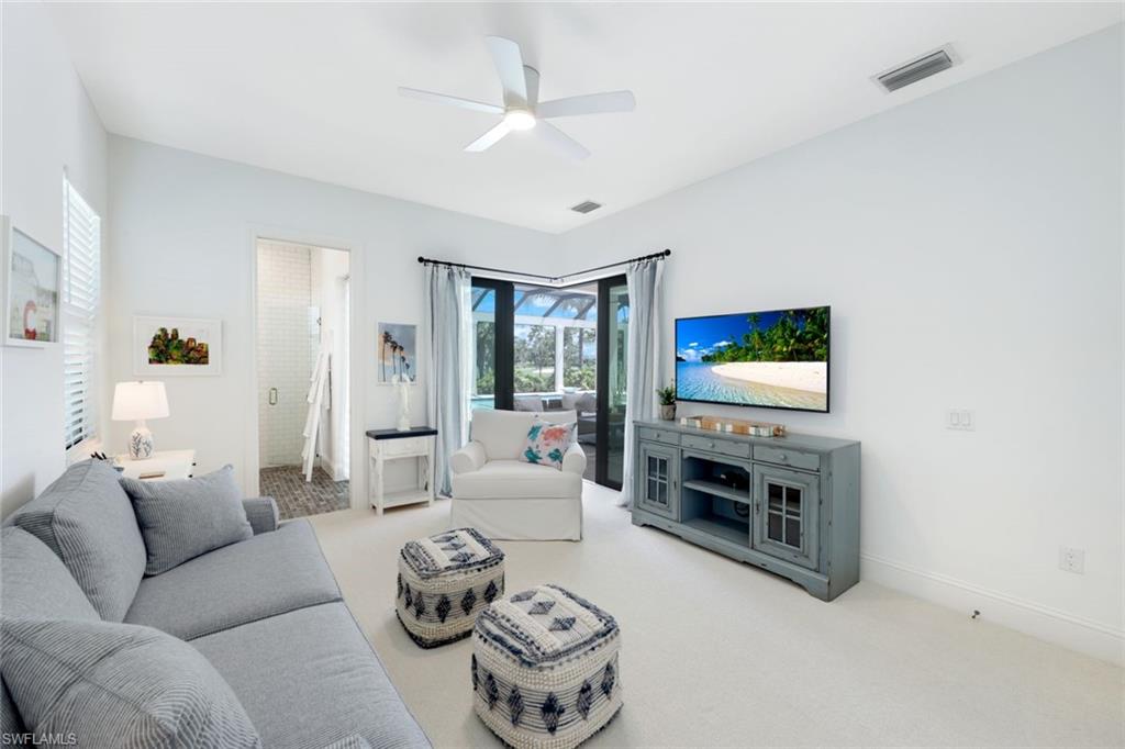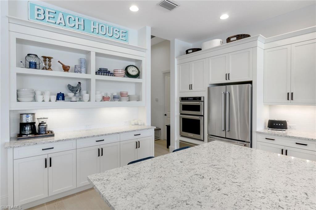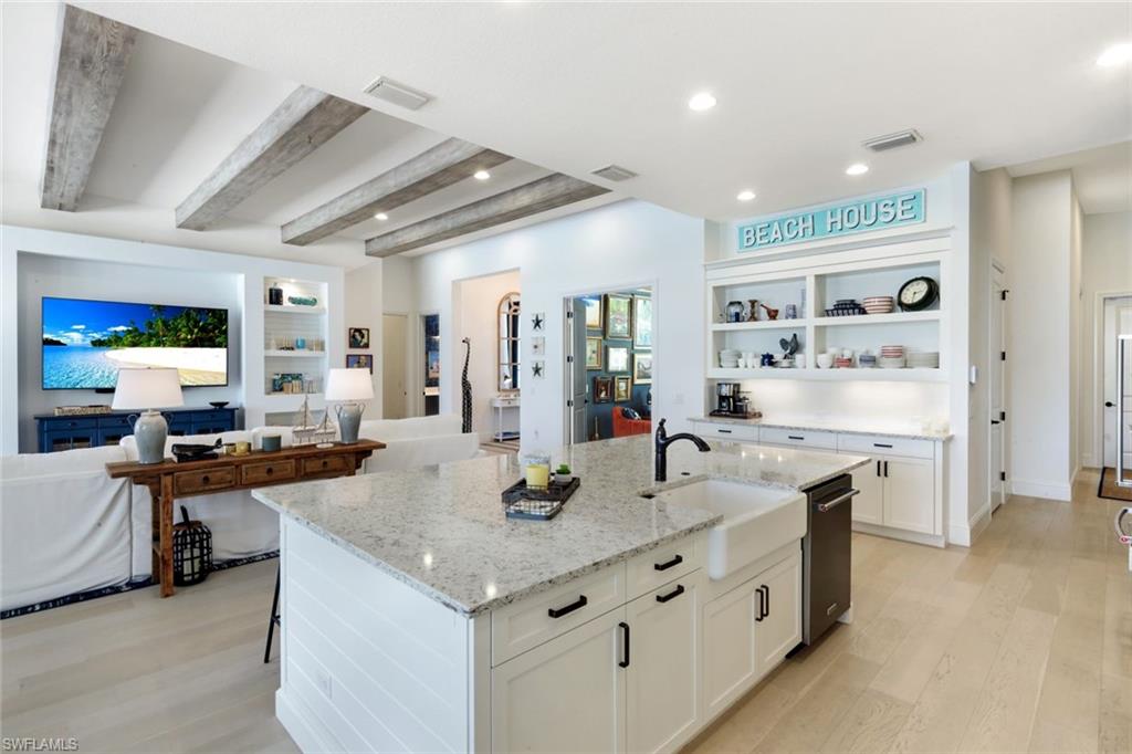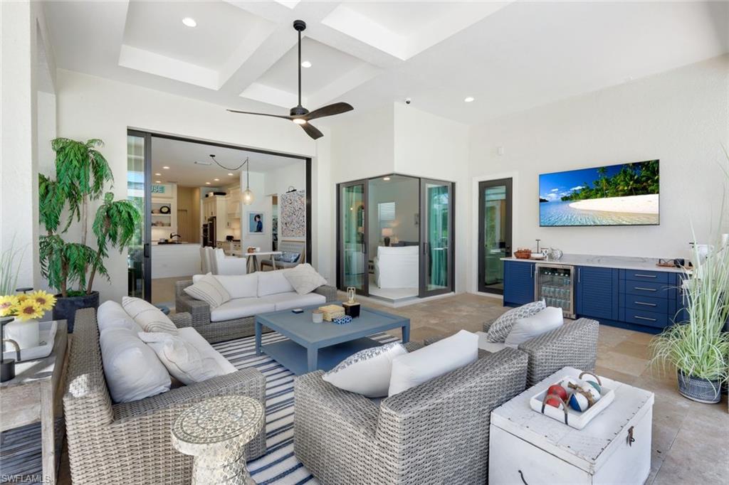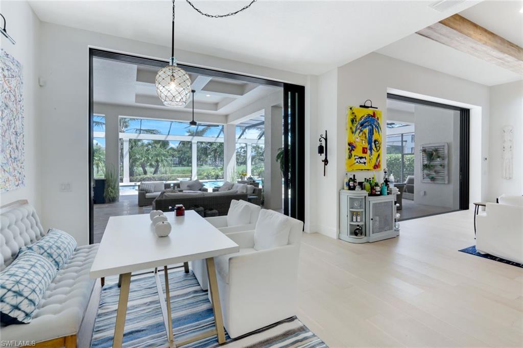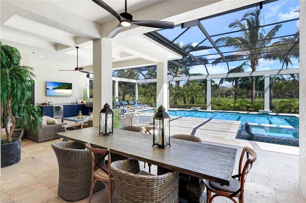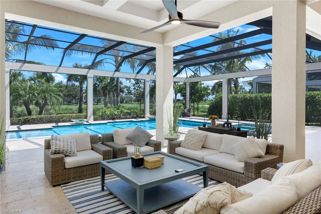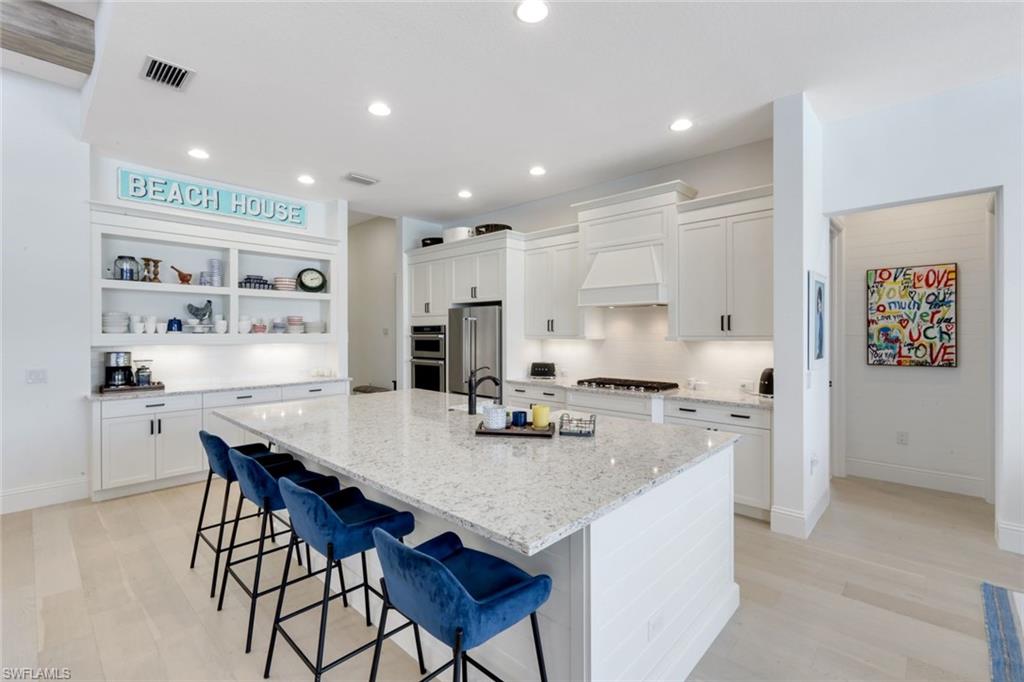 Welcome to Luxury Living in Marsh Cove at Fiddler’s Creek. Experience refined elegance and modern sophistication in this Stock-built masterpiece, located in the prestigious Marsh Cove neighborhood of Fiddler’s Creek. Boasting 4 bedrooms + den, 3 full baths, and a 3-car garage with epoxy flooring, this 3,136-square-foot home offers both comfort and impeccable style. Exquisite Outdoor Living. Step into your private backyard oasis, where sweeping golf course and tranquil pond views set the stage for relaxation and entertainment. The extended lanai features: Travertine tile flooring, Heated pool & spa with Silver Pearl Pebble interior finish, Sunshelf with umbrella holder, Pebble Tec water bowls (Carrara natural finish), Rainbow in-line chlorinator, 400,000 BTU natural gas heater, Pentair IntelliTouch pool & spa control system & LED accent lighting. Enjoy Florida’s outdoor lifestyle year-round with the fully equipped summer kitchen, including a built-in alfresco grill and refrigerator. High-End Interior Finishes. From the moment you enter through the striking 10' x 6' fusion river rock front door with clear glass, you’re greeted with luxury. The open-concept living area features: Five cypress wood ceiling beams, Smooth drywall finishes with custom shiplap cutouts, European wide-plank white oak hardwood floors, Smart home security system, LED landscape & exterior lighting. The gourmet kitchen is a chef’s dream, showcasing Montclair white quartz countertops, custom backsplash, stainless steel appliances, and ample white soft-close cabinetry. Elegant Private Retreats The primary suite is a serene escape, complete with bronze-framed doors to the lanai and a spa-like bathroom adorned with Calacatta Botanica quartz countertops. Each guest bathroom is uniquely finished with: Iced White quartz, Merengo quartz (pool bath), Summer Wheat granite, & White Carrara marble (laundry room). Additional highlights include: Solid-core door upgrade in the den, Arctic Ivory Porter Ranch carpeting in all bedrooms, Natural gas connections for the water heater, dryer, kitchen cooktop, pool heater, and outdoor grill. 22KW Generac generator (installed 2021) with 200-amp automatic transfer switch. World-Class Community Amenities. Fiddler’s Creek is a 5-star, amenity-rich community, offering: Two resort-style pools, Two on-site restaurants, 54,000 sq. ft. clubhouse & spa, State-of-the-art fitness center, Pickleball, tennis, bocce courts, Year-round social calendar. Private beach club and marina memberships available – and no waitlist for golf membership! Prime Location! Ideally situated just minutes from the white-sand beaches of Marco Island and the charm of downtown Olde Naples, including: 5th Avenue South, 3rd Street South, Bayfront & Tin City This is more than a home, it’s a lifestyle. Schedule your private showing today!