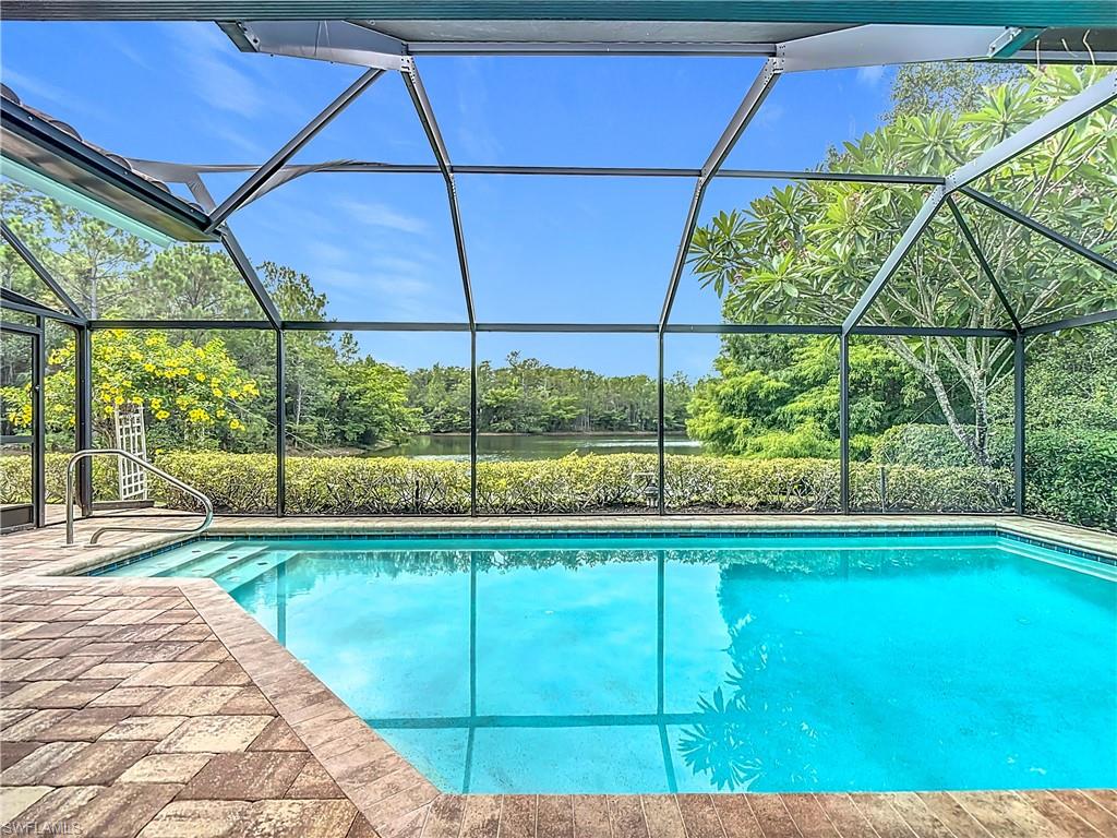 New Price, Rare Opportunity! With an exceptional water view, this one-of-a-kind single-family home is in the sought-after community of Mill Run. Built on Lot #1, this home uniquely benefits from one of the best water views a gated community in Naples has to offer in addition to the privacy afforded with neighboring a preserve lot that will never be built on. This Mediterranean inspired home features a spacious open floorplan which bathes the interior with natural sunlight maximizing this home’s highly desired southern exposure and creating a warm, inviting atmosphere that epitomizes Florida living. Expertly crafted, this residence offers a spacious Great room and Living room with tall vaulted ceilings and large pocket sliders that enhances the sense of space and luxury. Primary features of this beautiful home are: split bedroom floorplan, a master bedroom with cove vaulted ceilings and pocket sliders that open to the screened-in lanai with a solar heated pool, a Jack and Jill walk-in closet, a generously spacious master bathroom for a spa-like experience, hurricane windows as well as manual and automated hurricane shutters, exquisite manicured landscaping, and much more! Mill Run residents enjoy a beautifully landscaped gated community with their own private community pool, half-court basketball, tennis and pickleball courts, as well as a secure dog park and playground. Mill Run community is conveniently located only minutes from the local public library, A-rated schools, world-class shopping, a few of the best venues Naples has to offer such as The Mercato and Waterside Shops, as well as some of Naples’ famous white-sand beaches like Seagate beach, Clam Pass beach & boardwalk, and the popular Vanderbilt beach.