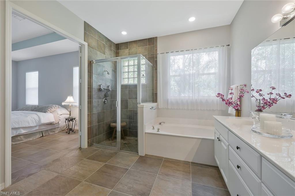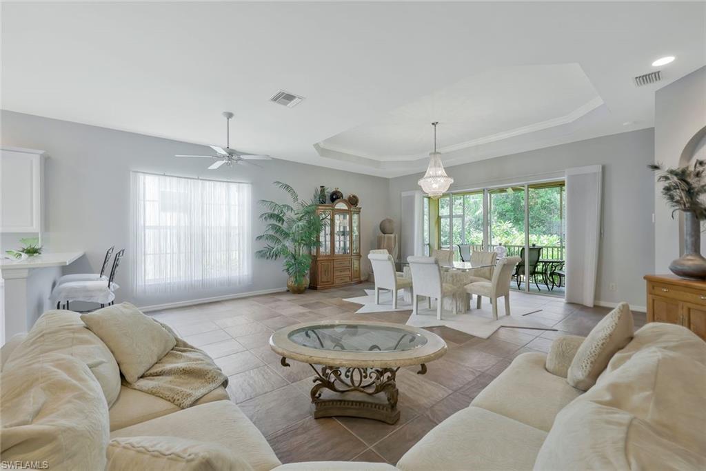 A HIDDEN GEM in the HEART of Bonita Springs!!! Located behind the gates of the highly sought-after community of Brendan Cove, this beautifully maintained home offers over 2,000 square feet of bright, inviting living space, featuring 3 spacious bedrooms, 2 full bathrooms, and an attached 2-car garage with convenient built-in overhead storage. Step inside your Grand Foyer, complete with volume ceilings and eloquent chandelier. Continuous tile flooring runs throughout the main living areas and out to the lanai, creating a seamless and elegant flow. Oversized windows bathe the home with natural light, while tray ceilings in both the living room and primary bedroom add a touch of architectural sophistication. The light and bright kitchen is a chef’s dream and perfect for entertaining—complete with a center island, 42” upper cabinets, ample counter space, and a generous bar area ideal for guests and/or casual dining. The sizable primary bedroom is conveniently located on the main level, with an ensuite that includes both a walk-in shower and oversized soaking tub. Sip your morning coffee or evening cocktails while enjoying peaceful preserve views from your private lanai, where a brand-new natural wood staircase leads to a tranquil backyard retreat. With lawn maintenance included in your dues, the community is ideal for full-time residents and seasonal owners alike. Other conveniences include a community pool just steps from your front door and the Brendan Cove Marina is just down the street! With boat docks available for rent, this home is perfectly situated for boating enthusiasts and those seeking a laid-back, coastal lifestyle. Nestled just off Terry Street a stones throw from US-41, the location offers unbeatable convenience: just 10 minutes to Bonita Beach and Doc’s Beach House, five minutes to historic downtown Bonita Springs, 15 minutes to RSW Airport, one mile to The Promenade at Bonita Bay and much, much more! Don’t miss your opportunity to live in one of Bonita Springs’ most desirable private communities—schedule your private showing today!