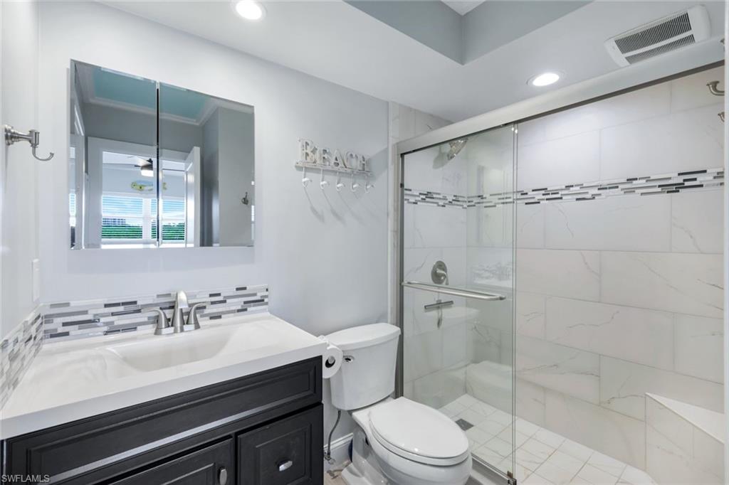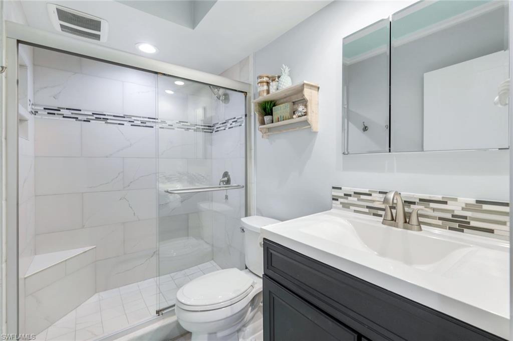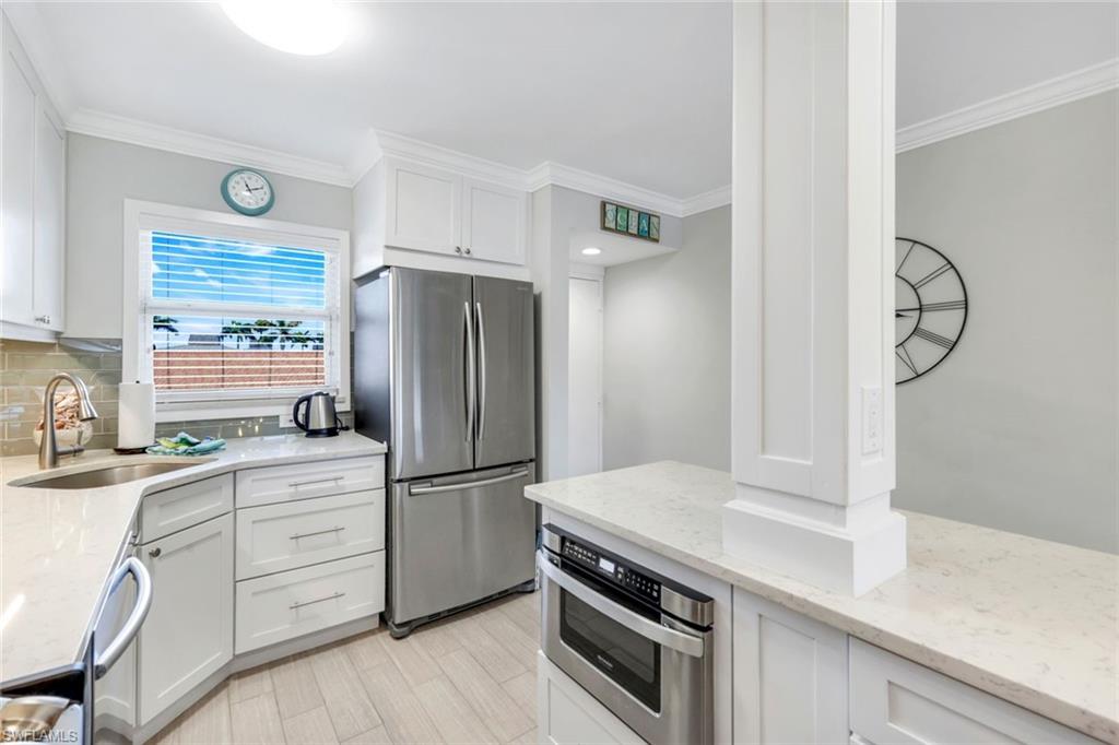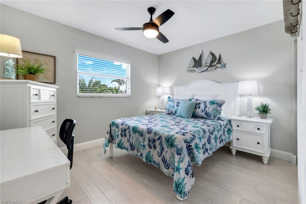 Turn-key and exquisitely furnished, this completely remodeled waterfront condo offers a rare opportunity to own in Old Marco where fishing is excellent, one of Marco Island's most charming neighborhoods. Walk right up a flight of steps or take the elevator to the end unit on the second floor of a gated community, it showcases panoramic western water views, nightly sunsets, and abundant wildlife. Included in the sale is a deeded Boat Slip #3, for vessels up to 30 feet—with direct Gulf access, and no bridges. This is truly a boater's dream and a rare blend of coastal luxury and lifestyle convenience. The residence was tastefully updated and beautifully maintained, featuring wood-look tile flooring throughout, impact-rated windows and doors, solid wood interior doors, and an electric storm shutter on the lanai. The open style kitchen offers granite countertops, custom cabinetry, and newer stainless appliances, while both bathrooms have been reimagined with timeless finishes and elegant touches. From the bedroom and living areas, step onto the private lanai to take in glowing sunsets and tranquil water vistas. A fantastic investment or personal retreat, this residence offers great income potential and the perfect setting for seasonal enjoyment. Community amenities include elevator access, a heated pool, game tables, fishing pier, private boat launch, clubhouse, library, BBQ and picnic areas, bike storage, and a car wash station. With the boat slip included and nothing left to do, this is one of the island's most exceptional waterfront values.