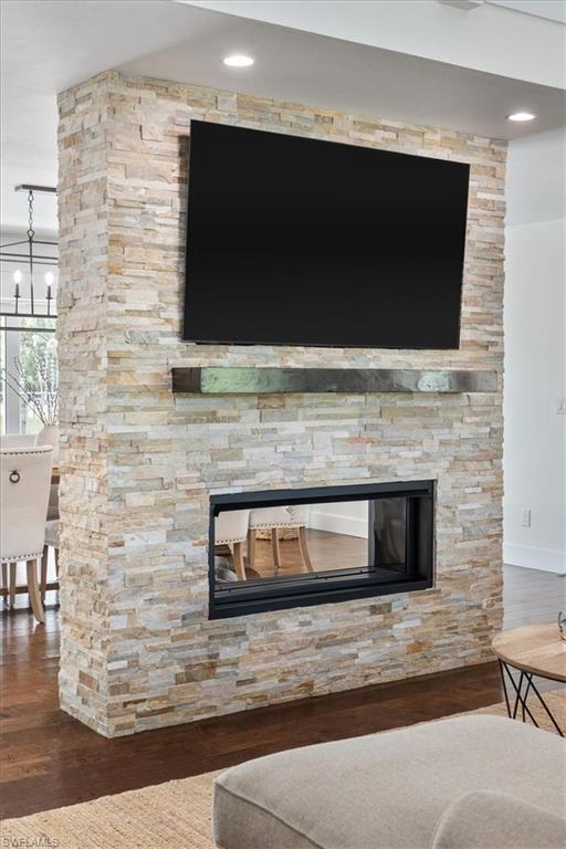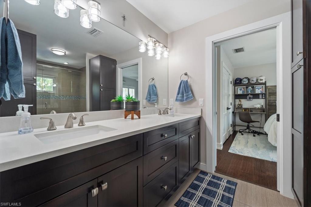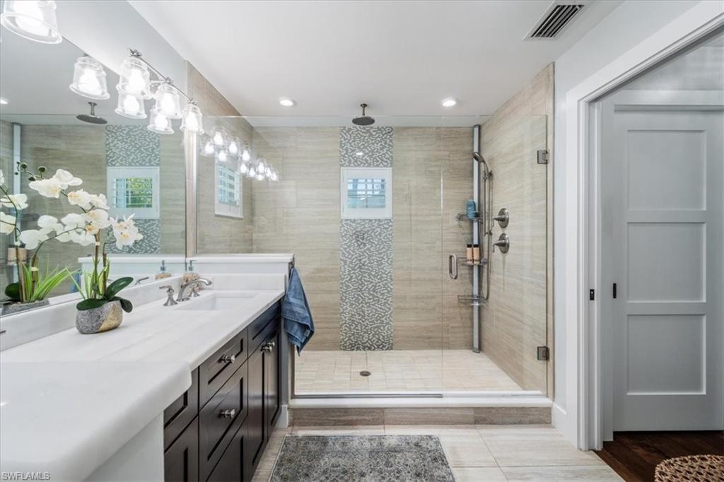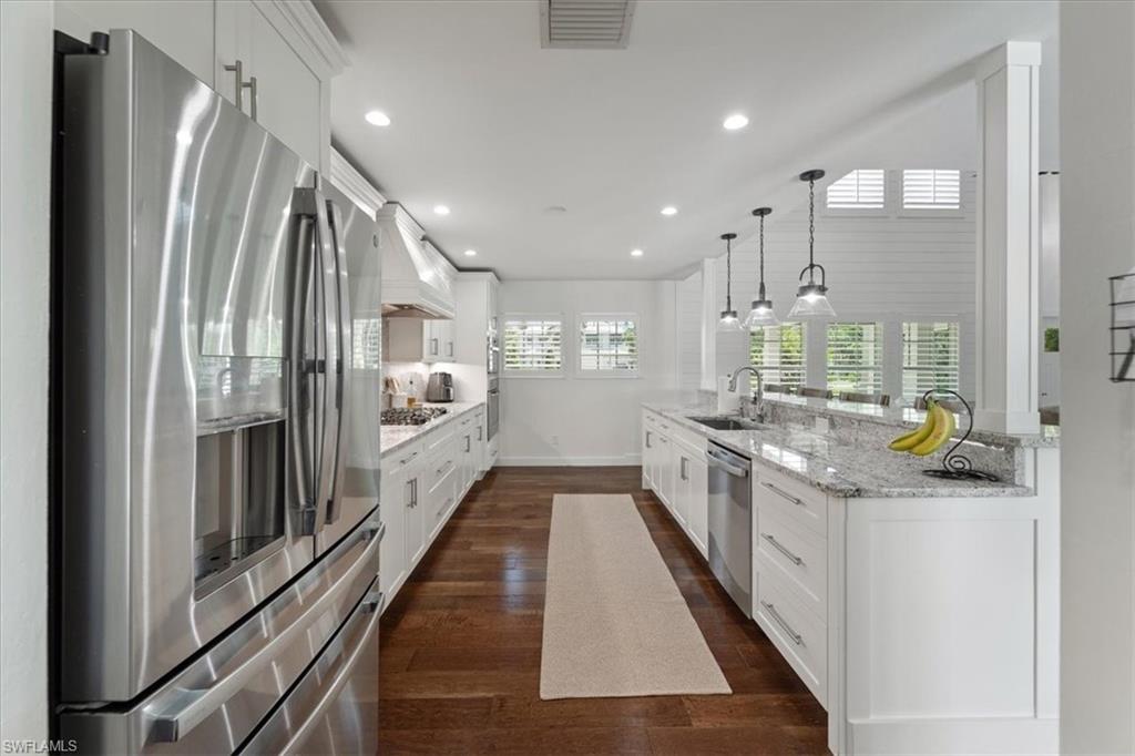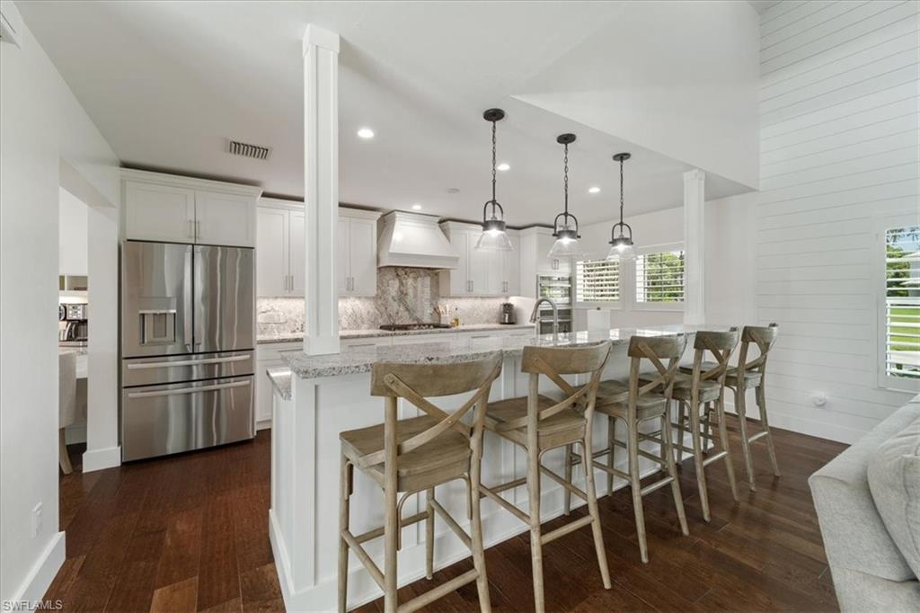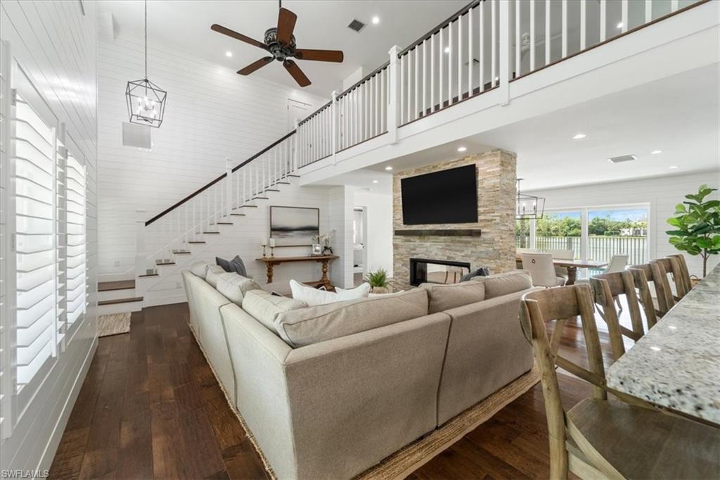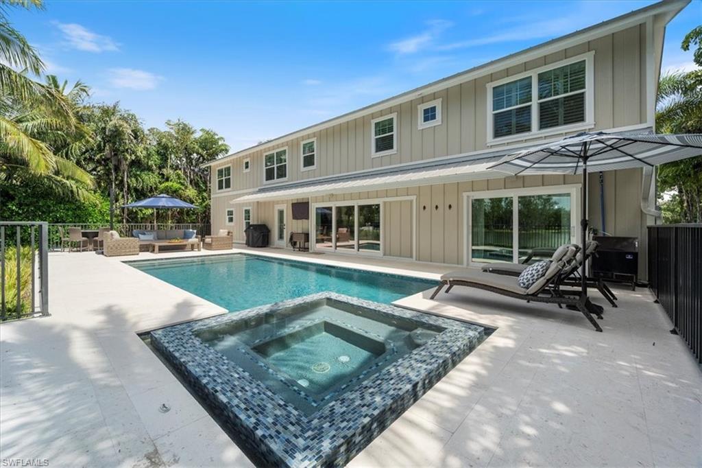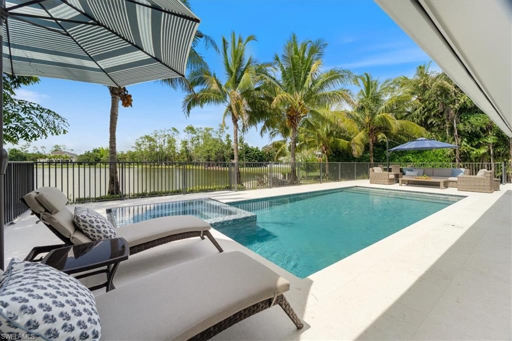 Welcome to 2761 Ardisia Lane, an exquisite lakefront sanctuary nestled in the charming and centrally located neighborhood of Tall Pines, Naples, FL. This stunning 4-bedroom, 3.5-bathroom residence, rebuilt from the ground up in 2014, offers modern luxury and comfort on an oversized private lot. Step inside this custom-designed home and be captivated by its elegant features and thoughtful layout. The living and formal dining room are artfully separated by a custom gas double-sided stone fireplace, creating warmth and ambiance. Your chef's kitchen is a masterpiece with a gas cooktop, double oven, and gleaming granite countertops, complemented by high-end stainless steel appliances. The main floor boasts a spacious master suite with dual walk-in closets, providing a serene retreat while the adjoining master bath offers luxury and relaxation. A mud room and expansive laundry room add to the home's functionality and charm. Ascend to the second floor to find a large suite with an en-suite bath, along with two additional bedrooms featuring a Jack and Jill bathroom. The airy game room/loft area invites a space for entertainment. A unique walk-in attic offers an additional 431 square feet of accessible storage space. As you make your way outside, you'll be delighted with the lakefront view complete with a refreshing pool and a relaxing hot tub. Sit outside on cool nights by your outdoor firepit. Whether you're hosting a weekend barbecue or enjoying a quiet evening under the stars, this outdoor oasis is sure to be a favorite gathering spot.