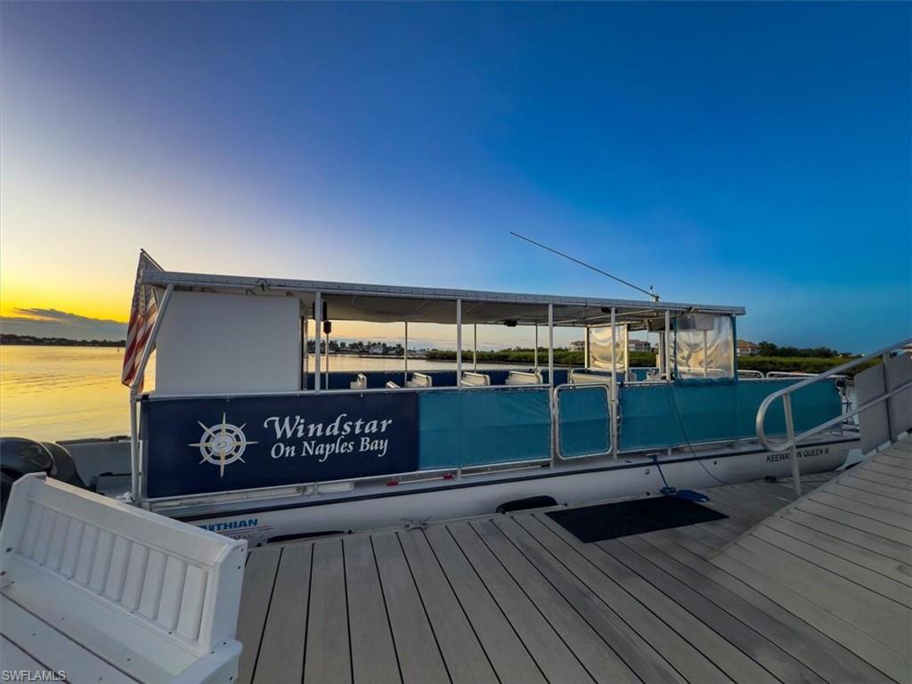 BEST VIEWS in COMPASS POINT SOUTH in the sought-after community of Windstar on Naples Bay! WESTERN EXPOSURE with breath taking Naples Sunsets, overlooking the 17th fairway of Windstar’s private GOLF course. This beautifully designed, FURNISHED & TURNKEY w/exclusions 2-bedroom, 2-bathroom 2nd Floor condo steps to the elevator. OPTIONAL WINDSTAR MEMBERSHIPS AVAILABLE. The community of Windstar offers the LUXURY Florida lifestyle with a very vibrant social hub. Unit 123 in Compass Point South is the only unit with EXTERIOR Sliding HURRICANE IMPACT GLASS DOORS on the LANAI that allows you to enjoy indoor or outdoor living space any time of the year! Brand NEW AC, this open-concept floor plan offers an abundance of naurual light featuring a bright & beautifully updated kitchen w/granite counter tops, white cabinetry, stainless appliances, eat-in kitchen nook, breakfast bar with stools, pantry closet & plenty of cabinet space for the gourmet cook in your life! A generous size living & dining room area that seats 4. Gorgeous Austrailian Cypress flooring in kitchen, living room & both bedrooms. Upgraded lighting fixtures & fans. The Master Suite suite (KING) offers a serene retreat with expansive golf course & lake views, an en-suite bathroom with double vanities, a walk-in shower, a soaking tub, and a large walk-in closet. The guest bedroom with (FULL) & 2nd Bath beautifully updated with tub shower combo w/white subway tiles. Laundry room in residence. 1 assigned carport space & a storage closet where you can store your golf clubs & beach items! Compass Point South features fantastic community amenities, including 2 recently renovated pools with gorgeous views, 4 impeccably maintained buildings, elevator, and lush tropical landscaping. Windstar on Naples Bay Club boasts remarkable Resort Amenities including a championship Tom Fazio-designed 18 hole golf course, a newly remodeled clubhouse with spectacular views of Naples Bay and Port Royal, a 73-slip deep-water marina South Point Yacht Club, 6 Har-Tru tennis courts and 3 bocce courts, fitness center, social activities & clubs: cycling, cigar, fishing & wine club, dining at the 1700 Grille, Bayview Dining Room & Sunset Lounge. Windstar’s Keewaydin Island Beach Club is accessible to all residents via a private boat shuttle called the Keeywaydin Queen or exclusive private sunset, fishing & sightseeing cruises aboard the Second Wind. Embrace true resort style living at Windstar on Naples Bay! Close to Naples Botanical Garden, Naples Pickleball Center, Bayshore Art District & easy access via bike, golf cart or car to downtown Naples’ 5th Avenue South & 3rd St S renowned worldwide for its fine dining, shopping and white sandy beaches! Come Live the Florida Lifestyle in Windstar where everyday can be your BEST day!