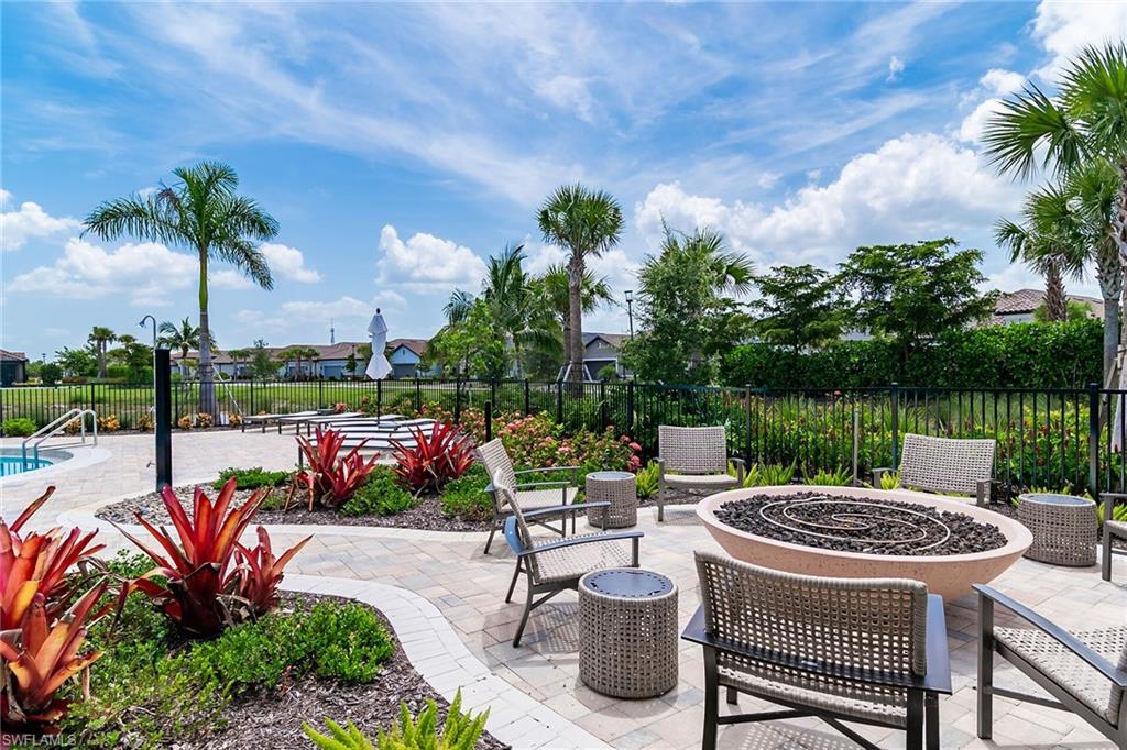 Welcome to this elegant 2-bedroom 2-bathroom, 1 car garage first floor coach home. Built in 2022 and located in the desired gated community of Esplanade By The Islands. Walk in to this big open floor plan with beautiful custom tray ceilings and custom fans. A designer kitchen with ss appliances, quartz countertops, upgraded lighting, soft close drawers and more. Hurricane impact windows and doors throughout for maximum protection along with custom electric hurricane screen. In unit electric fire place for nice ambiance with specialty built in niches. Spacious master bathroom with expansive shower, dual vanities and oversized walk in master closet. Expansive lanai overlooking the tropical wildlife and serene lake with a SW exposure to get plenty of sun and watch sunsets as well as no road noise on this quiet side of the street. Esplanade By The Islands is known for its superb amenities, catered to a luxurious and active lifestyle. This guard gated community offers a state-of-the-art fitness center, with cardio, strength training machines, free weight area, movement studio, and locker rooms. A full-service Spa at Esplanade with massage and body treatments, and a resort-style pool with towel service, and a Bahama Bar & Grill. Residents can also enjoy various sporting activities like tennis, pickleball, and bocce ball courts, a dedicated dog park, and a lifestyle manager to assist with community life and organize events.