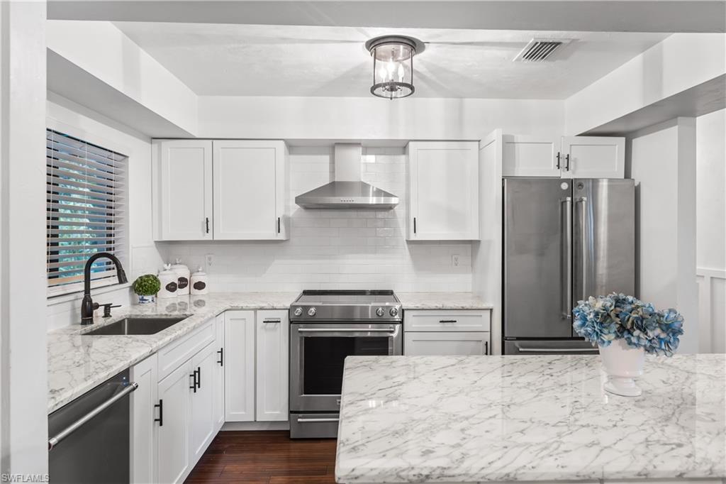 Gorgeous 3 bedroom 2 bathroom home has been well loved and ready for its new owners. This very unique home has a closed off master bedroom that has been turned into a guest suite with a private entrance perfect to rent out for vacation rental income. It's equipped with mini fridge, microwave, mini bar, hot plate, coffee maker, utensils, outdoor grill and more. This home has a new water heater in 2023, new hurricane rated garage door, with beautiful landscaping along with custom brick paver circle driveway for plenty of parking and access. Walk in to an open floor plan with bamboo floor throughout the home with board and batt on the walls. Updated kitchen with island, marble countertops, stainless steel appliances and custom lighting leading to a separate dinning room. Fenced in yard with plenty of room to out in a pool. Sit out back on the tranquil lanai and enjoy your private space loaded with mature lush landscaping tops of this perfect paradise property. Transferable flood insurance policy also available. Located near the newly renovated Mackle Park and YMCA this property is an amazing vacation home, rental property or permanent full time residence for any and all sun seekers and beach lovers. Close proximity to Marco Island beaches, shopping, restaurants and all Marco Island has to offer.