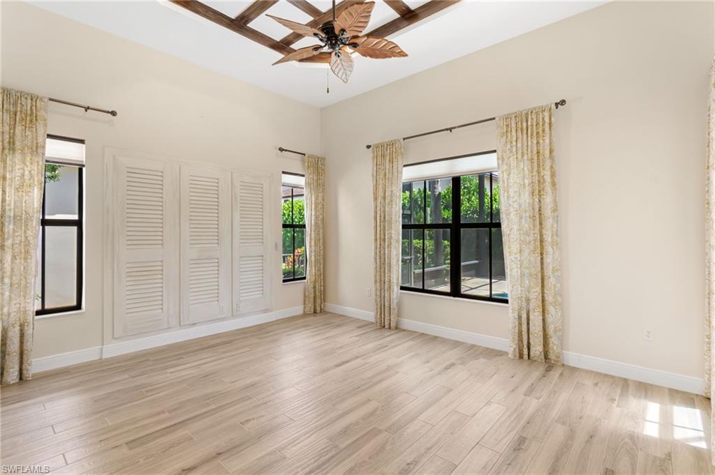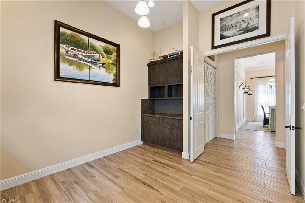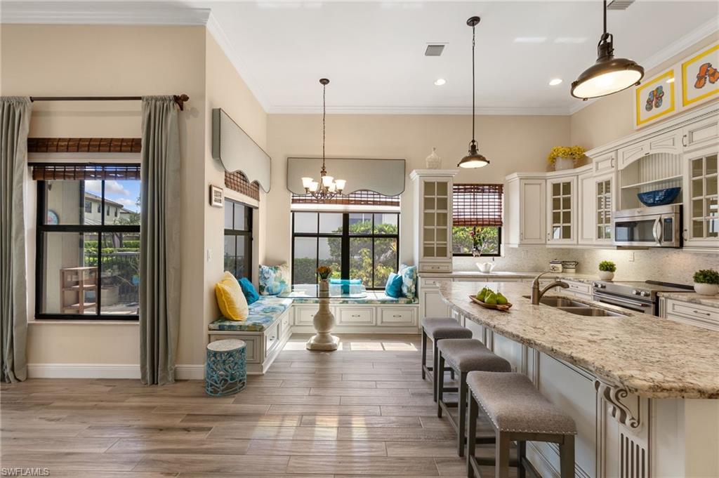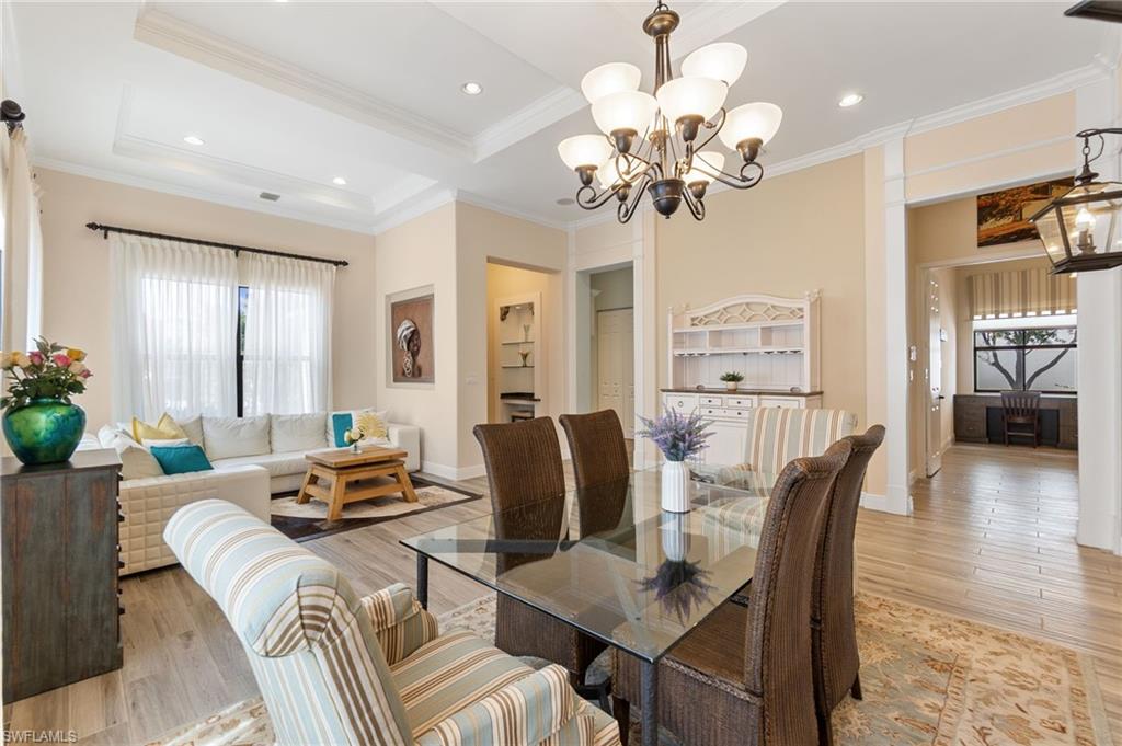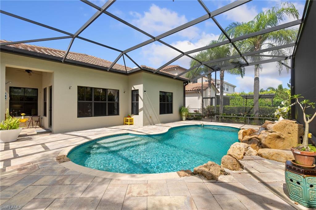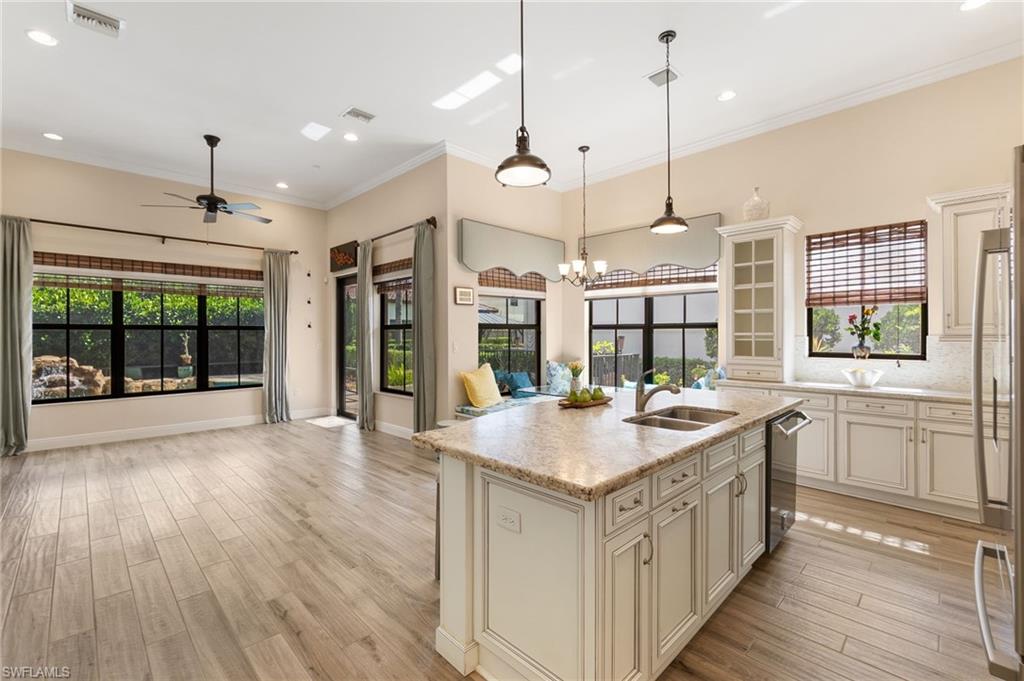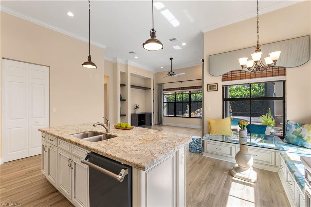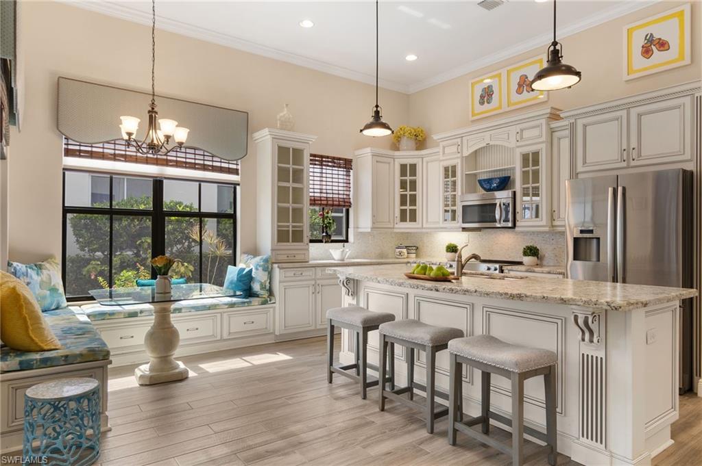 Former Model Home Steps from Ave Maria Town Center! Offering Florida Living at its finest! This thoughtfully upgraded single-story 3-bedroom + den, 3 bath pool home, is ideally located near the charming town center. Impressive 12-foot ceilings and an open concept layout create a light and bright living space in this former model home, which is complete with high-end finishes and custom-designed features. The formal living and dining room flow into a truly gourmet kitchen featuring upgraded cabinetry, a walk-in pantry, premium stainless-steel appliances: a Kitchen Aid range, a Bosch French door refrigerator, and a Hestan dishwasher. A cozy breakfast nook with built-in bench seating and storage drawers adds charm and functionality. The primary suite is truly a private retreat with a tray ceiling, a spa-like en-suite bath including a soaking tub, a separate shower, and dual custom-designed closets. The additional bedrooms are spacious and thoughtfully designed with a full adjoining Jack and Jill bathroom. Working from home is an option with the large den/home office, complete with double doors and a custom-built desk & cabinetry. The laundry room features a built-in sink, ample cabinetry, and includes the washer and dryer-plus an adjacent mudroom with bench seating and extra cabinetry for storage. The outdoor space offers Florida living at its finest with a private backyard oasis: a saltwater pool with waterfall feature, upgraded paver decking, all with a panoramic screen enclosure and privacy hedges- perfect for relaxing or entertaining. The home is located in the heart of Ave Maria, which is known for its local events, farmers markets, lending to the vibrant community appeal. Enjoy access to community gym, pickleball courts, arts & crafts room, BBQ pavilion, and dance studio!