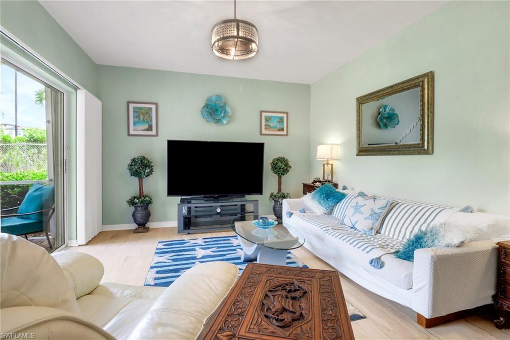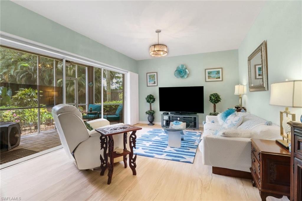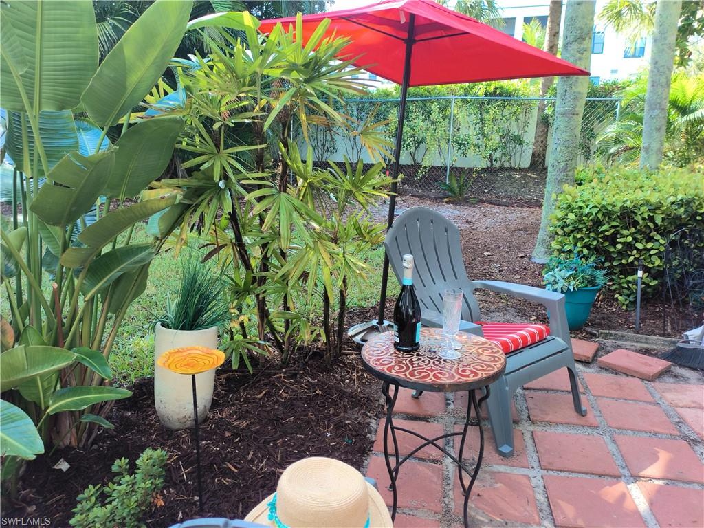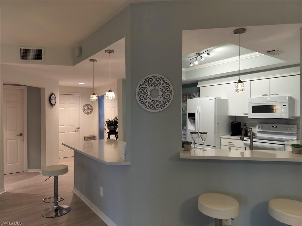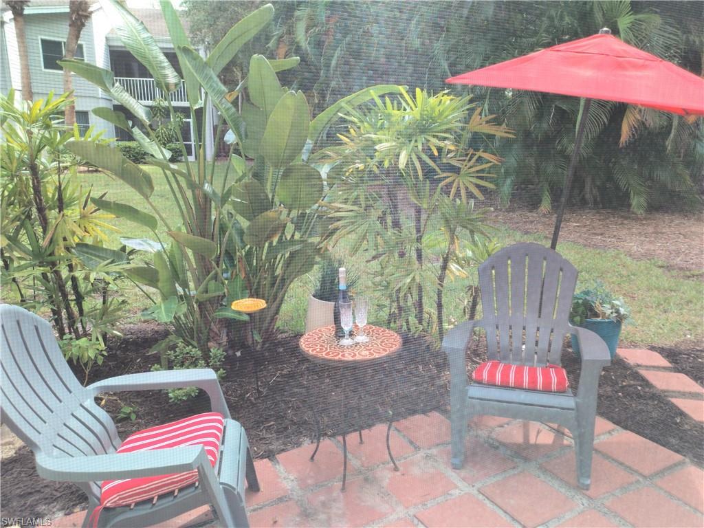 Rarely available carriage home with attached garage. Lives like a single family home. Quiet end unit with secluded garden view and delightful patio where you can bask in the Florida sunshine. Move in ready, beautifully appointed home with impact hurricane shutters and no flooding. Recent remodel with LVP flooring and tile, new appliances and complete re-pipe. Superb location, convenient to beach, Fort Myers International Airport, RSW, and many great restaurants and shops. Lakeside is gated community with a resort style clubhouse on a scenic 40 acre lake. Enjoy 2 heated pools and hot tub, sauna, 5 hard true clay tennis courts, 3 pickleball courts and numerous social events. Blue Stream cable and Internet are included.