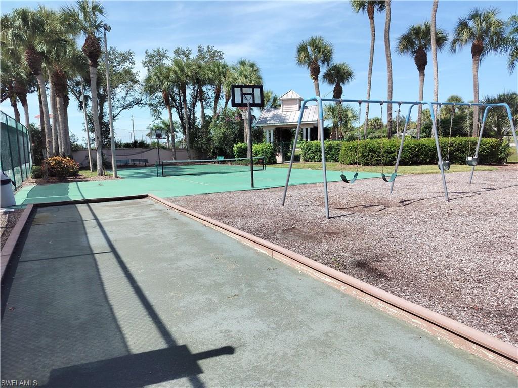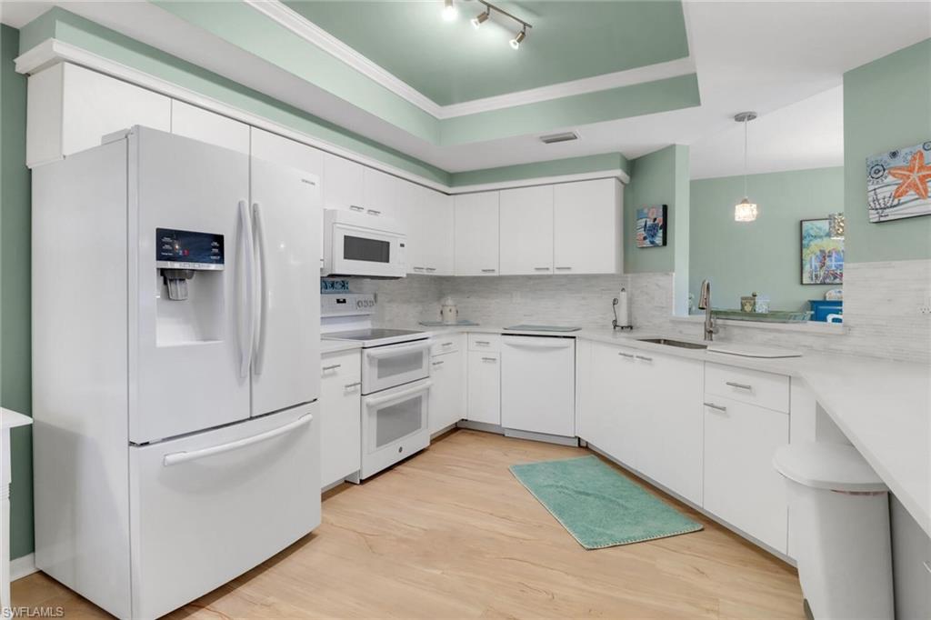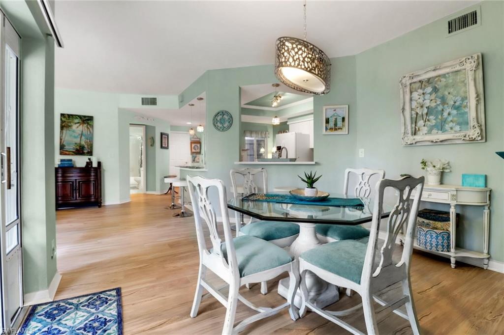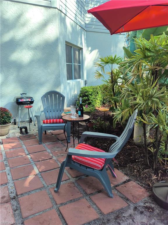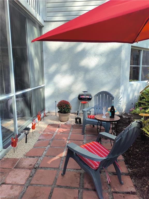Rarely available carriage home with attached garage. Lives like a single family home. Quiet end unit with secluded garden view and delightful patio where you can bask in the Florida sunshine. Move in ready, beautifully appointed home with impact hurricane shutters and no flooding. Recent remodel with LVP flooring and tile, new appliances and complete re-pipe. Superb location, convenient to beach, Fort Myers International Airport, RSW, and many great restaurants and shops. Lakeside is gated community with a resort style clubhouse on a scenic 40 acre lake. Enjoy 2 heated pools and hot tub, sauna, 5 hard true clay tennis courts, 3 pickleball courts and numerous social events. Blue Stream cable and Internet are included.