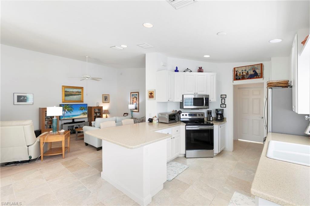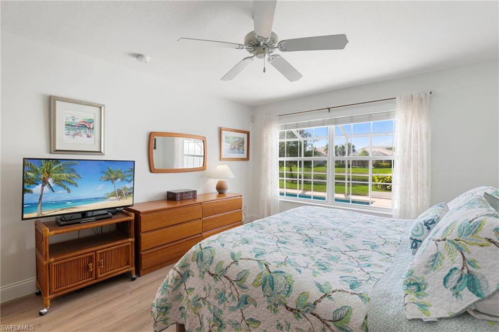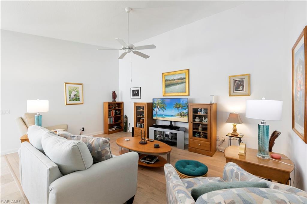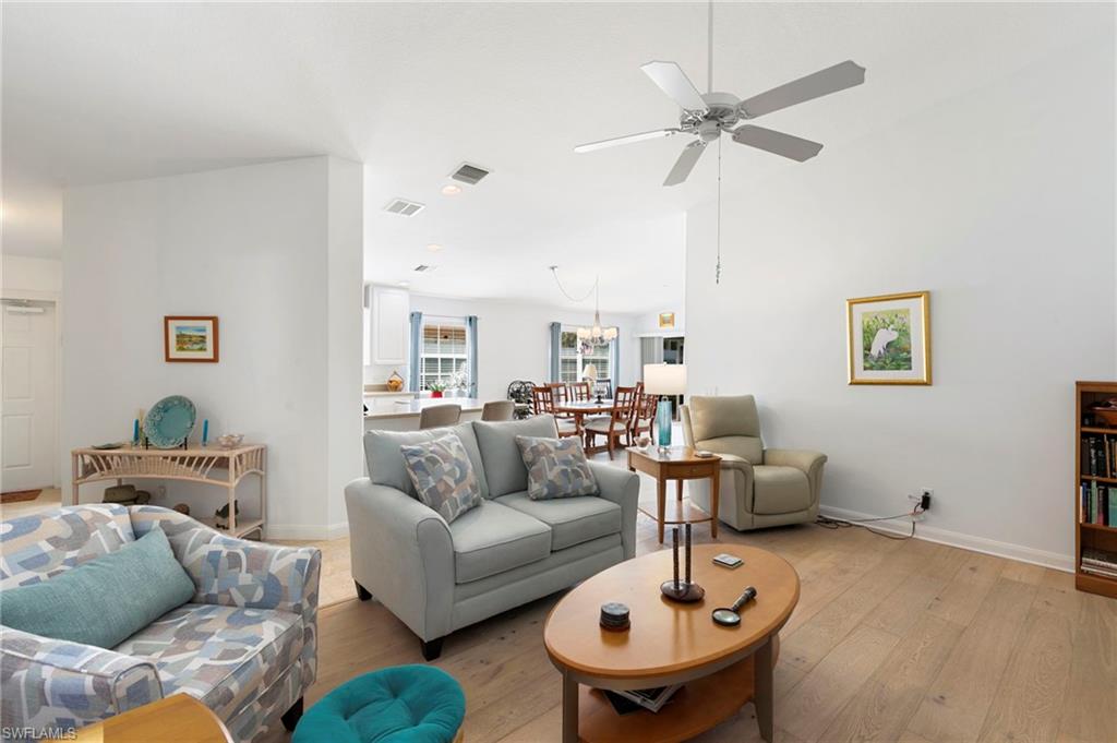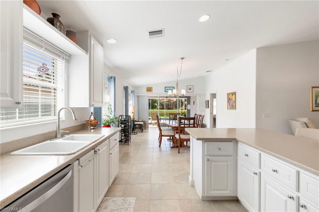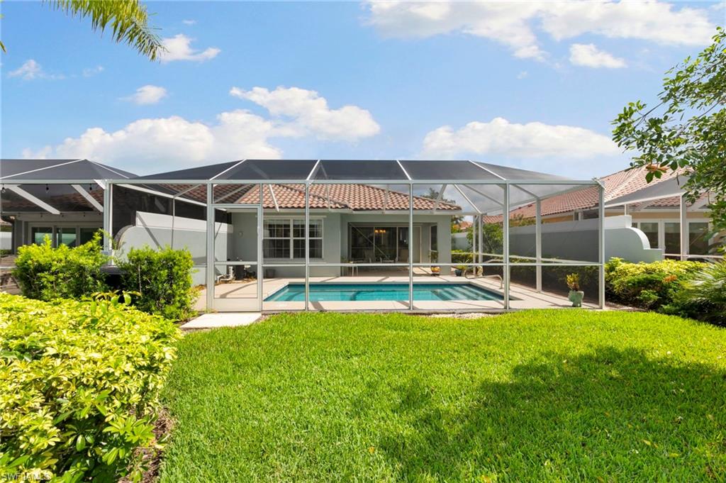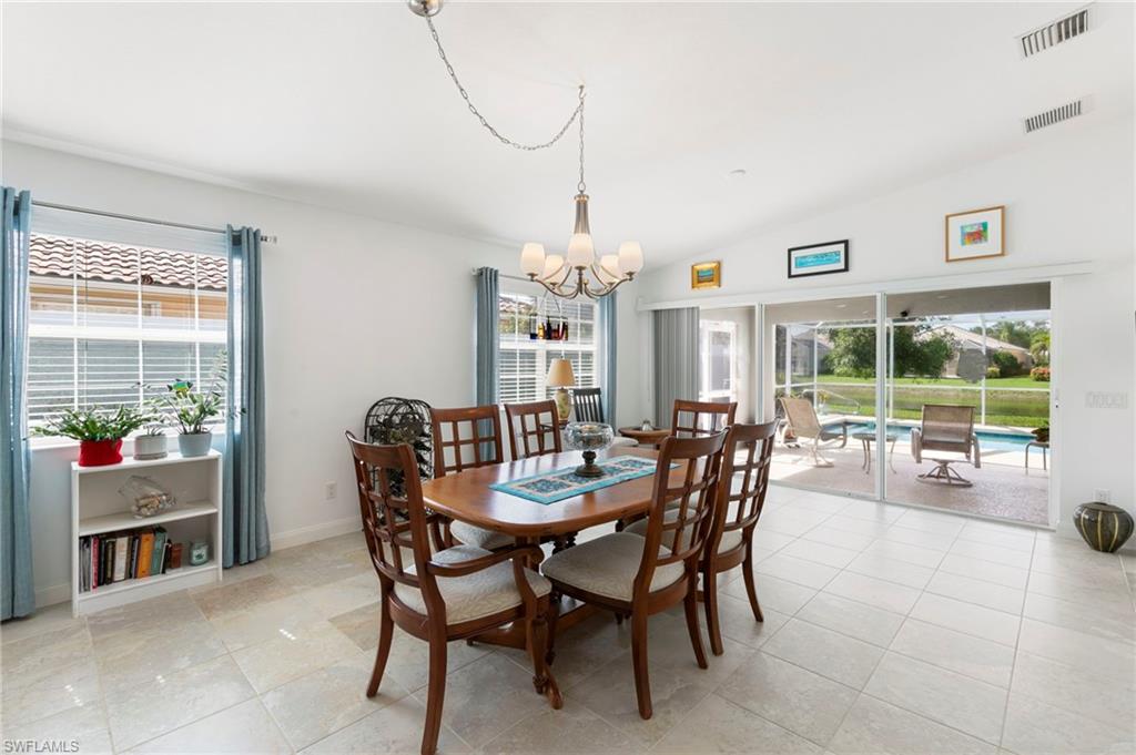 Move in ready pool home with perfect South exposure for all day sun and nice bright natural light in the home. This lovingly cared for Capri floor plan features 2 bedrooms and a den, open kitchen, spacious laundry room, 2 car garage and extended lanai. Enjoy the heated pool and outdoor living overlooking the lake with good covered area and sunning area.. This home has had many improvements and upgrades including newer luxury vinyl wood look flooring, hardwood floors living room, stainless appliances, and new screening on lanai, new faucets primary bath. The exterior of the home is freshly painted. Other great features include paver boarder path to pool area, excellent storage, walk in closets in both bedrooms, high ceilings, double vanity in primary suite and many options to set up living room/dining room and den space. Verona Walk is a wonderful resort style community with LOW FEES and fantastic amenities. Pool, fitness center, tennis, pickleball courts and over 20 miles of walking and bike trails. Pet friendly community. Other amenities that make it so you almost never need to leave the community include hair salon, post office, gas pumps, restaurant/café, ice cream and coffee shop. This home is in low risk flood zone X.