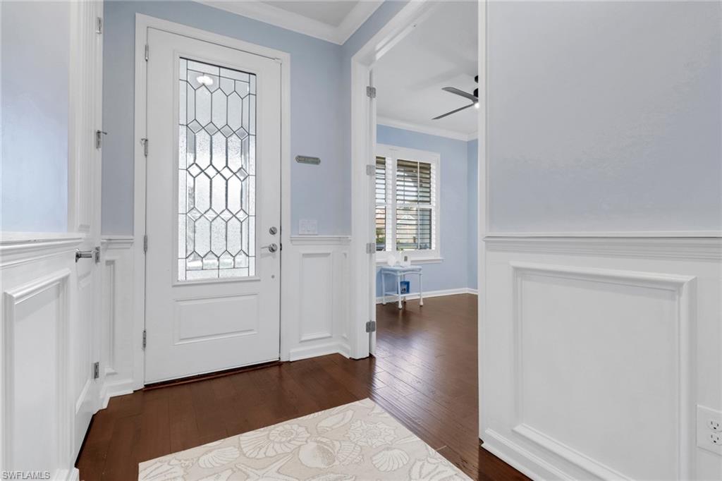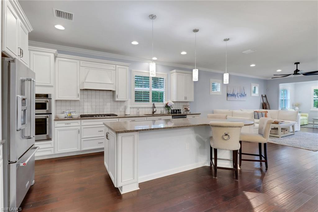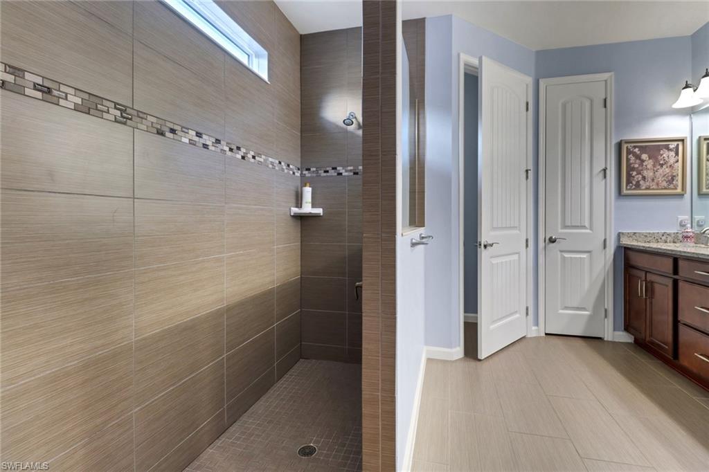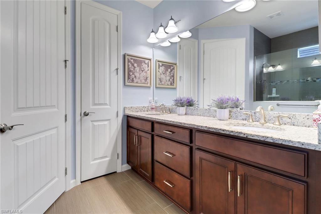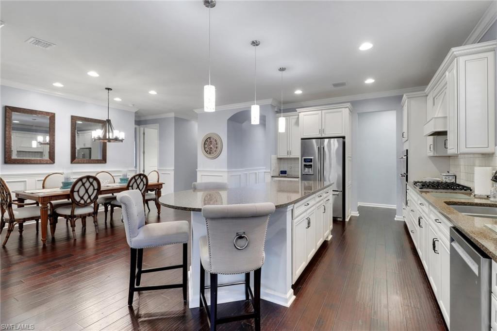 This stunning Martin Ray floor plan is a showcase of elegance, functionality, and premium upgrades. Recently professionally painted, the home features real wood floors, custom trim work, crown molding, and plantation shutters throughout. Brand new designer light fixtures and premium DC ceiling fans elevate each room’s style and efficiency. The chef’s kitchen impresses with a Level 5 KitchenAid appliance package, natural gas range, and a butler’s pantry complete with a wine fridge. The optional sunroom adds valuable extra living space, while the drop zone enhances everyday organization. Luxurious finishes continue with Cheyanne 8-foot doors, tile-to-ceiling showers, custom closets in every room, and hurricane impact glass windows for safety and peace of mind. The expansive laundry room includes a front-loading washer and gas dryer, utility sink, and ample cabinetry. The garage offers built-in storage with custom cabinetry and slatwall organization, while a tankless water heater provides endless hot water. Outdoors, enjoy a newly installed fenced dog run—perfect for pets and privacy. Located in Tidewater, a premier 55+ active adult community, residents enjoy a vibrant lifestyle with access to a resort-style pool and spa, barefoot bar, fitness center, movement studio, pickleball and bocce courts, BBQ grills, fire pit, and a full calendar of events curated by the on-site lifestyle director.