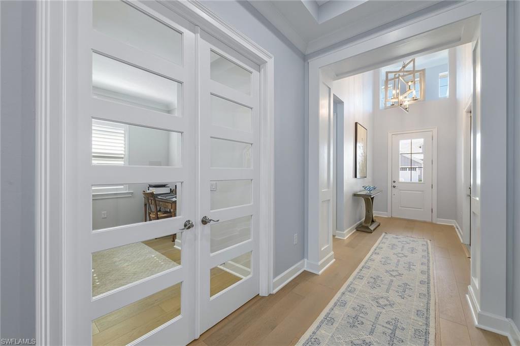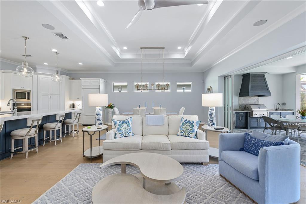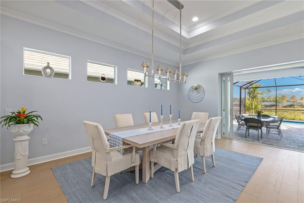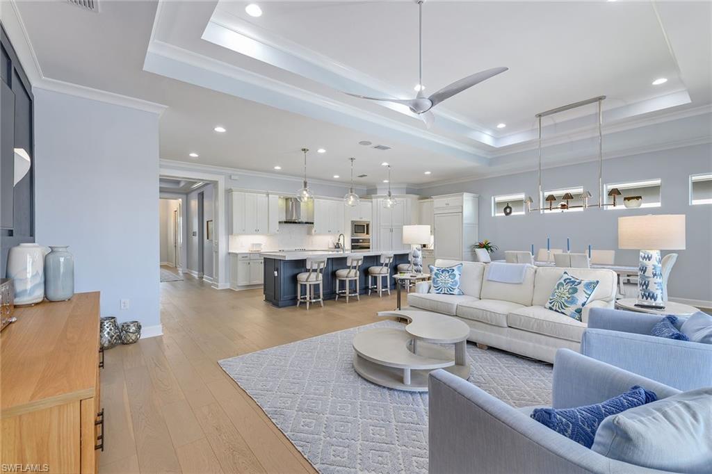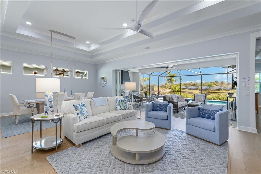 Presenting the new Acacia floor plan, furnished and turnkey! An exquisite waterfront residence blending comfort, style and privacy in the sought-after Isles of Collier Preserve. This luxurious home features an open-concept layout, ideal for modern living and entertaining. The gourmet kitchen is outfitted with top-of-the-line JennAir appliances, custom cabinetry and a large center island, creating a seamless flow into the spacious great room. The great room boasts a dramatic TV wall and ample space for relaxation or hosting guests. The home offers three bedrooms and 3.5 baths, with the primary suite providing breathtaking water views, and a flexible den that can easily serve as a home office, media or music room. Tastefully upgraded throughout, this home features over $300,000 of builder options. Engineered wood flooring, smart home lighting, LED landscape lighting, crown molding and more, all finished with luxurious new furnishings adding an extra layer of sophistication to the stunning design. Go outside into an outdoor oasis, where the expansive covered lanai features a fully equipped outdoor kitchen, ideal for alfresco dining and entertaining. The large pool deck hosts a sparkling saltwater pool and spa, offering an ideal space for relaxation. The screened enclosure ensures panoramic water views, making the outdoor living space as captivating as the interior. As a resident of the Isles of Collier Preserve, you’ll enjoy a wealth of exclusive, resort-style amenities, including a staffed gated entrance, resort-style pools with a separate lap pool, a fitness center and Overlook Bar & Grill. The community also offers six tennis courts, 14 pickleball courts and four bocce courts, along with a dock featuring kayaks for residents. Nature lovers will appreciate the community’s eight miles of biking and recreational trails through a preserved natural landscape, and pet owners will enjoy the convenience of a dedicated dog park. Additionally, the Naples Botanical Garden is less than a mile away, providing a serene escape with its stunning gardens and lush surroundings. Ideally just four miles from vibrant dining and shopping of 5th Avenue South in Old Naples, and only 15 minutes from the pristine beaches of Naples and Marco Island, the Isles offers the ideal blend of peaceful living and convenient access to the best of Southwest Florida. This meticulously maintained, newly built home offers unparalleled luxury living in one of Naples desirable communities. Don’t miss your chance to experience the best of Florida living and schedule your private showing today.