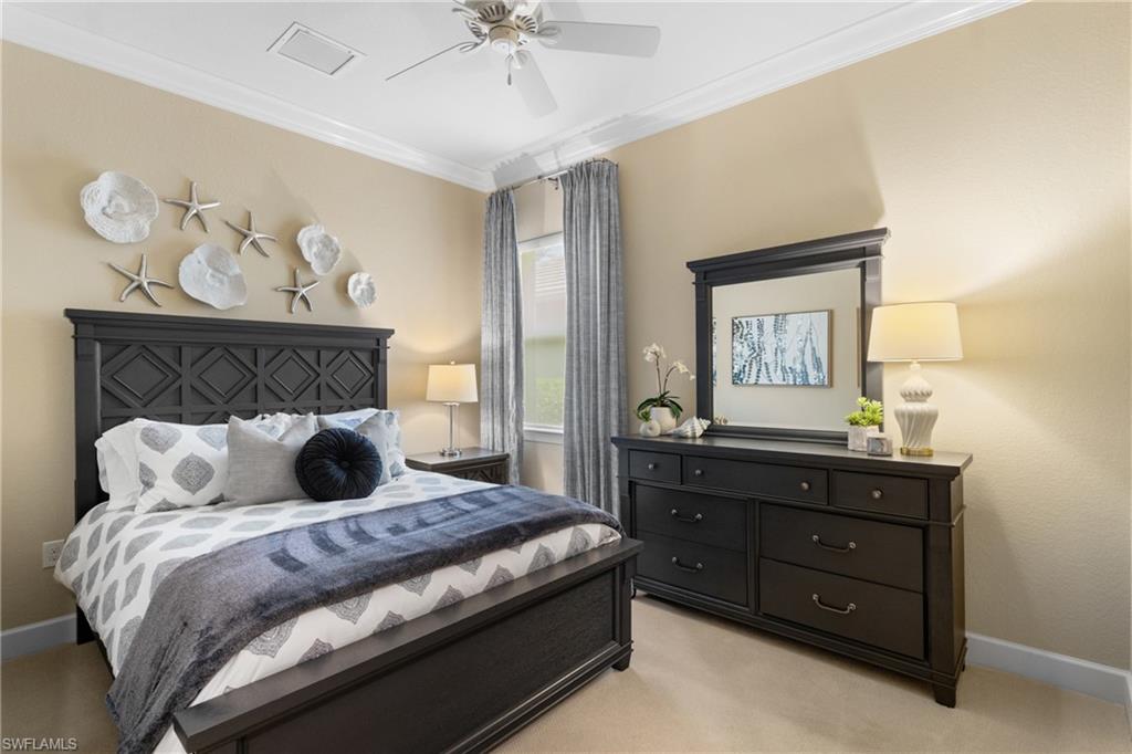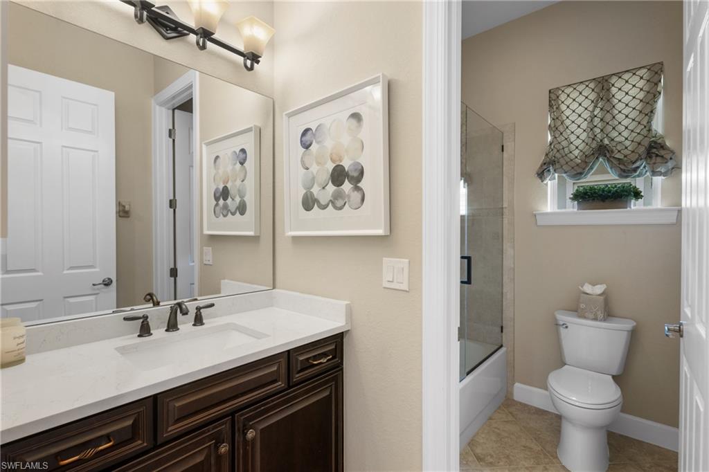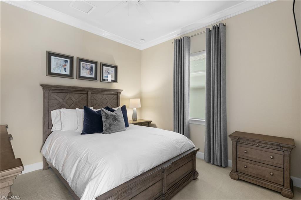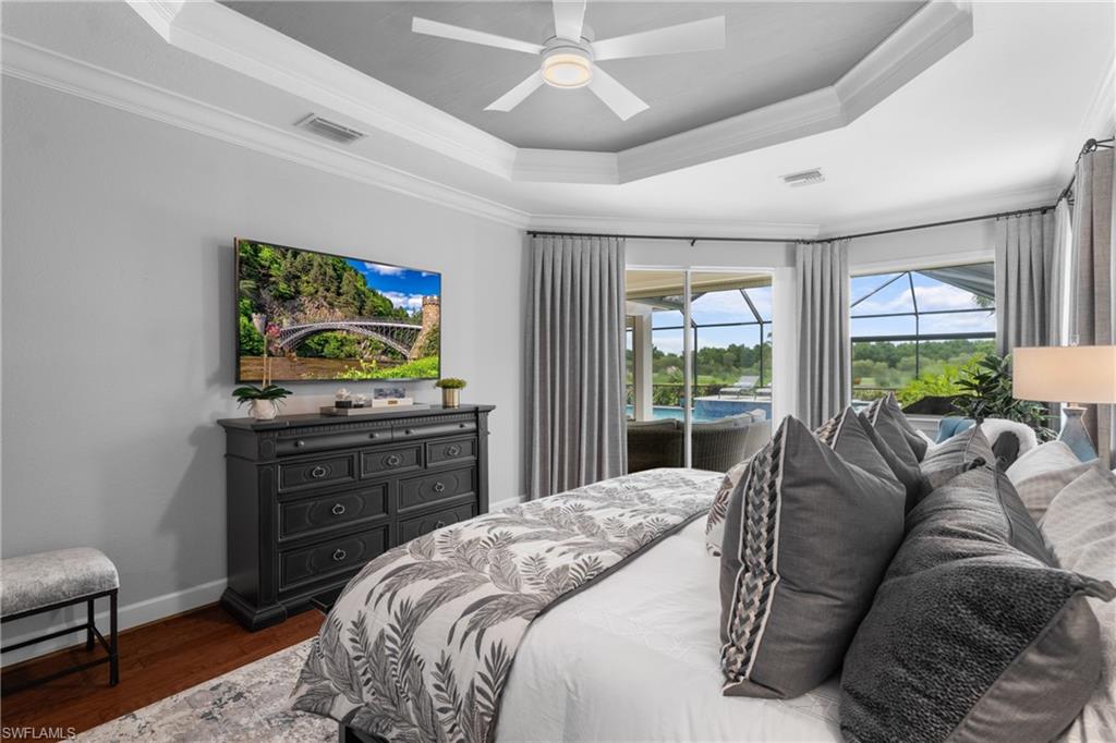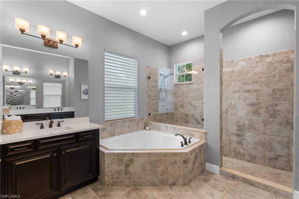 Live the Ultimate Vacation Lifestyle in The Quarry! This beautifully remodeled 4 Bedroom plus Den, 4 full bath, 3 car garage home is perfectly situated overlooking the 14th fairway with picturesque golf course, lake, and preserve views with no roof tops in sight! Custom features and professional design gives this home a model like feel and is a true one of a kind. From the moment you walk in the door, you are greeted with a wide open Great Room style floorplan with two sliding glass doors to the lanai and spacious pool area. The spacious kitchen is the heart of the home with center island, two breakfast bars with seating for 8, updated quartz countertops, custom tile backsplash, double wall ovens, wine cooler, and two additional beverage coolers, making this the perfect kitchen for entertaining. The luxurious Primary Suite features a sliding glass door to the lanai, spacious closets with cabinetry, and bath boasting dual sinks, walk in shower, soaking tub, and custom wall paper detail. Enjoy days around the heated pool/spa and al fresco dining on the lanai complete with travertine marble deck, raised sun deck, spa, and wet deck. Other fine appointments of this home include: wood floors throughout living room, dining room, den, and primary bedroom; custom window treatments throughout; custom wallpaper accents; special order chandeliers, lights, and fans; crown molding throughout; motorized roll down hurricane shutters on the lanai and front foyer; freshly painted interior; two brand new HVACs; air conditioned three car garage; and more! Furniture & decor package available! The Quarry is an exceptional lakefront community offering unparalleled amenities and a lifestyle like no other. Enjoy boating, golf, tennis, pickleball, bocce ball, a Tiki Bar, poolside food and drink service, a fully equipped gym, and a variety of social activities. The recently renovated and expanded “Lake Lodge & Beach Club” provides the perfect setting for relaxation, while over 500 acres of navigable lakes (with boat slips available for lease) offer endless opportunities for water enthusiasts. The private 18-hole golf club features optional golf and social memberships, providing an elite experience for golf lovers (full golf memberships available/no waitlist). Schedule your private showing today!