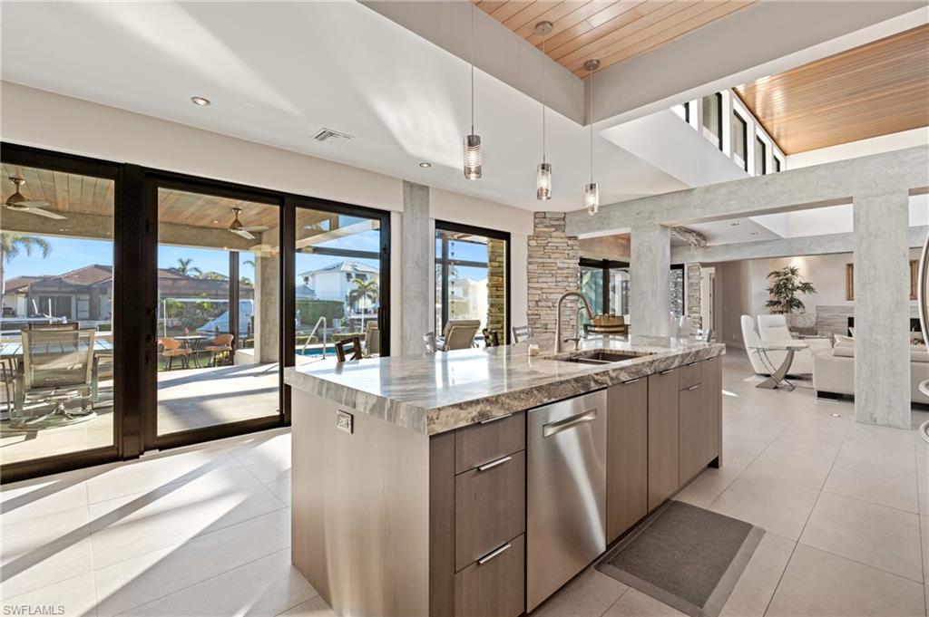Welcome to your slice of paradise! This stunning custom-designed and meticulously built home is the epitome of luxury, offering high-end finishes throughout. With over 3,100 sq. ft. under air and more than 4,500 sq. ft. under roof, this masterpiece has it all. Being sold fully furnished with an exquisite collection of designer pieces, this 3-bedroom, 3.5-bathroom home also features a sophisticated den, a spacious 3-car garage, and a beautifully crafted dock with a 14,000 lb. lift. Boaters will love the quick access to the Marco River from the desirable north end. The southern rear exposure ensures all-day sun, perfect for enjoying the outdoor living space. Move-in ready, the home boasts an underground propane tank, a gas fireplace, a central vacuum system, fully built-out closets, a screen cage, specialty LED lighting, and countless other upgrades too extensive to list. This dream home, paired with the unmatched lifestyle of Marco Island, offers an unparalleled opportunity to embrace coastal luxury. Don't miss your chance to make it yours!