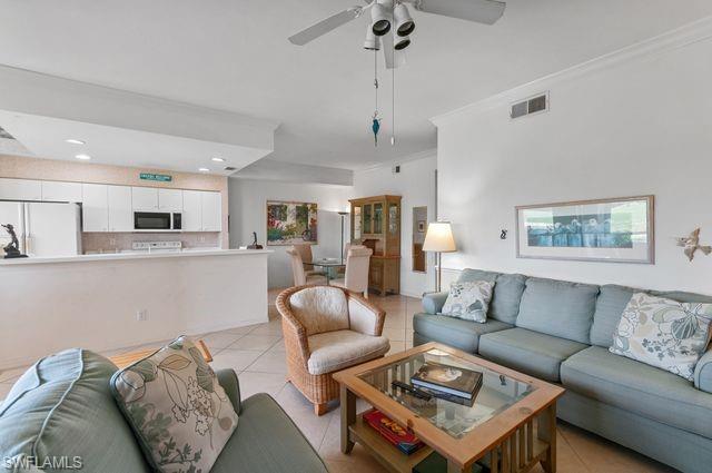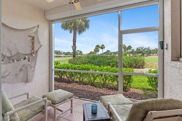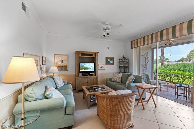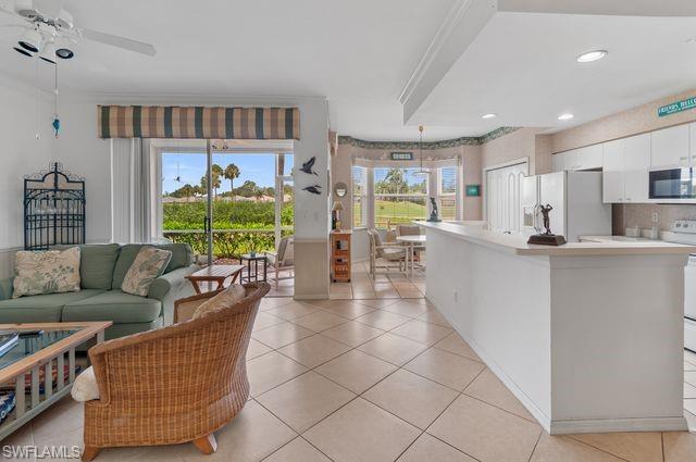 Beautiful golf and tennis community. Unit 1512 is a ground level condo with assigned covered parking. The fun floor plan has the kitchen and eating area viewing the golf course. Two bedrooms and two baths provide plenty of comfortable living. Beautiful tile floor throughout. Carrier 2-ton 14 seer installed September 2020. Newer hot water heater. The back lanai has electric shutter. One time Capital Contribution fee $5,000 for Villages at Country Creek. On time assessment fee $500 to Rivers Reach IV.