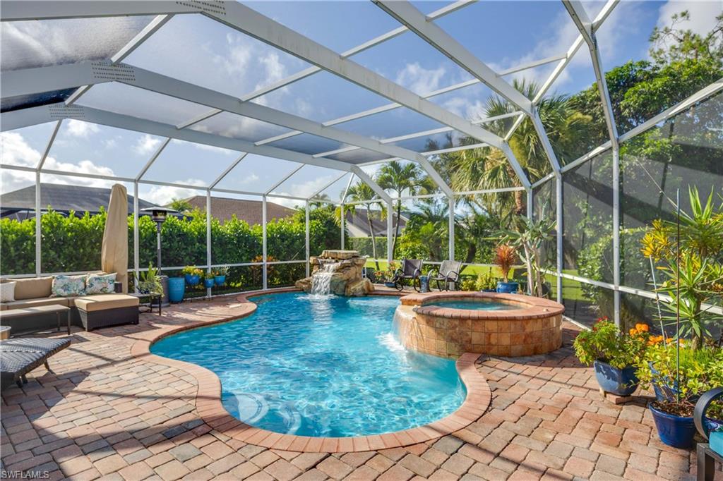 This 3 Bedroom 2 Bathroom Resort Style Pool home has amazing upgrades. Some upgrade list in the supplement section. It has been Professionally Landscaped and has a Brick Paver Driveway. The Beautiful Tile Flooring has been run throughout the home. The Large Kitchen and has Updated Wood Cabinets along with Amazing Granite and New Kitchen Appliances. The Open Area from the Kitchen to the Living Room is enhanced by the Vaulted Ceilings. The Dining Room Table overlooks the Magnificent Resort Style Pool Area which includes Brick Pavers, an Outdoor Shower, a Waterfall Feature and a Hot Tub that flows into the Pool. There is Landscaped Area behind the pool along with Thick/Tall Hedges on each side which provides for Great Privacy. The Master bedroom overlooks the pool area and offers an amazing bathroom. The walk-in shower has dual shower heads on different walls. The guest bathroom has also been upgraded nicely. This home has impact windows, an impact front door and a set of impact sliders along with hurricane shutters for the lanai. Another amazing feature of this home is its geographical location in Berkshire Lakes. This centrally located street offers peace, quiet and minutes away from the 1.2 mile walking path that borders Berkshire and Belville Lakes. This walking path will lead you to the Fishing Pier, Club House and Tennis/Pickel Ball Courts This home is located approximately 1 mile from Berkshire Commons Shopping Center which has gas stations, restaurants, banks, pharmacy and a Publix Grocery Store. This Home is also located approximately 6.5 miles to World Famous Fifth Avenue South and the Beach.